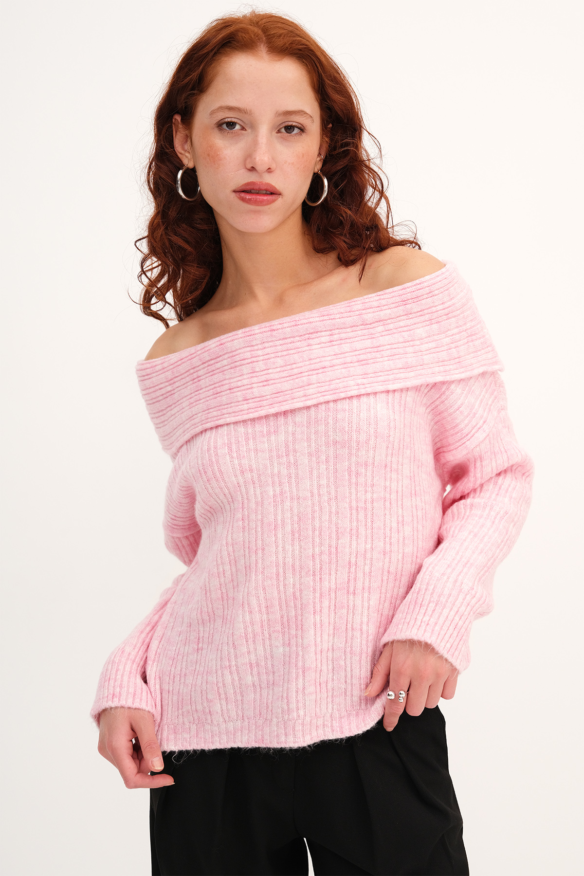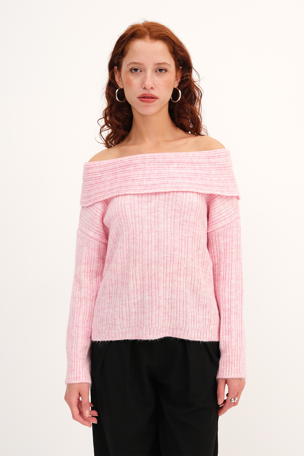 * Kayık yaka, uzun kollu,* Düz renk,* Triko kazak,* Ürün içeriği: %79 Akrilik %21 Polyester* Manken üzerindeki ürün standart bedendir.* Numune beden ölçüleri: Boy: 48 cm Göğüs: 90 cm Kol boyu: 46 cm (1-3 cm değişiklik gösterebilir)* Ürün çekimlerinde renkler, ışık farklılığından dolayı değişkenlik gösterebilir.
