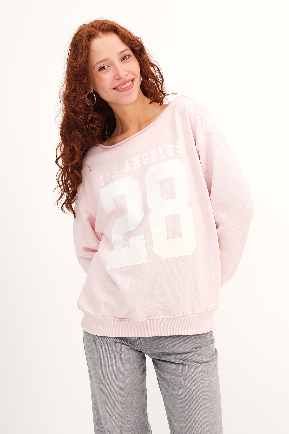 * Kayık yaka, uzun kollu,* Los angeles baskılı,* Düşük omuz, şardonsuz,* Rahat kalıp sweatshirt,* Ürün içeriği: %100 Pamuk,* Manken üzerindeki ürün 36/S bedendir.* Numune Beden Ölçüleri: Boy: 60 cm Göğüs: 110 cm Kol Boyu: 51 cm (1-3 cm arasında değişiklik gösterebilir)* Ürün çekimlerinde renkler, ışık farklılığından dolayı değişkenlik gösterebilir.