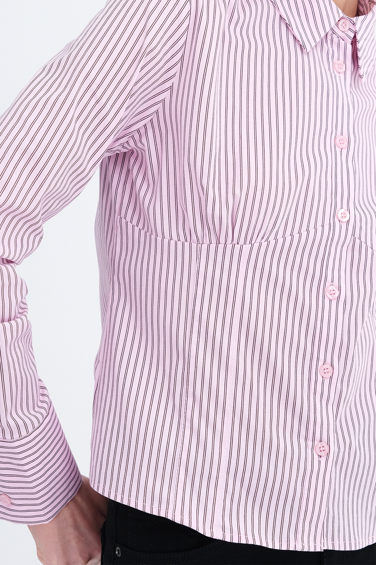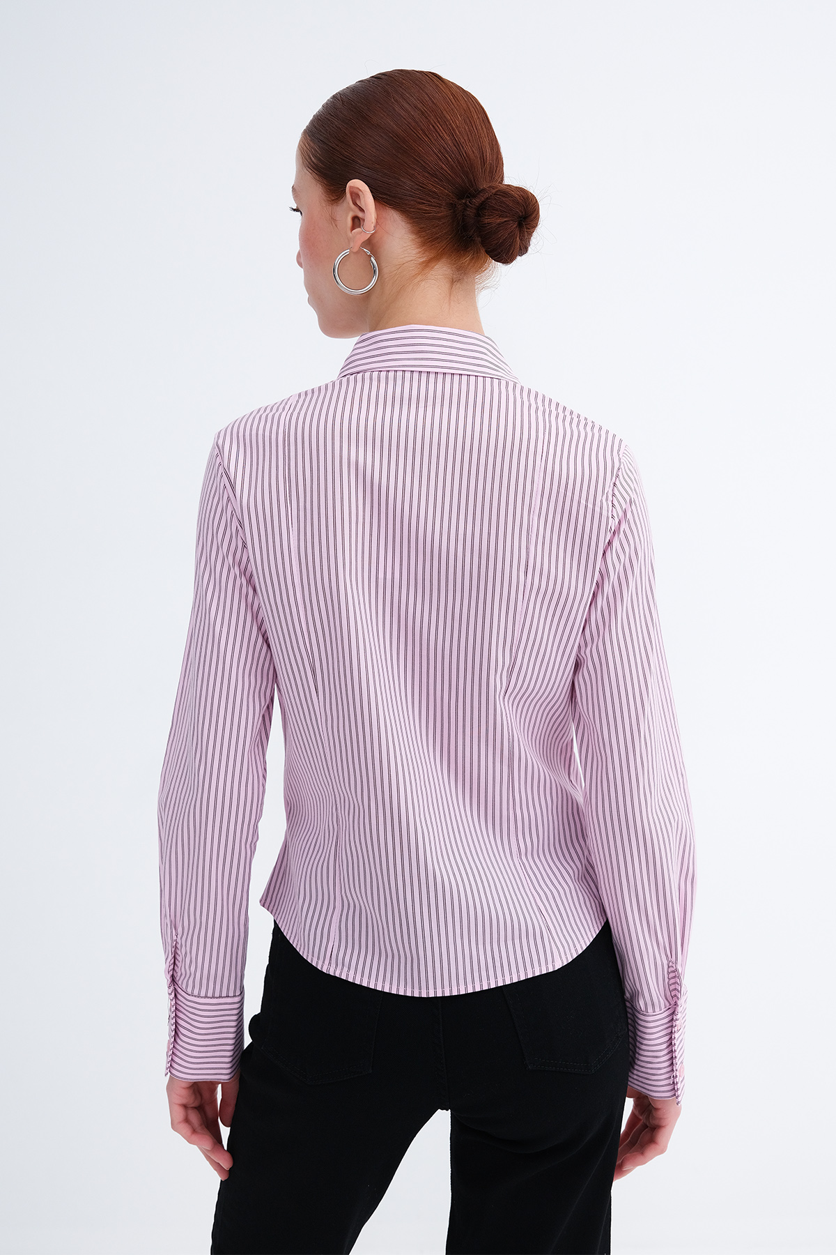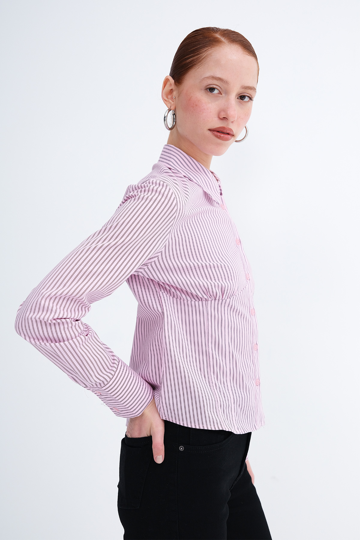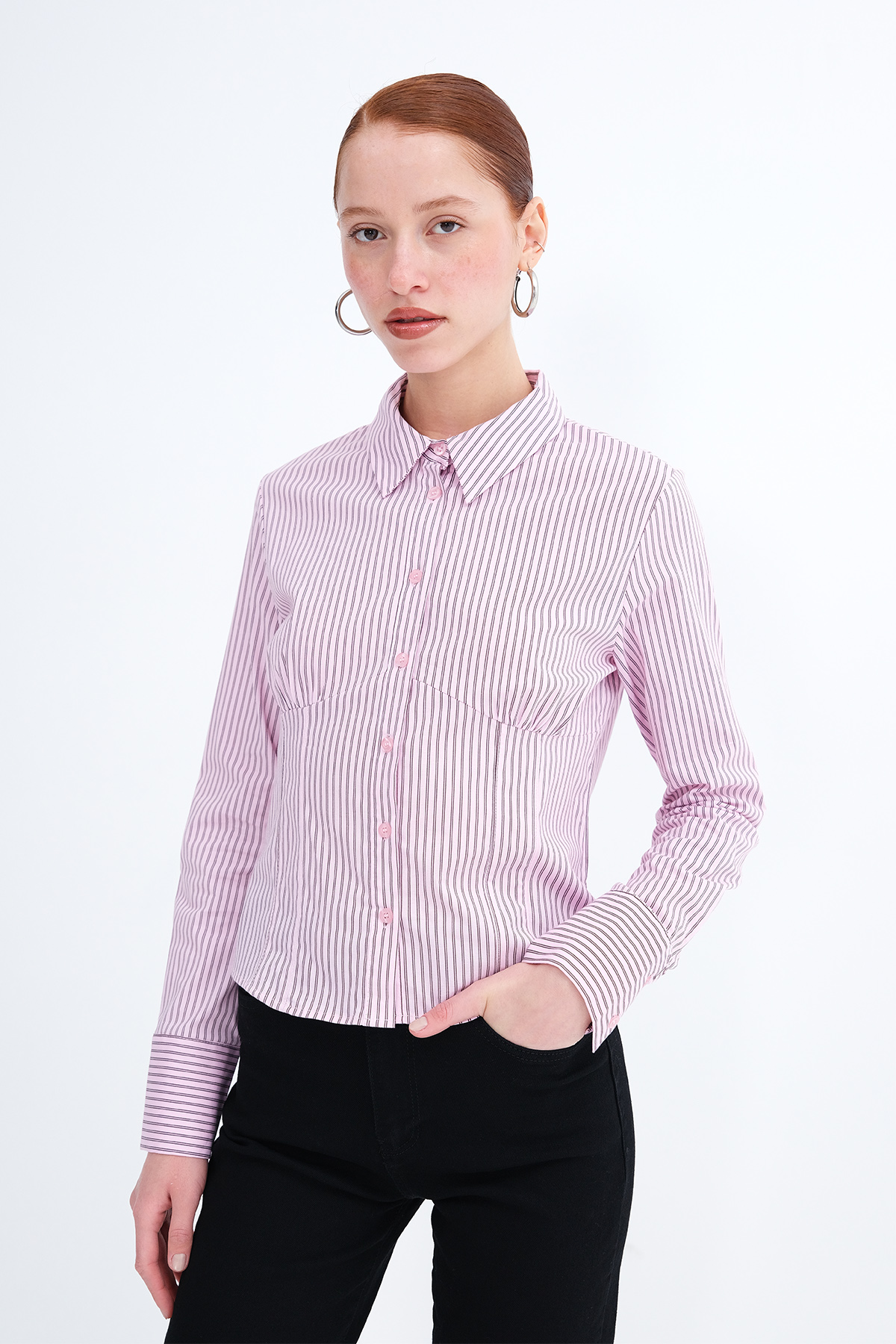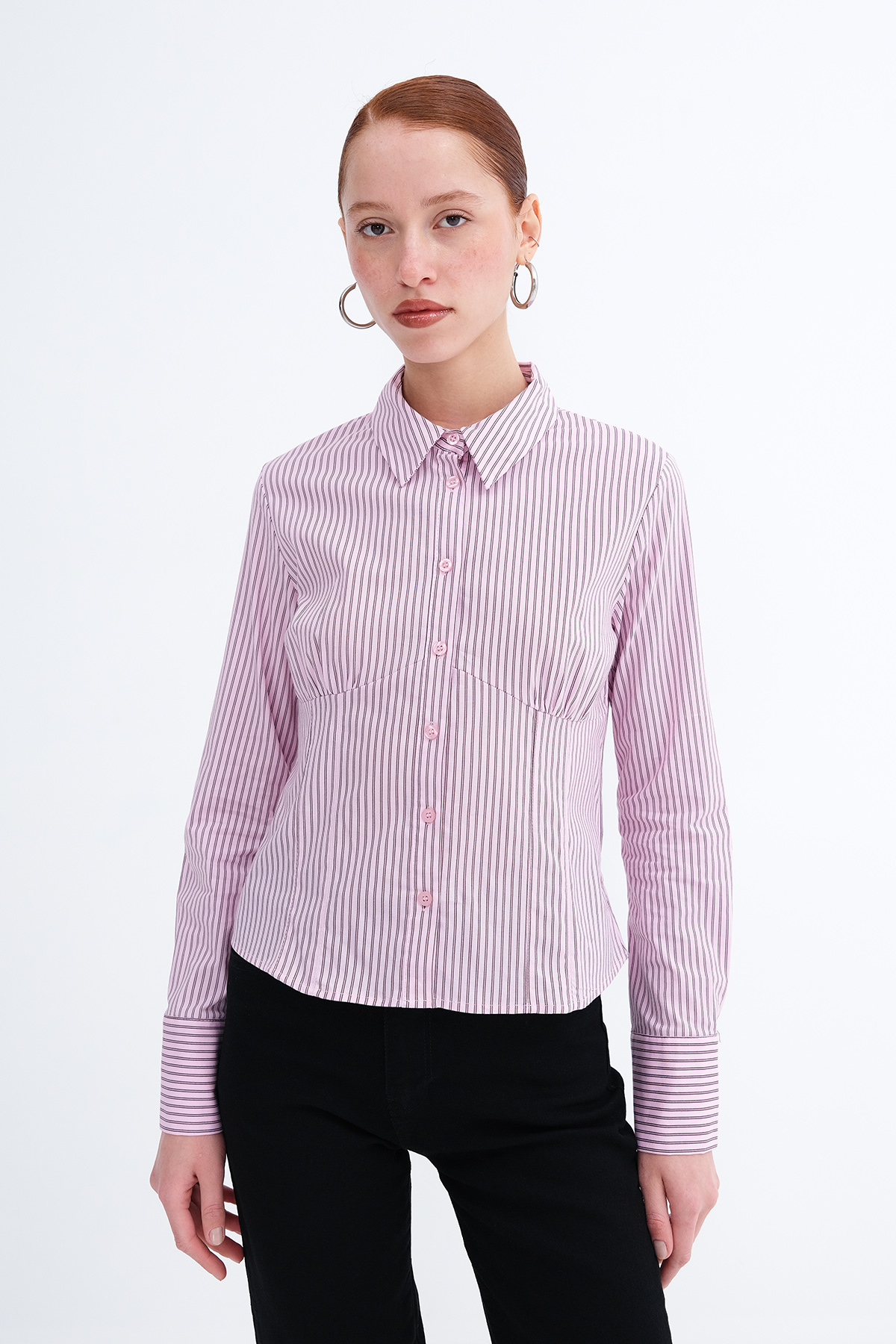 * Düz renk, düğmeli, vücudu saran gömlek,