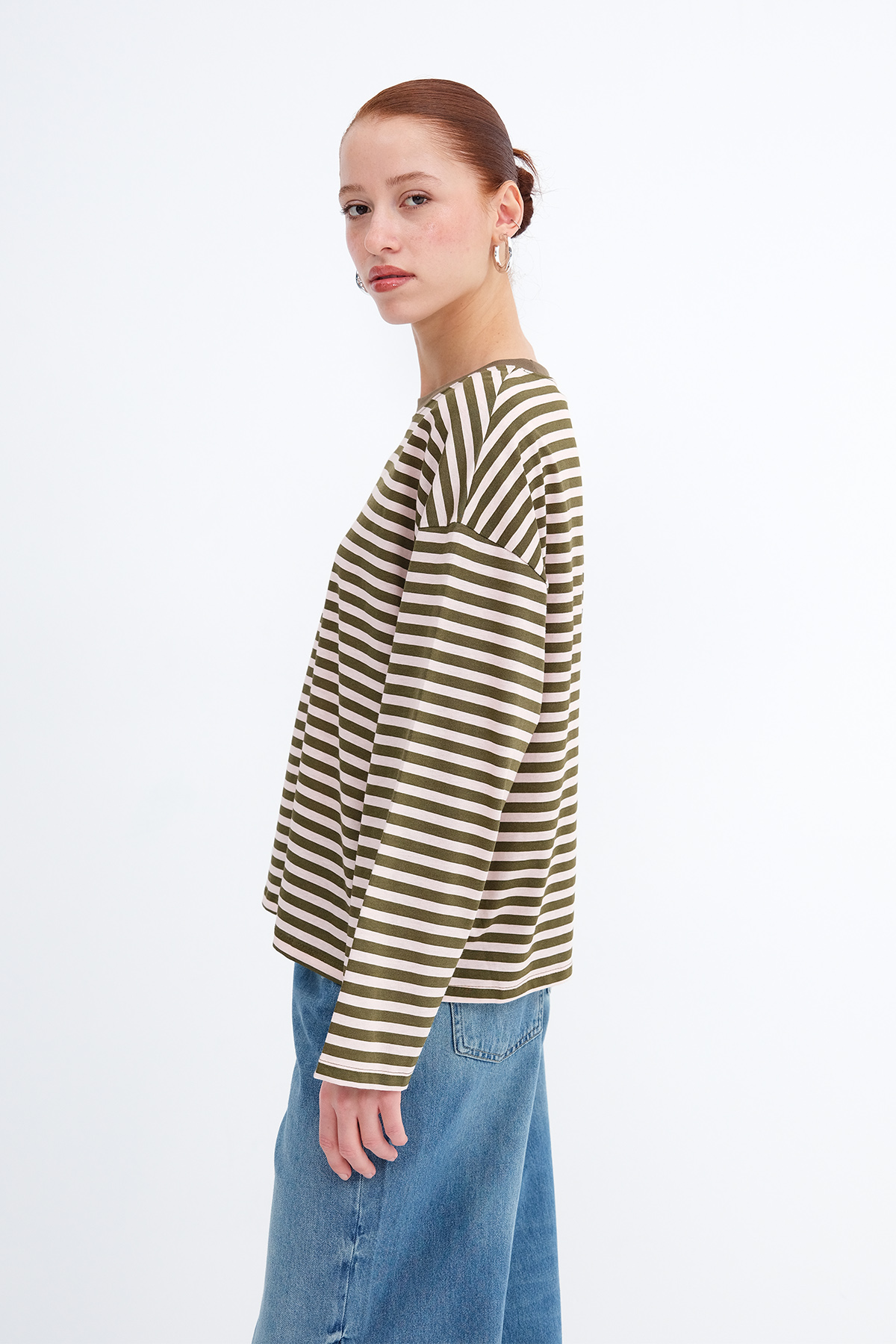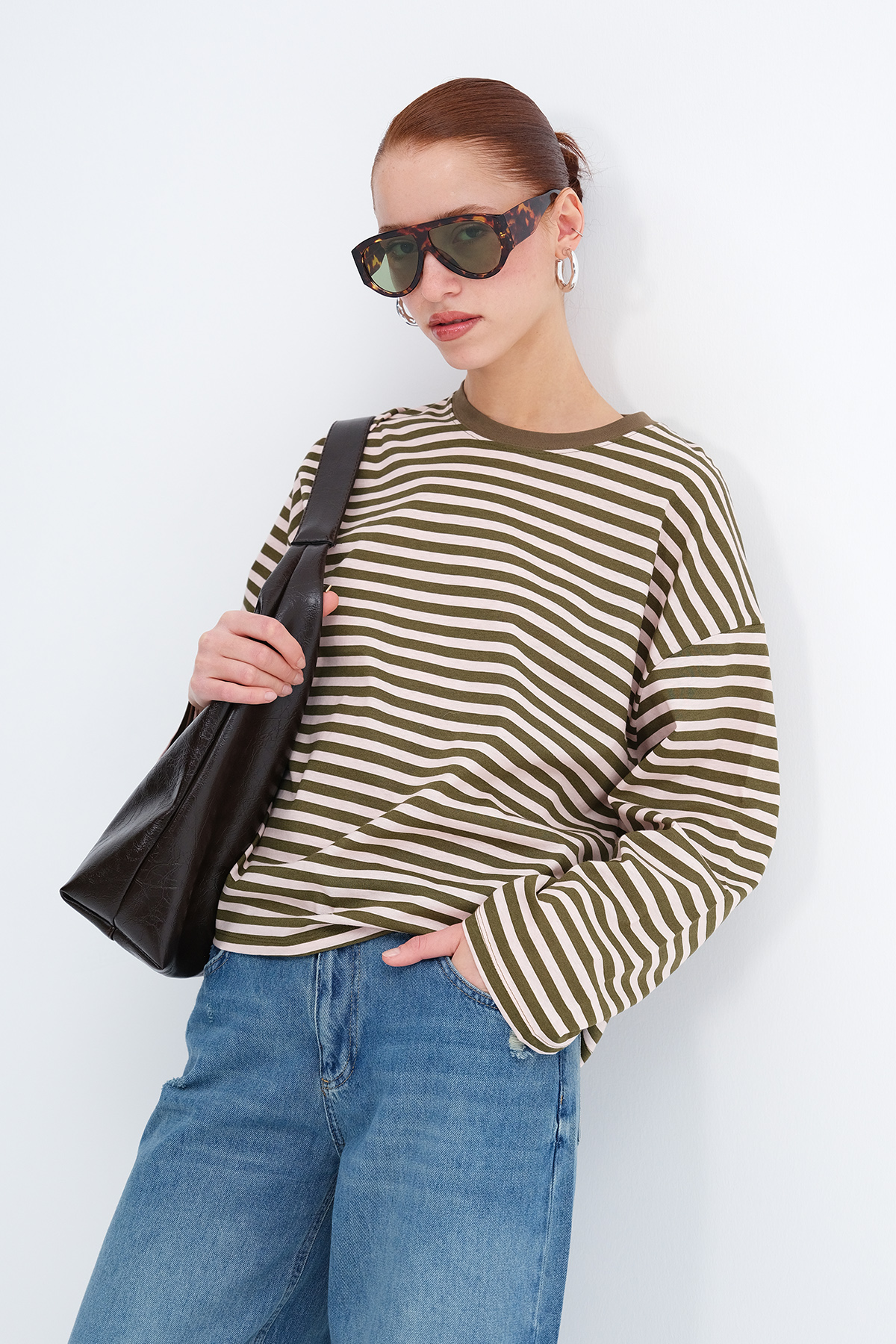 * Bisiklet yaka, uzun kollu, düşük omuz,