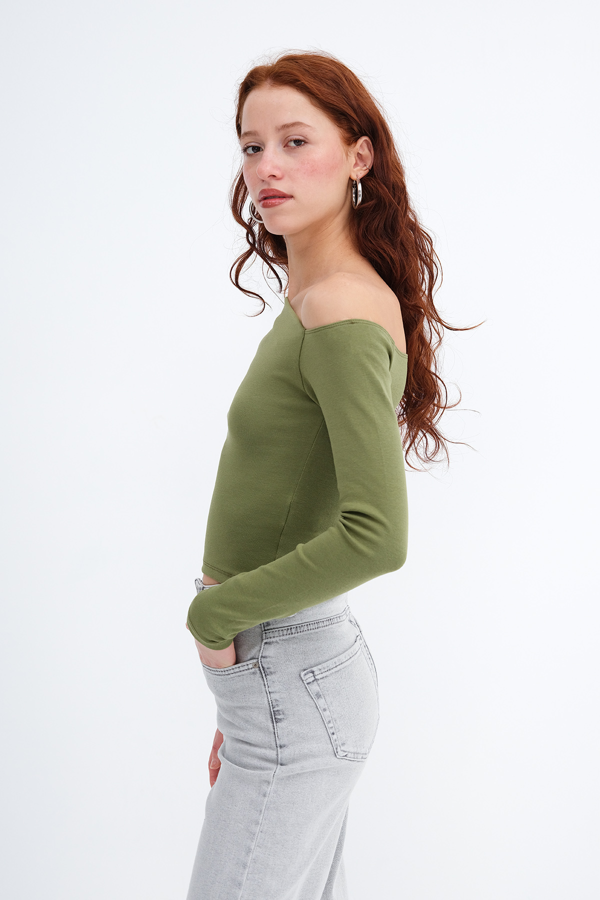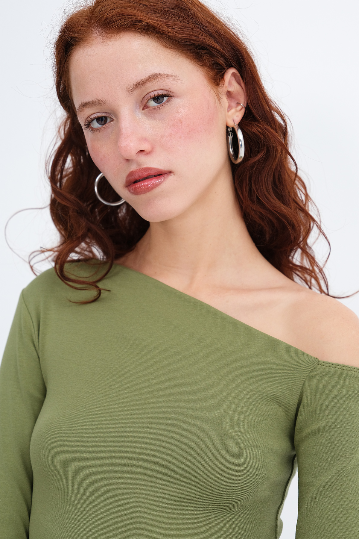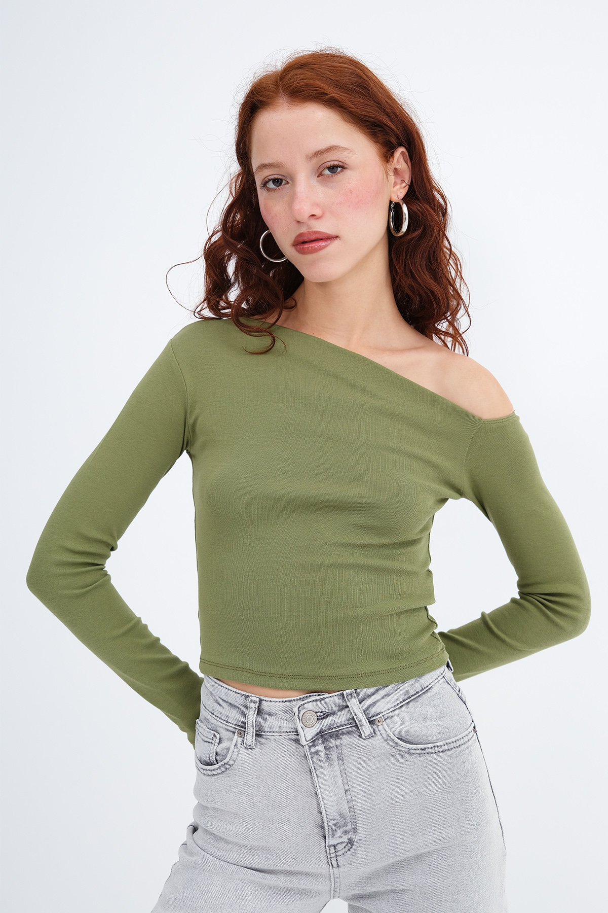 * Kayık yaka, uzun kollu,