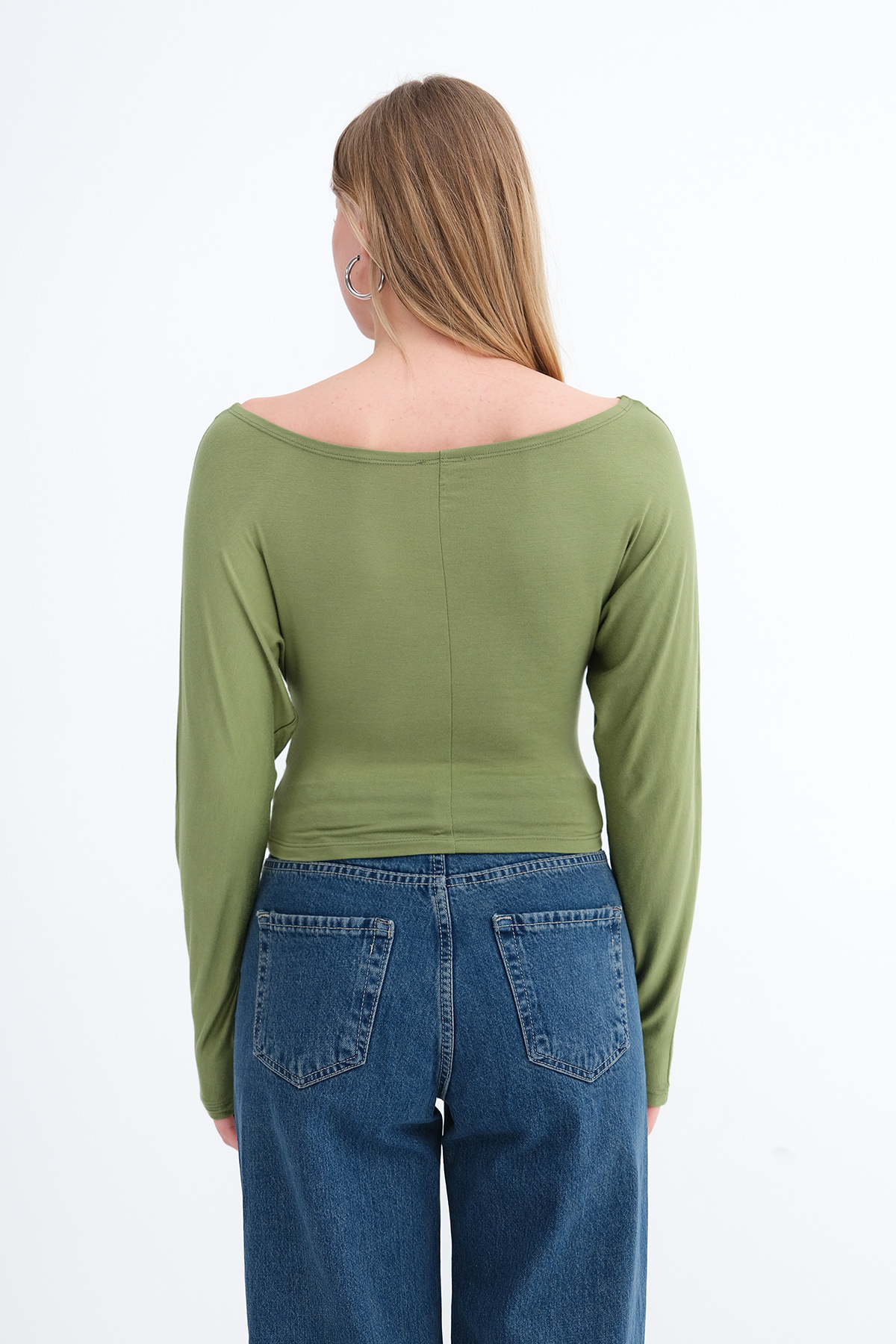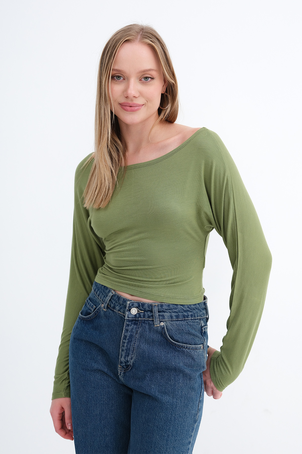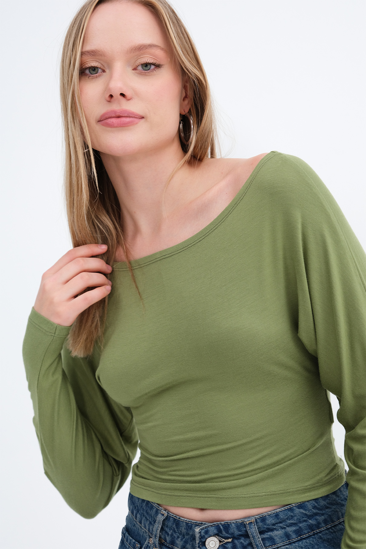 * Kayık yaka, uzun kollu, basic, vücudu saran bluz,