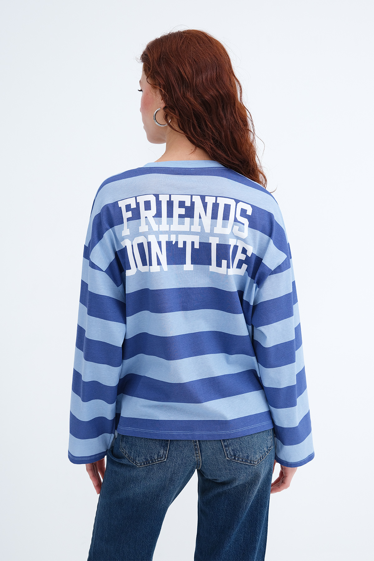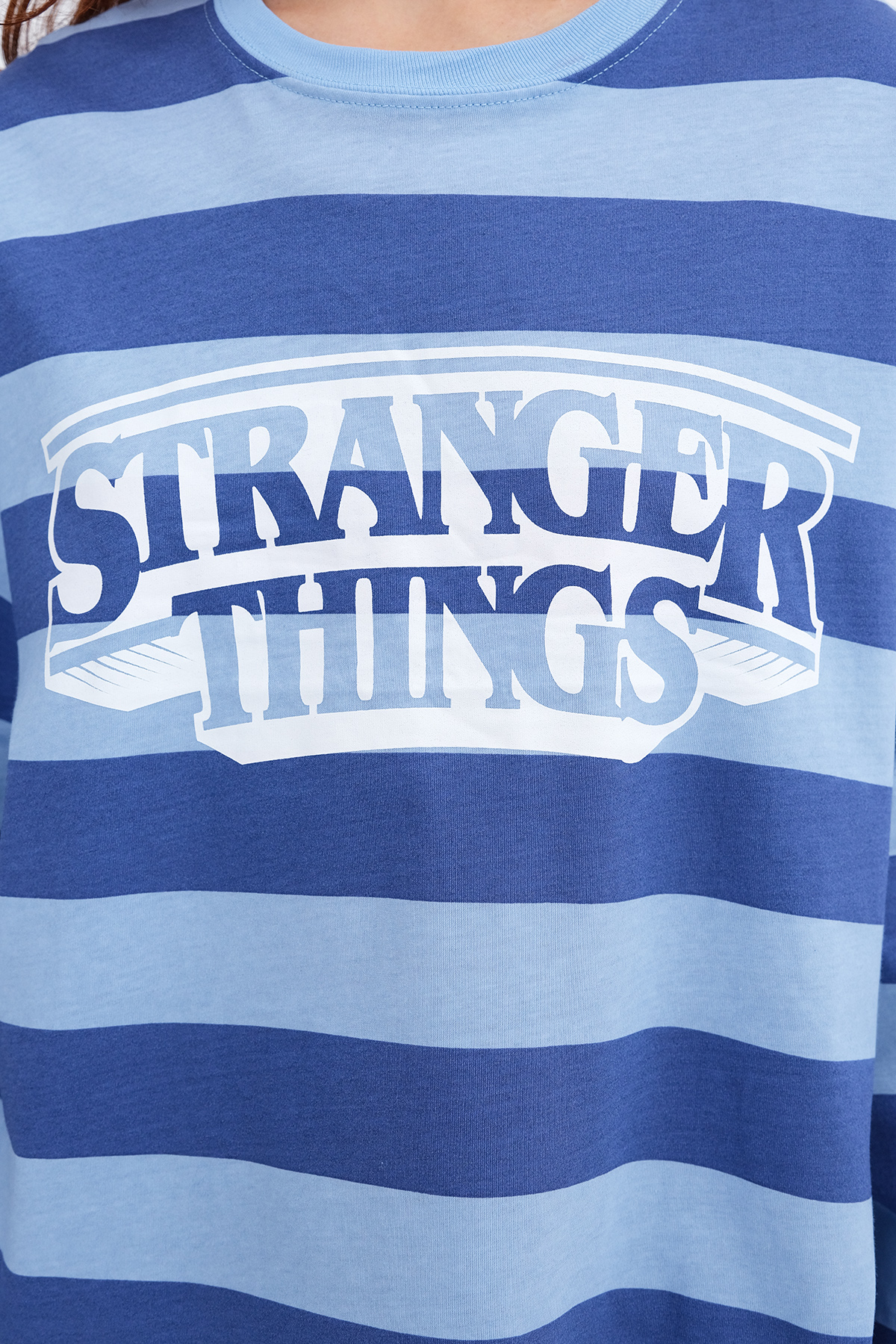 * Çizgili, baskılı, rahat kalıp t-shirt,