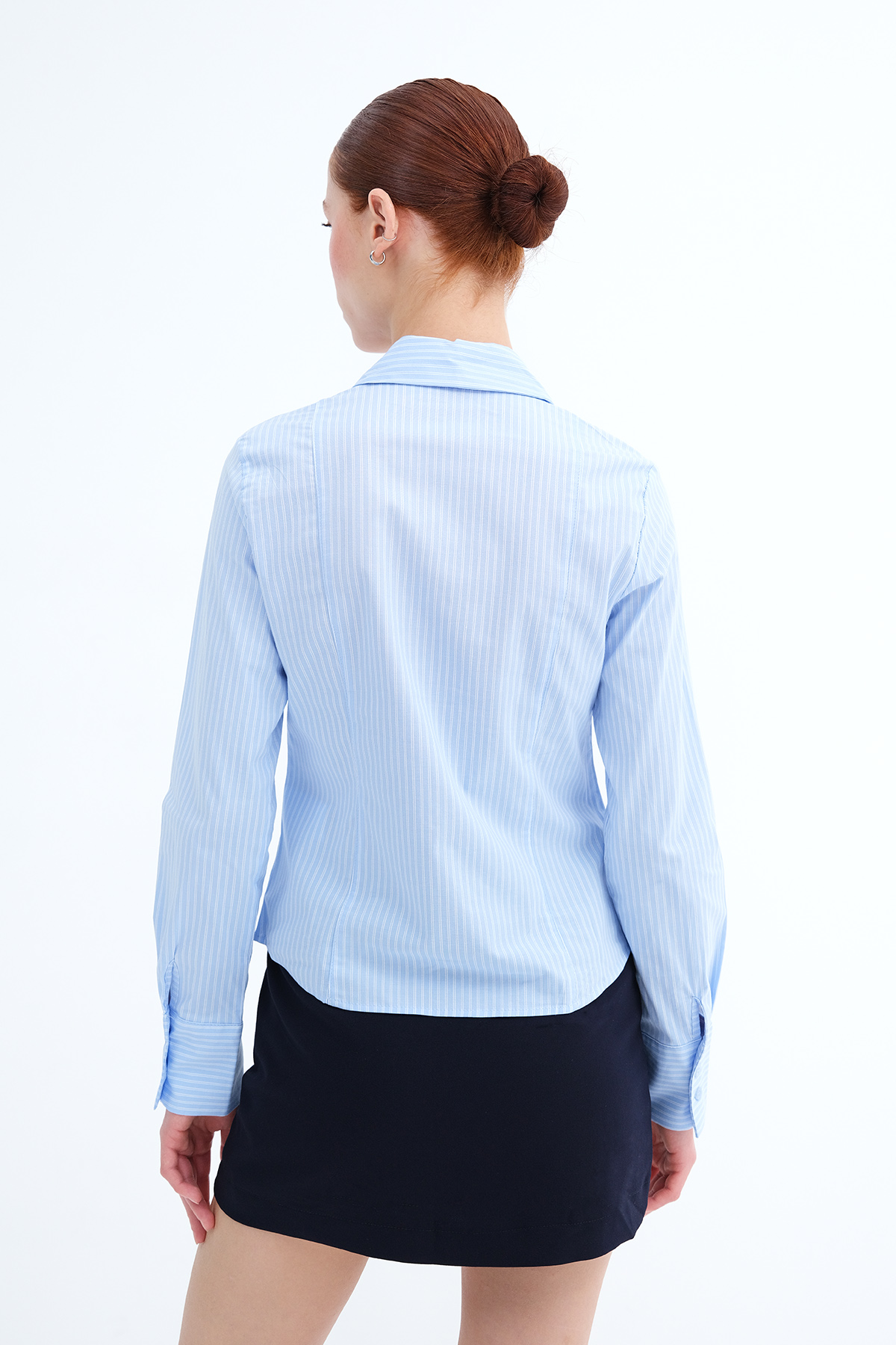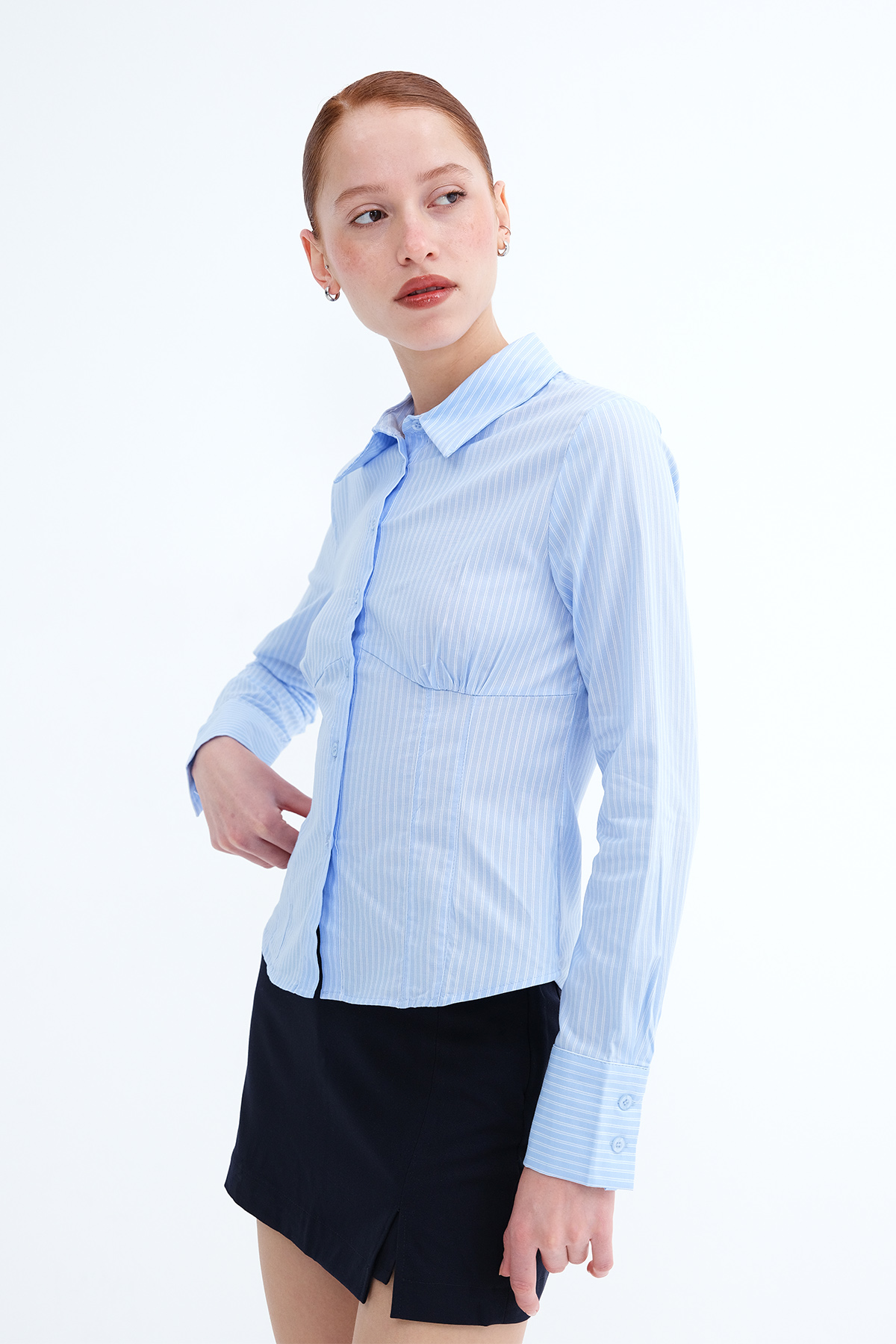 * Düz renk, düğmeli, vücudu saran gömlek,