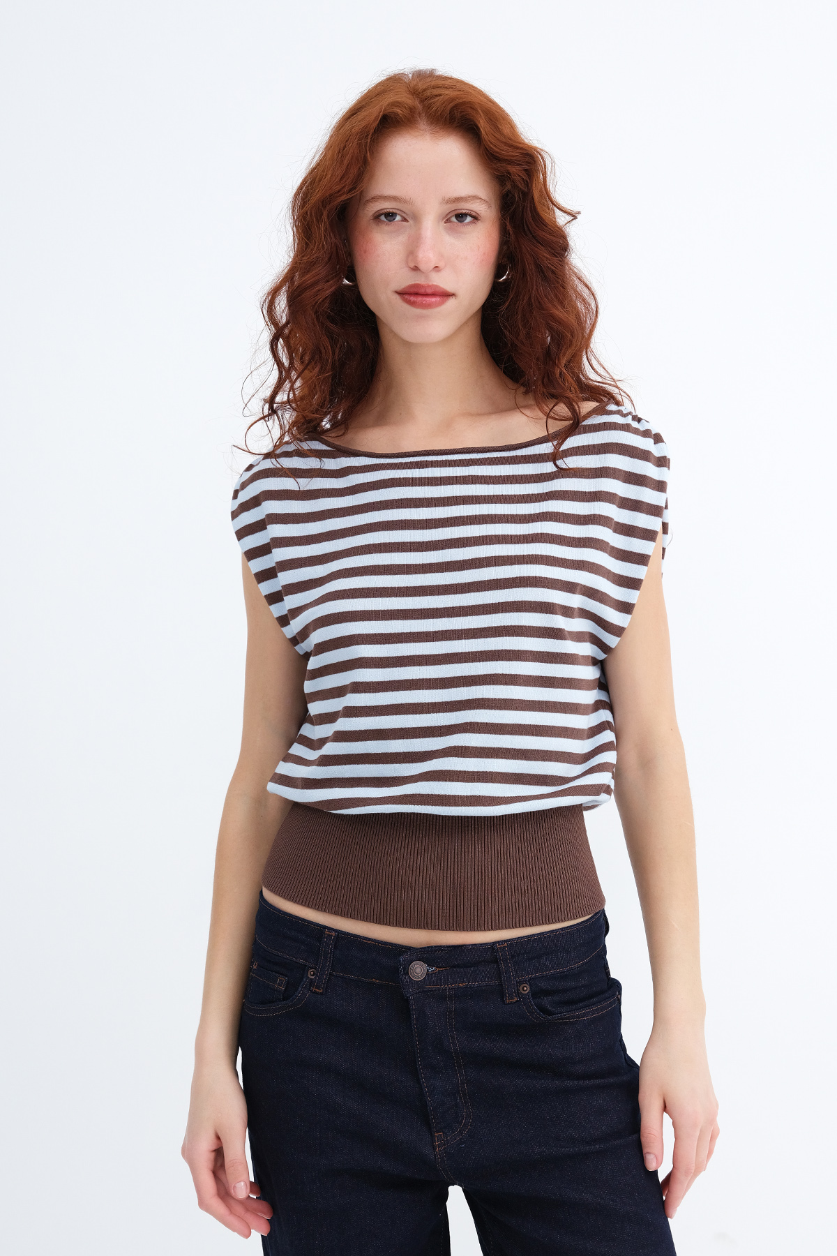 * Kayık yaka, çizgili,