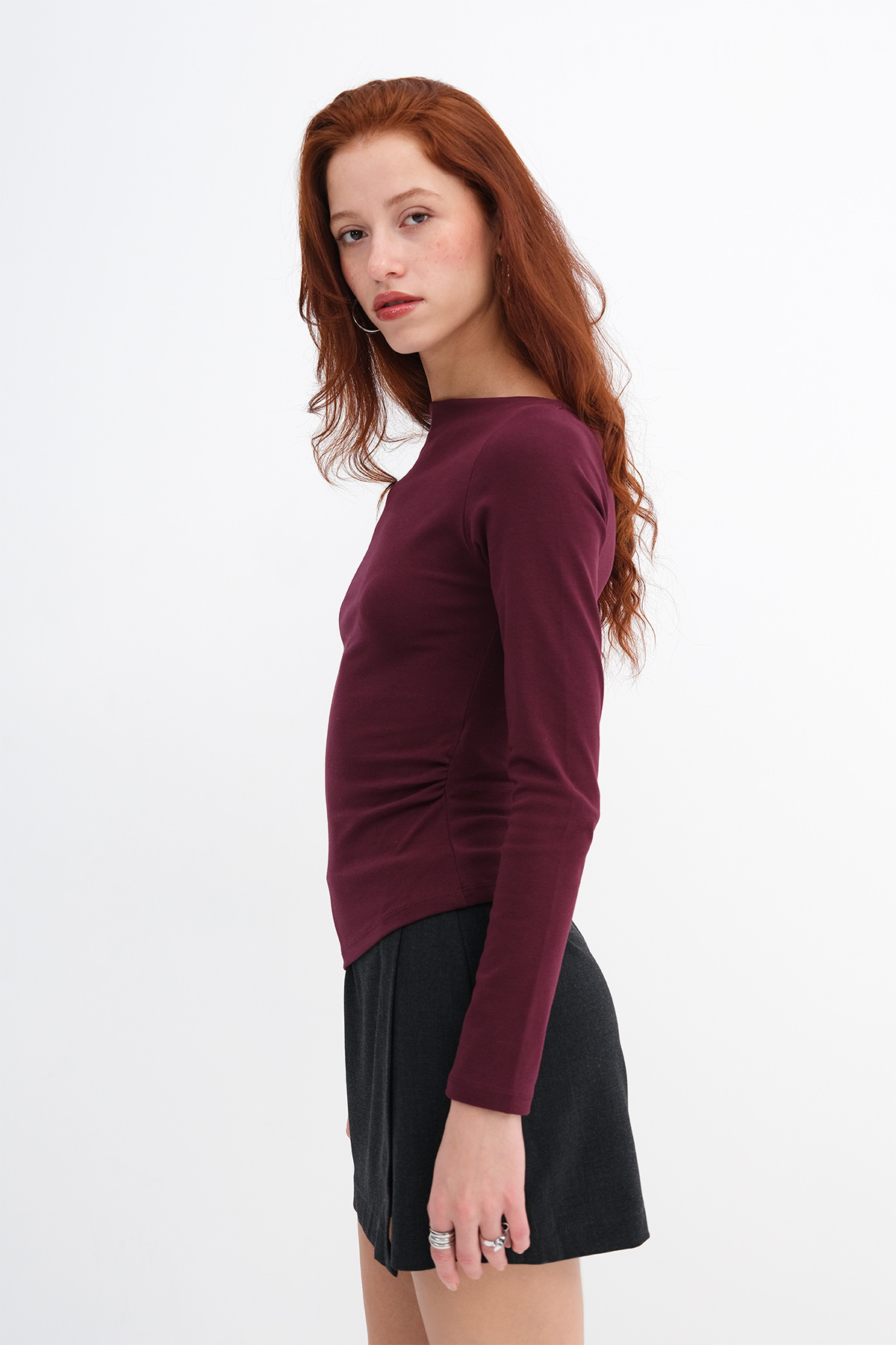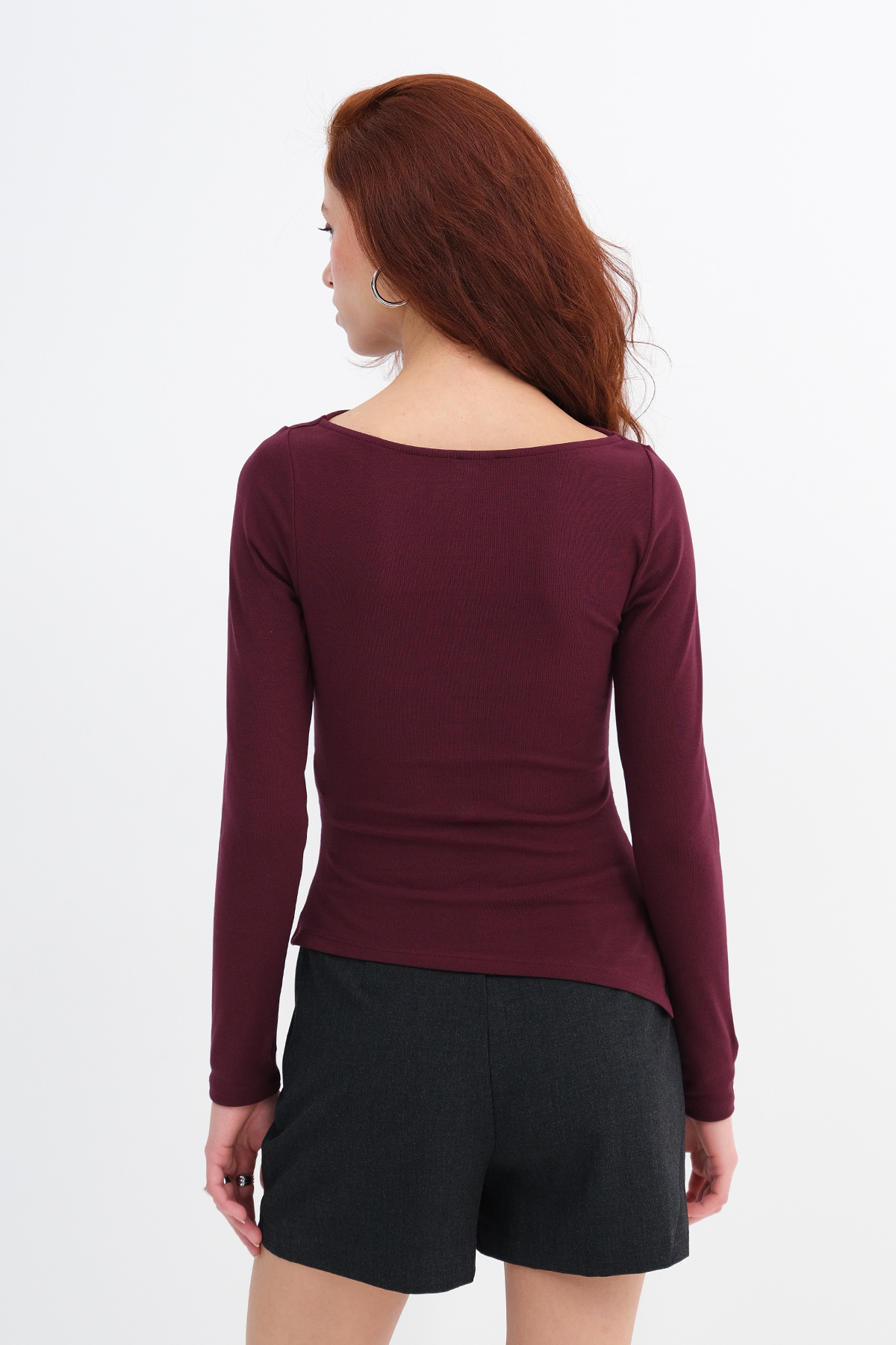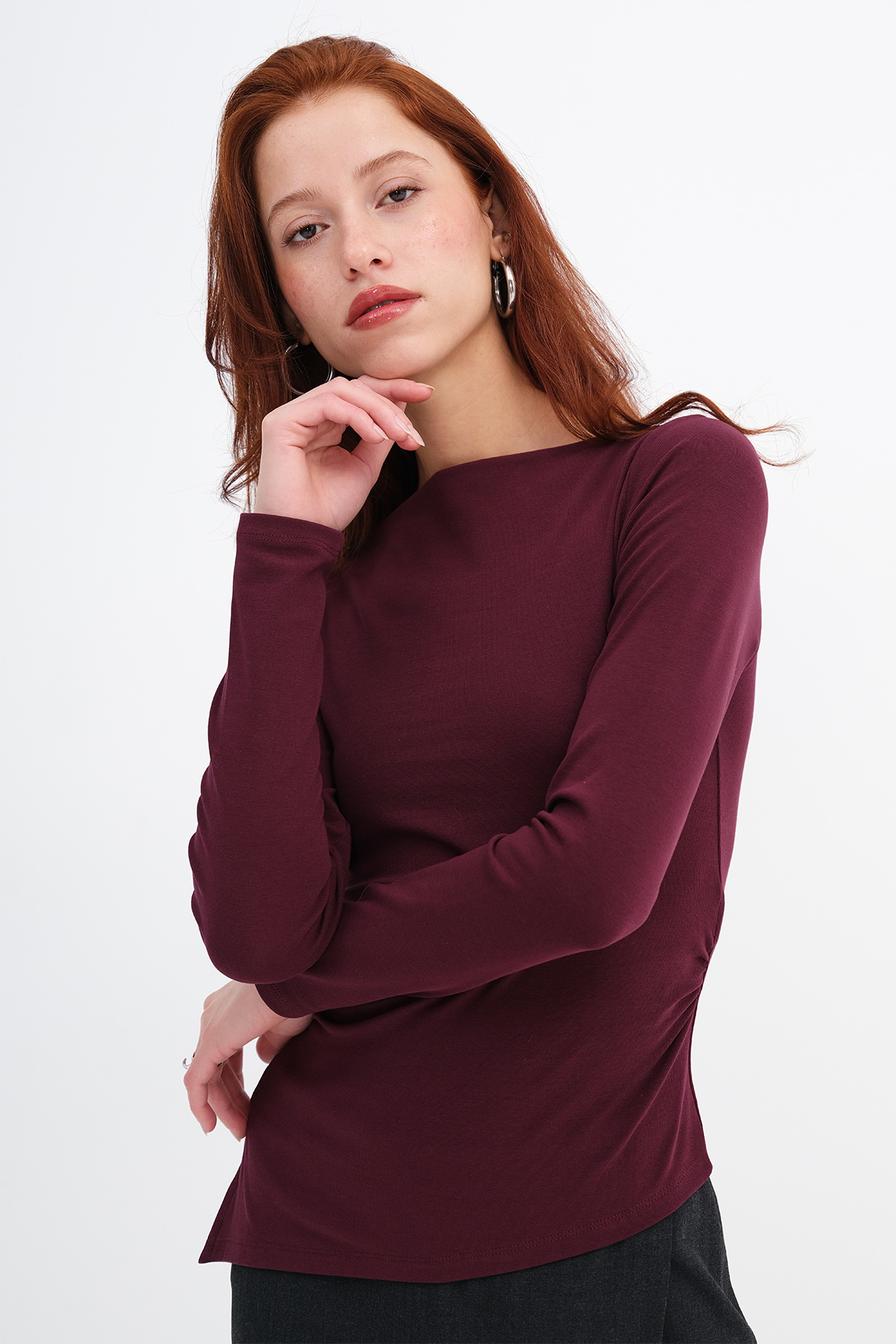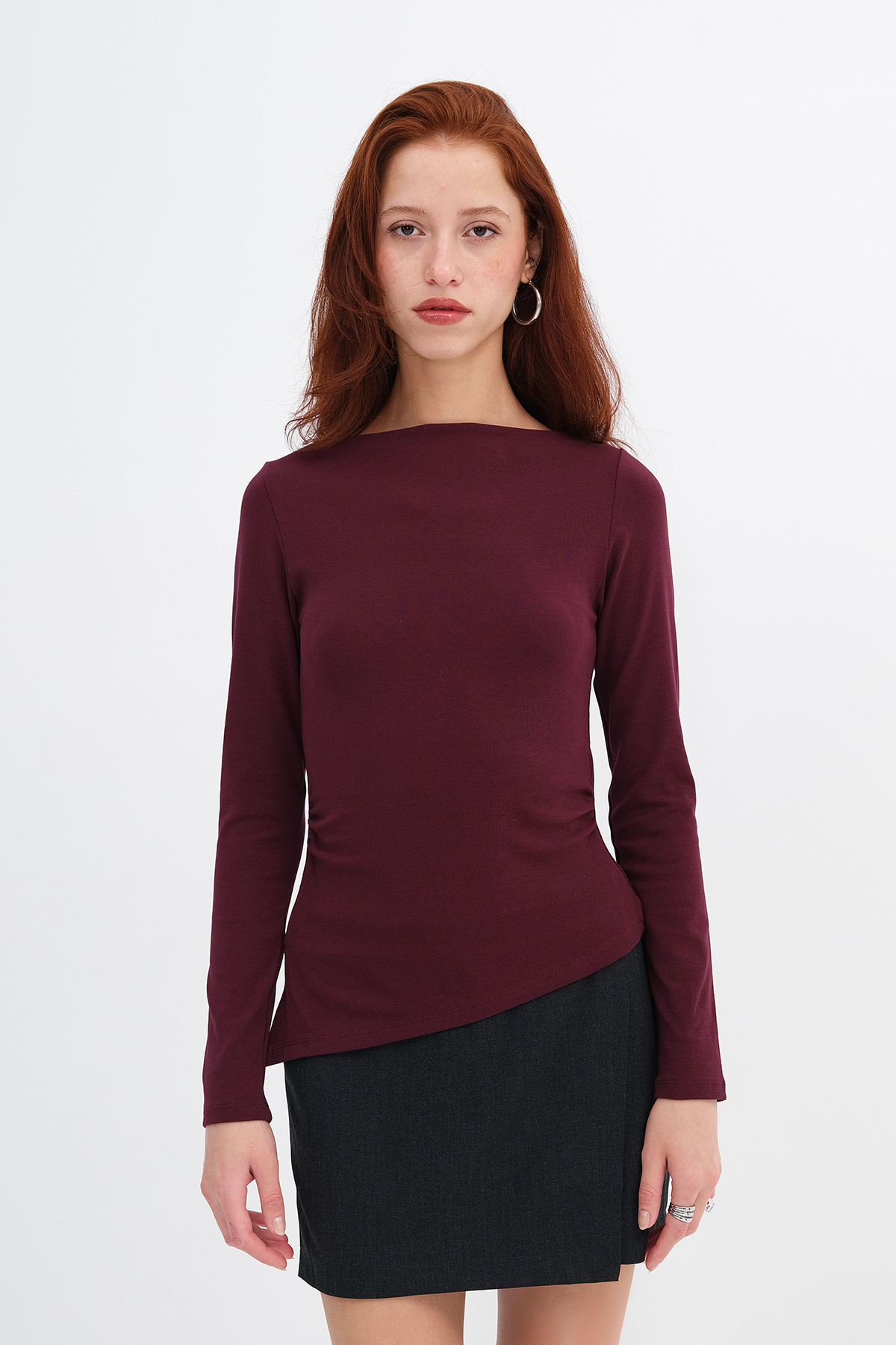 * Kayık yaka, uzun kollu, asimetrik kesim,