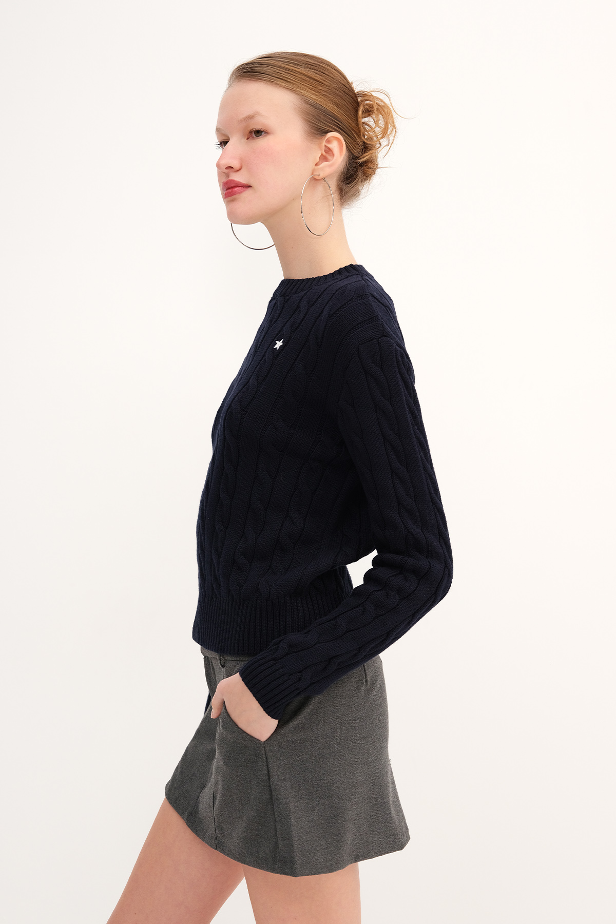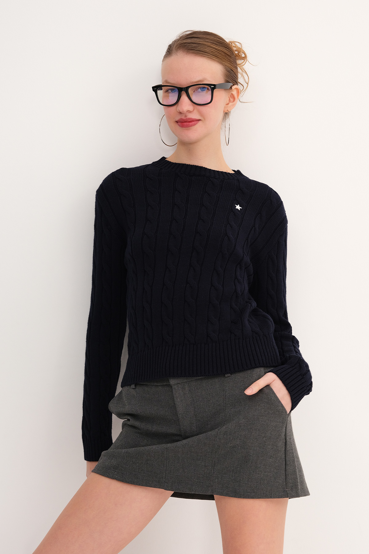 * Bisiklet yaka, uzun kollu,* Yıldız işlemeli, düz renk,* Saç örgüsü triko kazak,* Ürün içeriği: % 50 akrilik %50 Pamuk* Manken üzerindeki ürün standart bedendir.* Numune beden ölçüleri: Boy: 52 cm Göğüs: 90 cm kol boyu: 56 cm (1-3 cm değişiklik gösterebilir)* Ürün çekimlerinde renkler, ışık farklılığından dolayı değişkenlik gösterebilir.