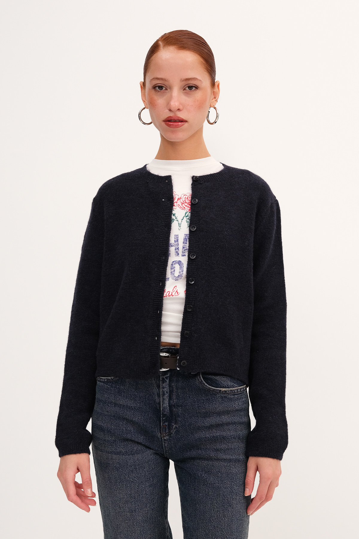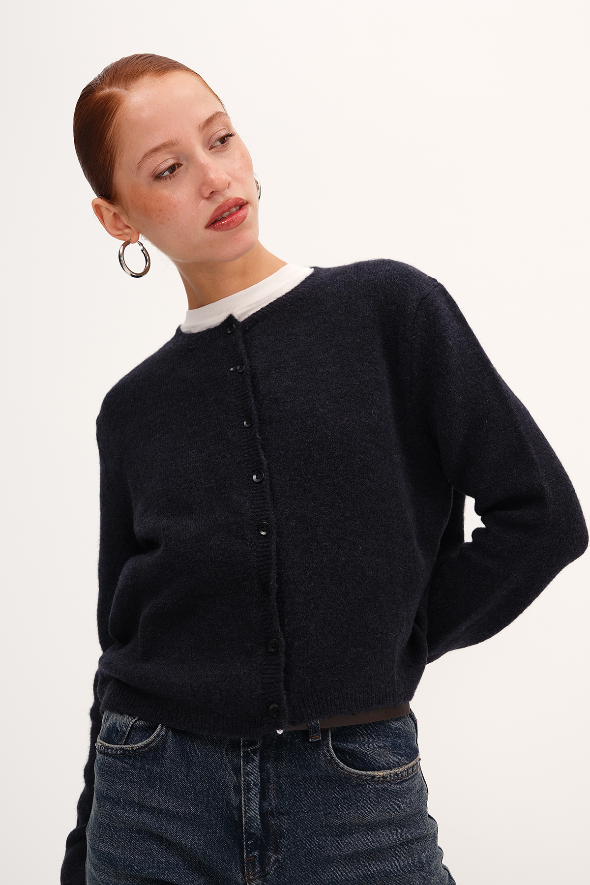 * Bisiklet yaka, uzun kollu,* Düğmeli, düz renk, triko hırka,* Ürün içeriği: %49 Akrilik %32 Polyester %16 Naylon %3 Elastan* Manken üzerindeki ürün standart bedendir.* Numune beden ölçüleri: Boy: 47 cm Göğüs: 84 cm Kol boyu: 58 cm (1-3 cm değişiklik gösterebilir)* Ürün çekimlerinde renkler, ışık farklılığından dolayı değişkenlik gösterebilir.