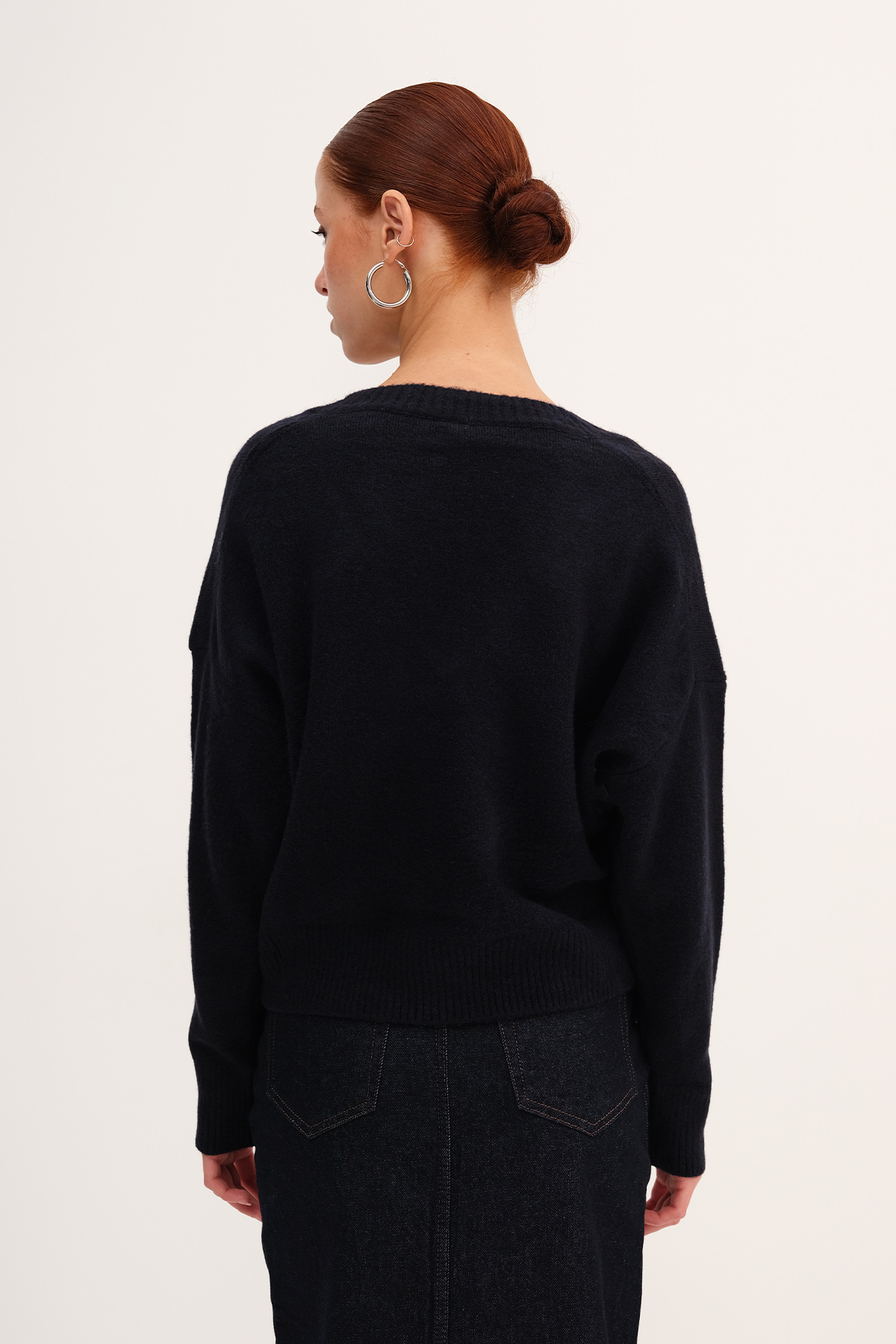 * V yaka, uzun kollu,* Manşetleri ve etek ucu lastik örgülü,* Düz renk, triko kazak,* Ürün içeriği: %49 Akrilik %32 Polyester %16 Naylon %3 Elastan* Manken üzerindeki ürün standart bedendir.* Numune Beden Ölçüleri: Boy: 55 cm Göğüs: 120 cm Kol Boyu: 43 cm (1-3 cm arasında değişiklik gösterebilir)* Ürün çekimlerinde renkler, ışık farklılığından dolayı değişkenlik gösterebilir.