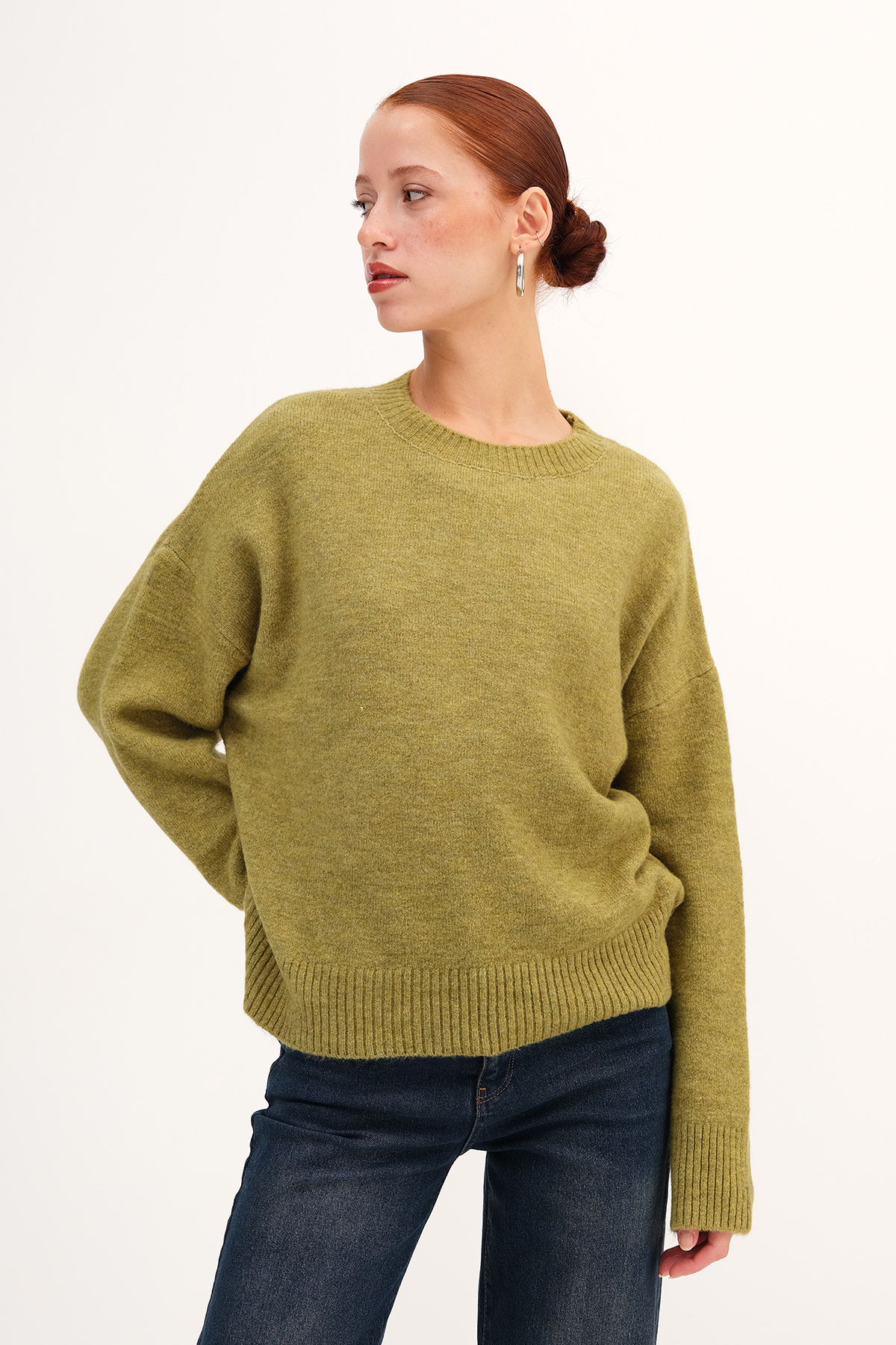 * Bisiklet yaka, uzun kollu, düşük omuz,* Düz renk, rahat kalıp,* Triko kazak,* Ürün içeriği: %49 Akrilik %32 Polyester %16 Naylon %3 Elastan* Manken üzerindeki ürün standart bedendir.* Numune beden ölçüleri: Boy: 57 cm Göğüs:120 cm Kol boyu:45 cm (1-3 cm değişiklik gösterebilir)* Ürün çekimlerinde renkler, ışık farklılığından dolayı değişkenlik gösterebilir.