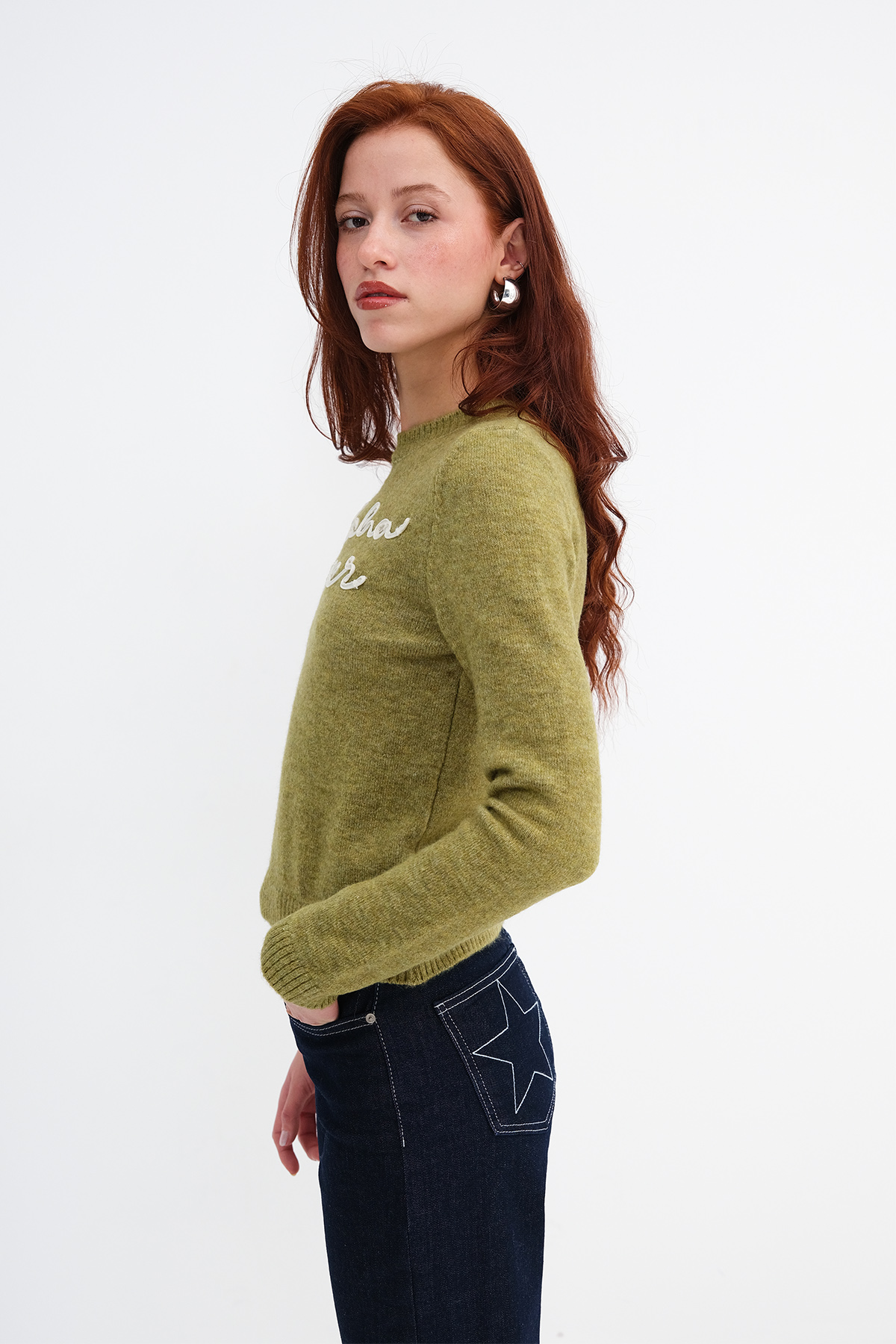 * İşlemeli, triko kazak,