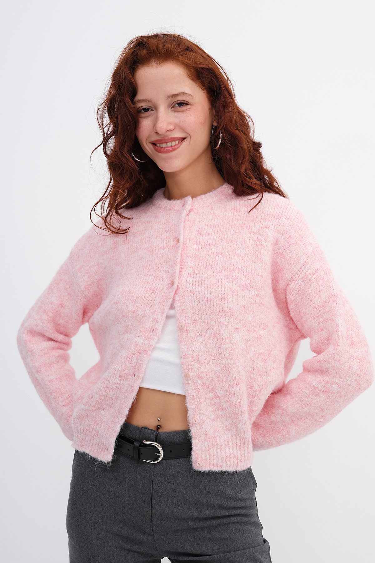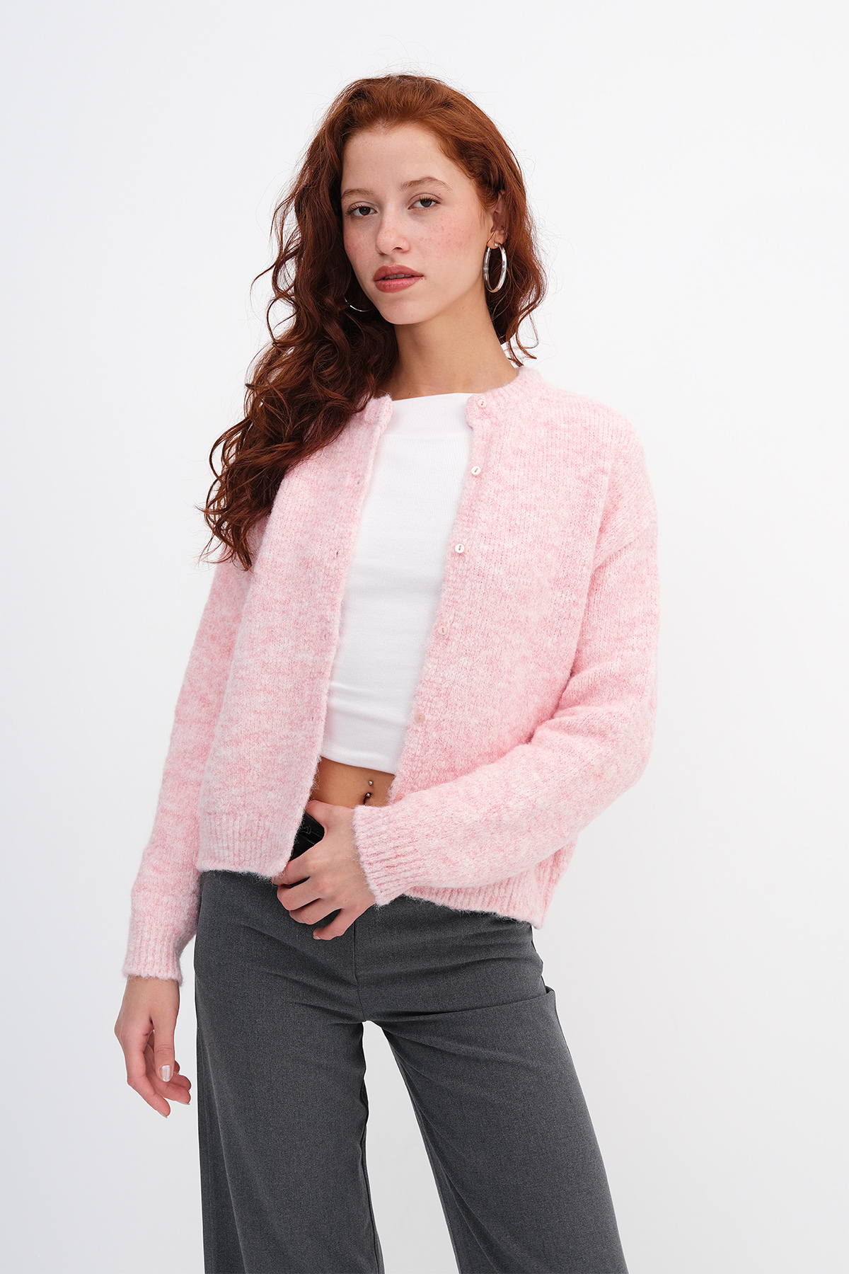 * Yumuşak dokulu, düğmeli, triko hırka,