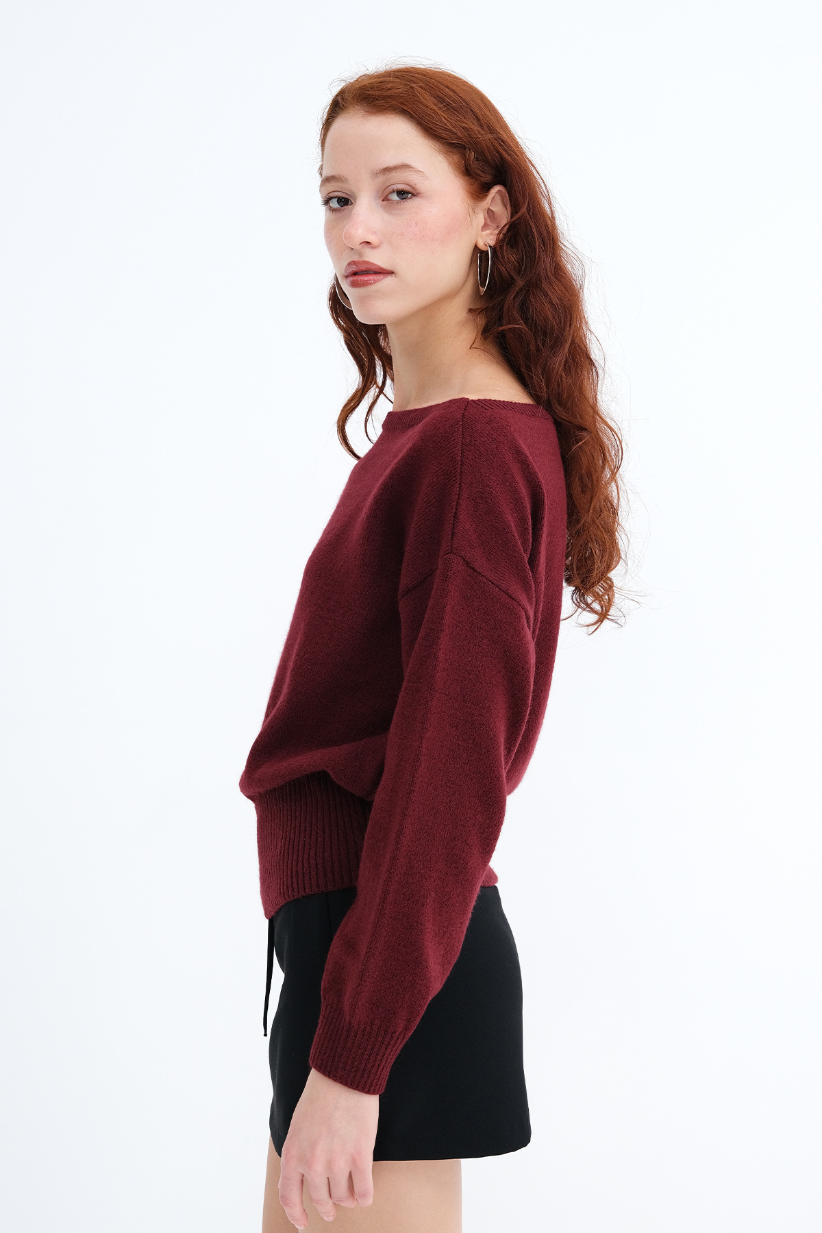 * Düz renk, beli lastikli triko kazak,