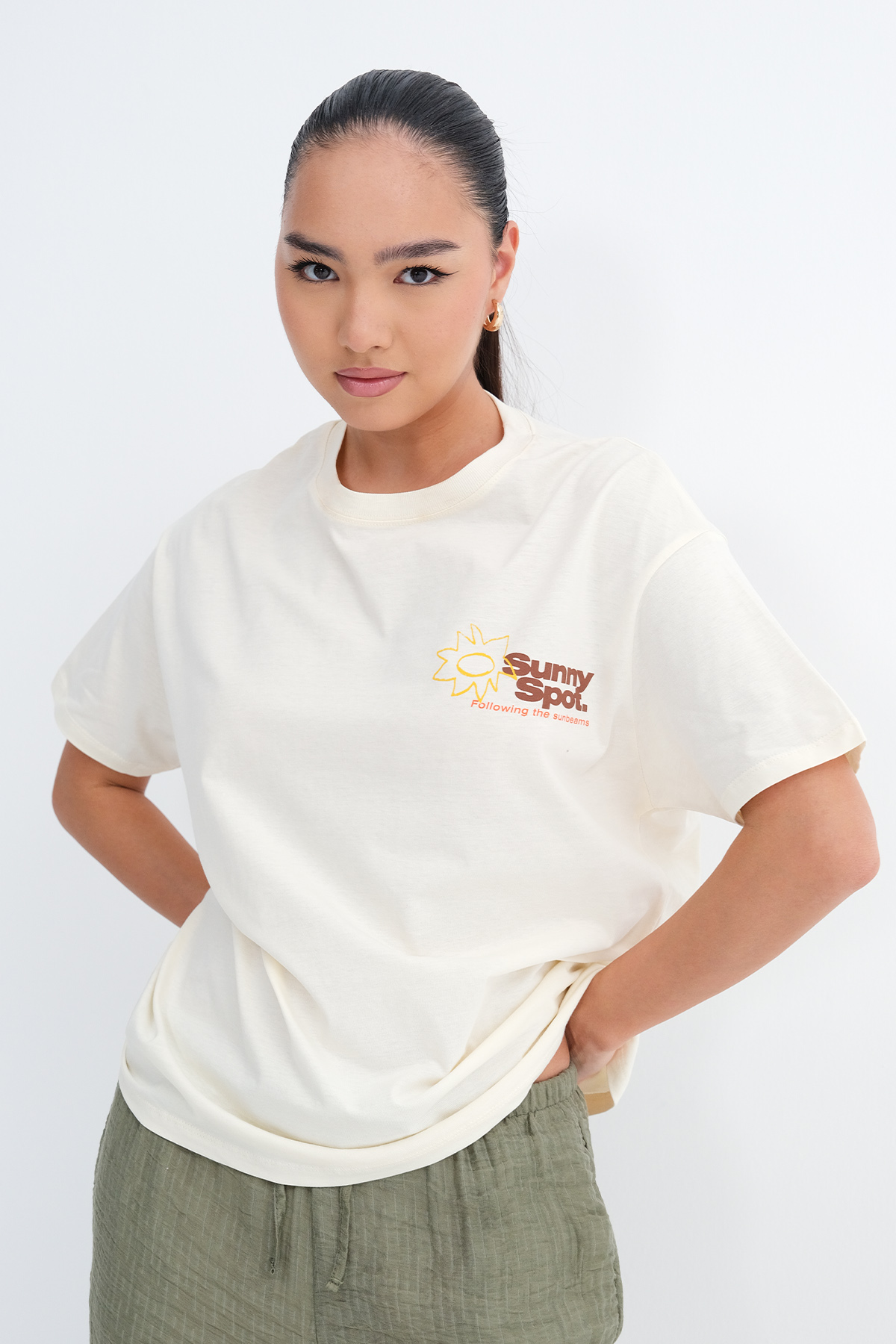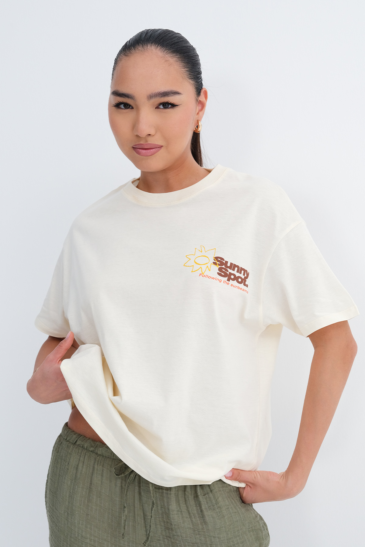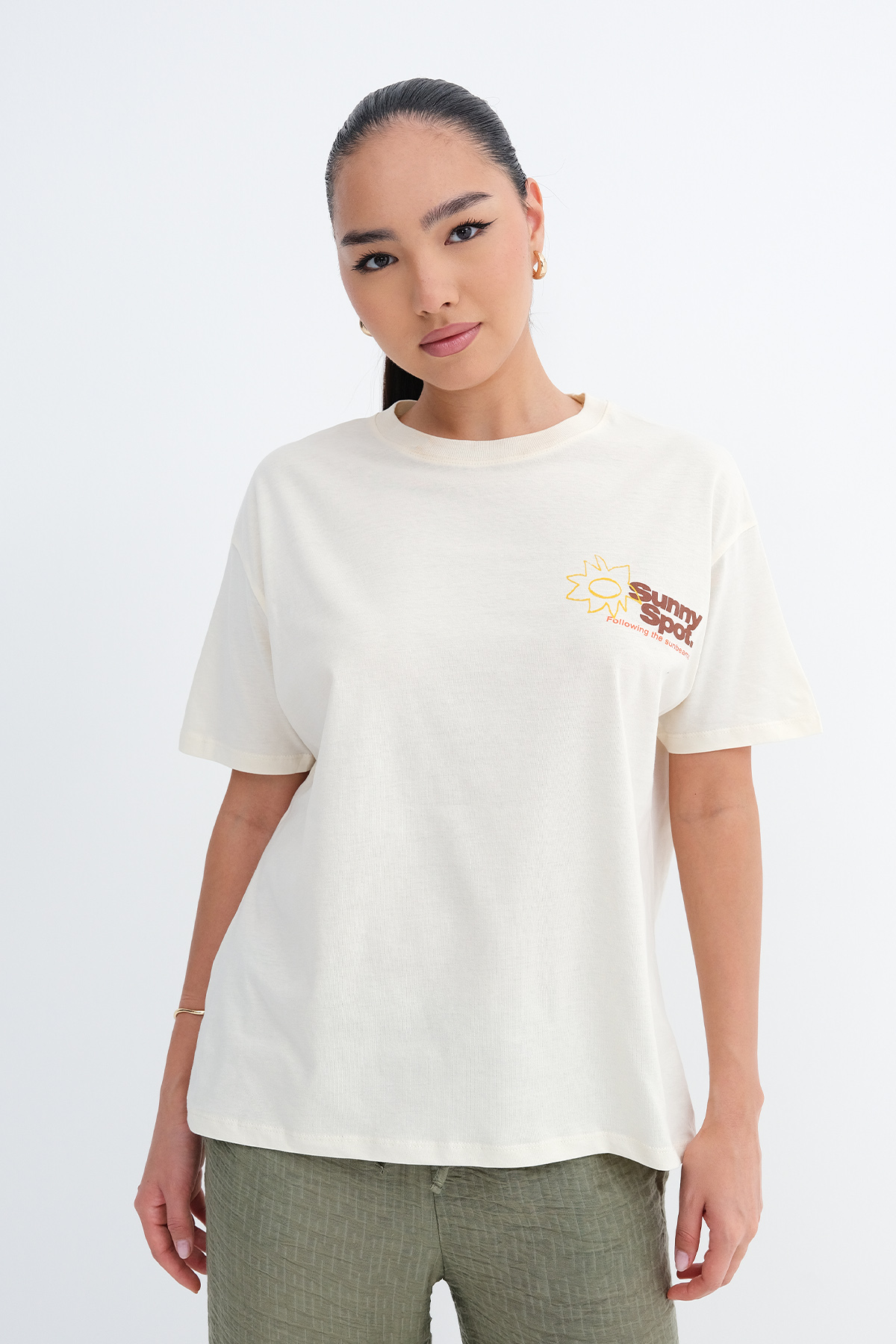 * Baskılı, rahat kalıp t-shirt,
