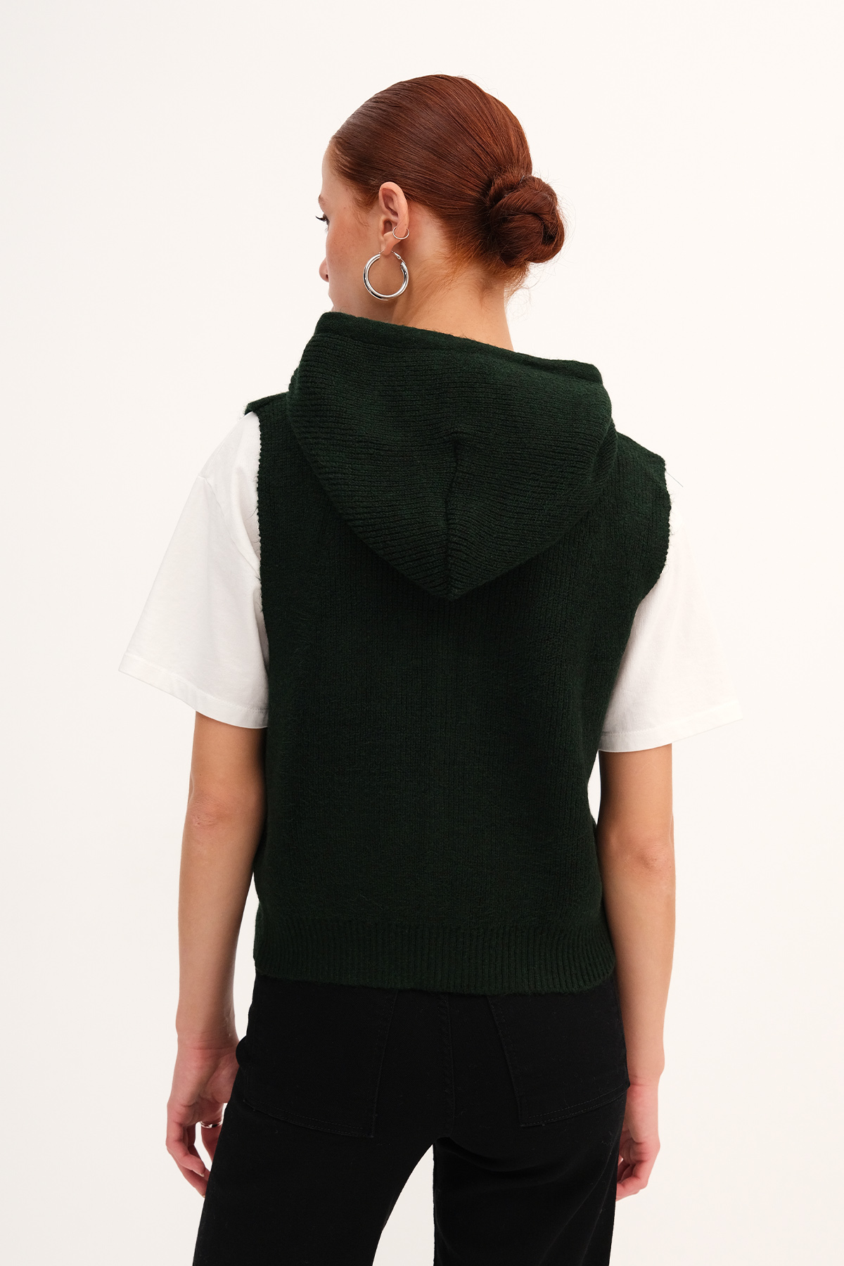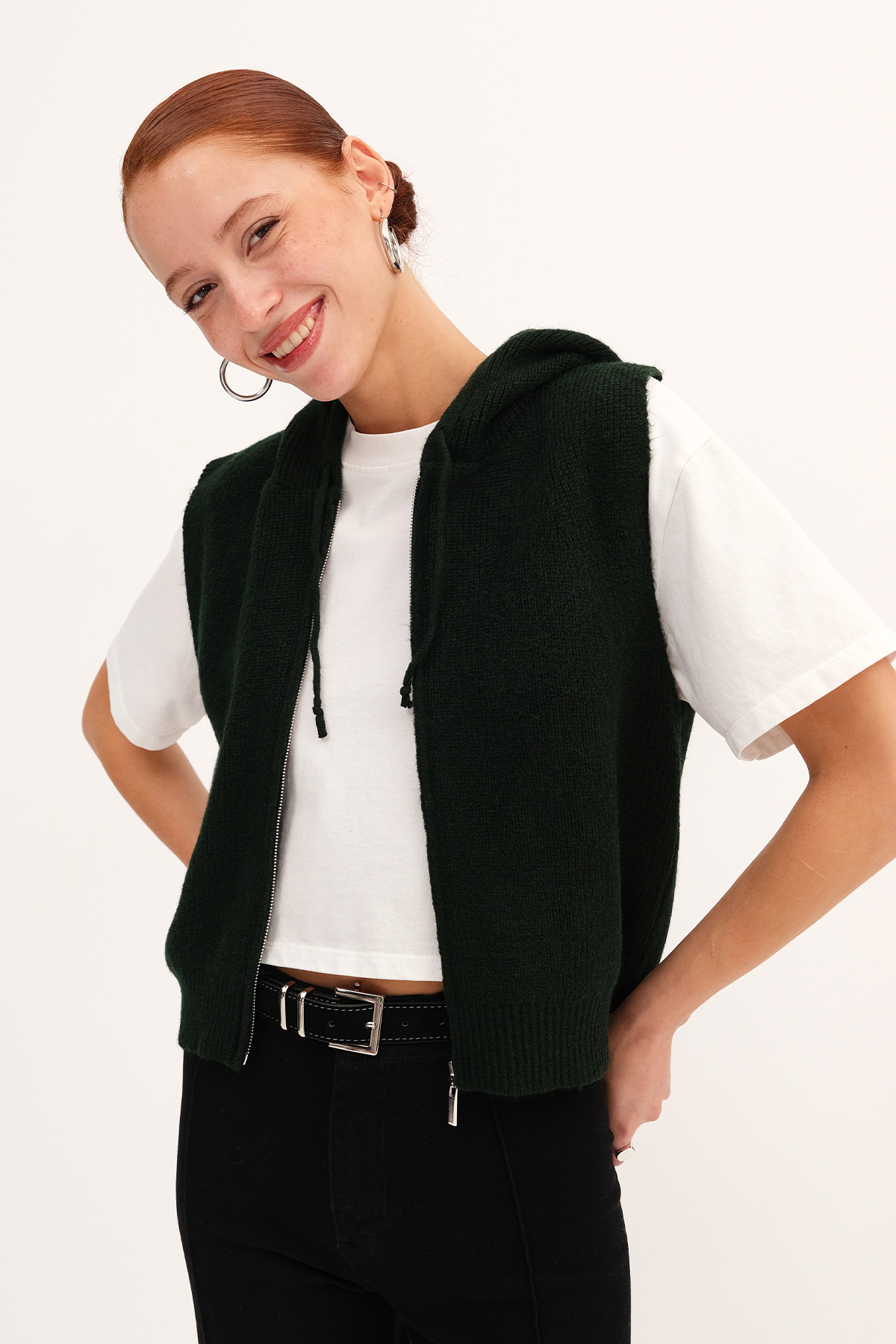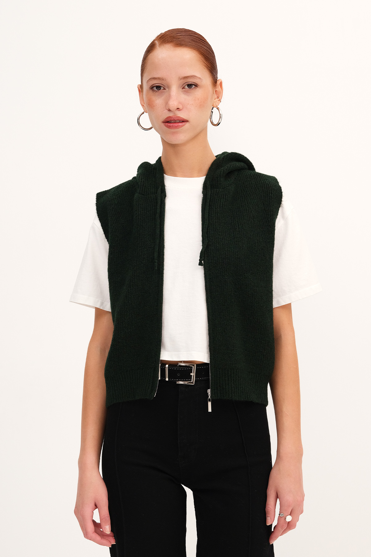 * Kapüşonlu, kolsuz,* Kapüşonu ayarlanabilir büzgü ipli,* Fermuarlı, triko yelek,* Ürün içeriği: %80 Akrilik %20 Polyester* Manken üzerindeki ürün standart bedendir.* Numune beden ölçüleri: Boy: 50 cm Göğüs: 84 cm (1-3 cm değişiklik gösterebilir)* Ürün çekimlerinde renkler, ışık farklılığından dolayı değişkenlik gösterebilir.