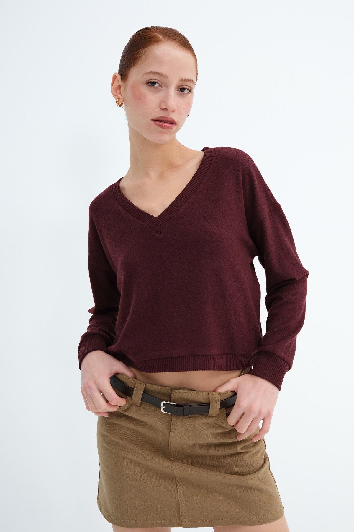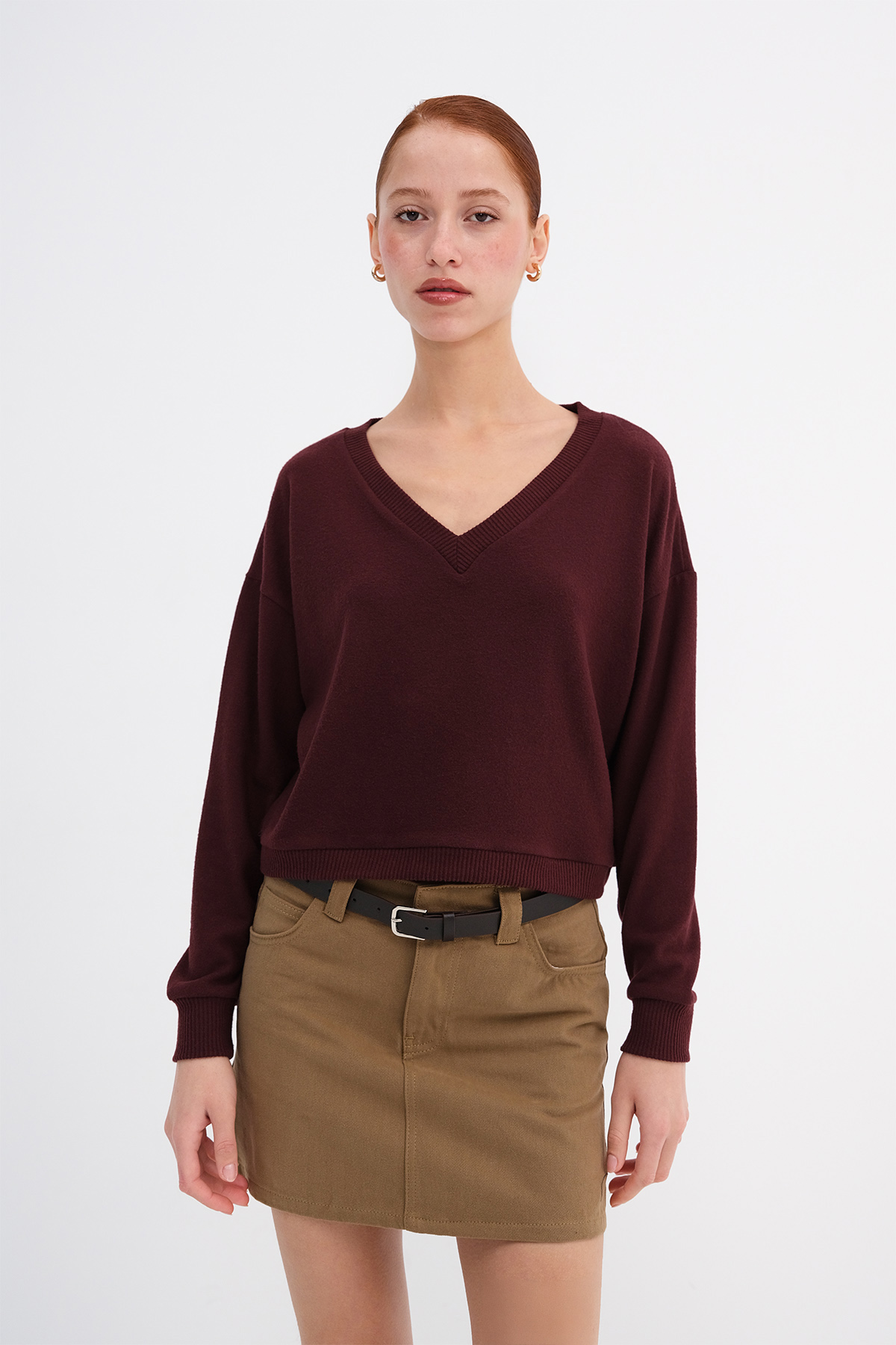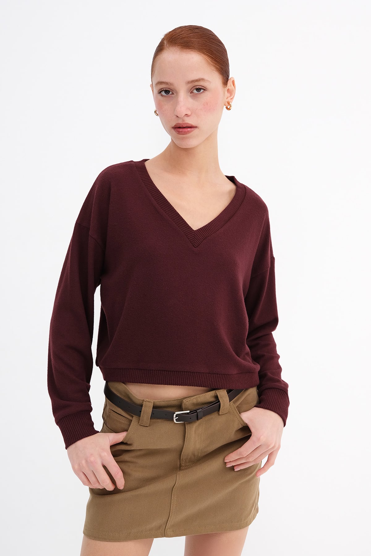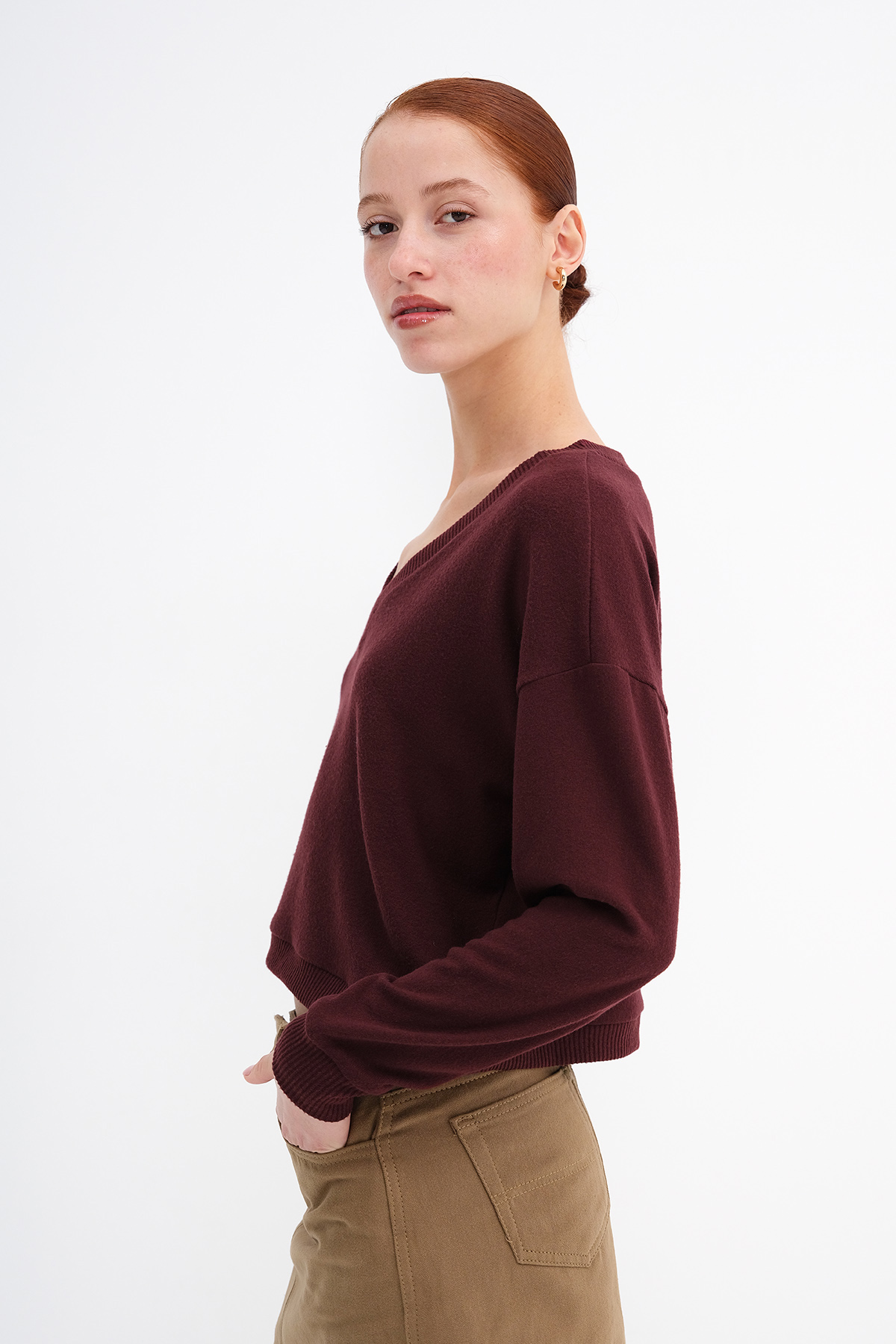 * V yaka, uzun kollu,