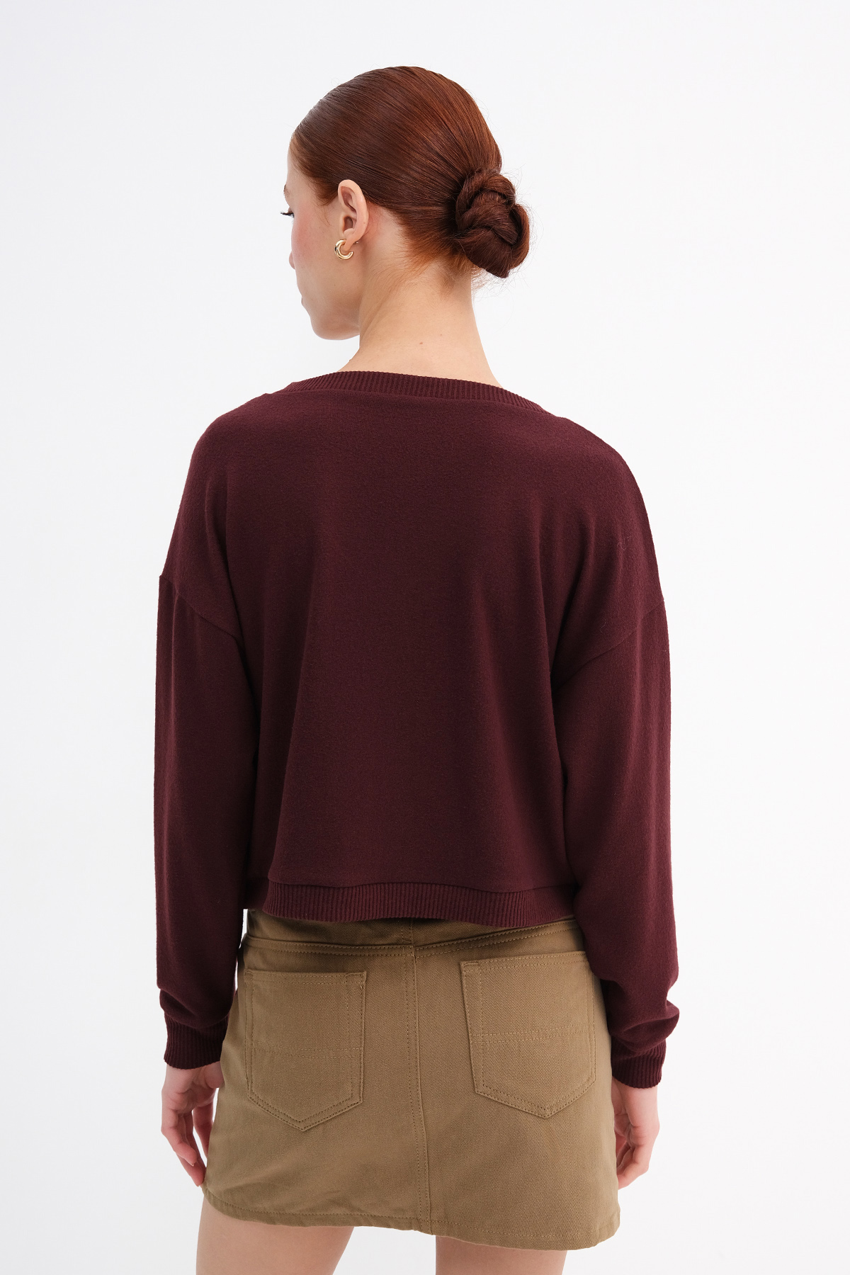 * Manşetleri ve etek ucu lastikli, rahat kalıp, düz renk sweat,