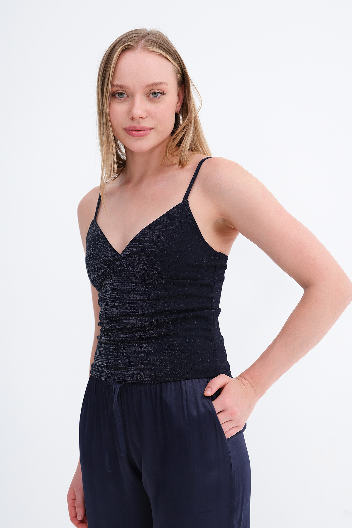 * Ayarlanabilir askılı, v yaka,