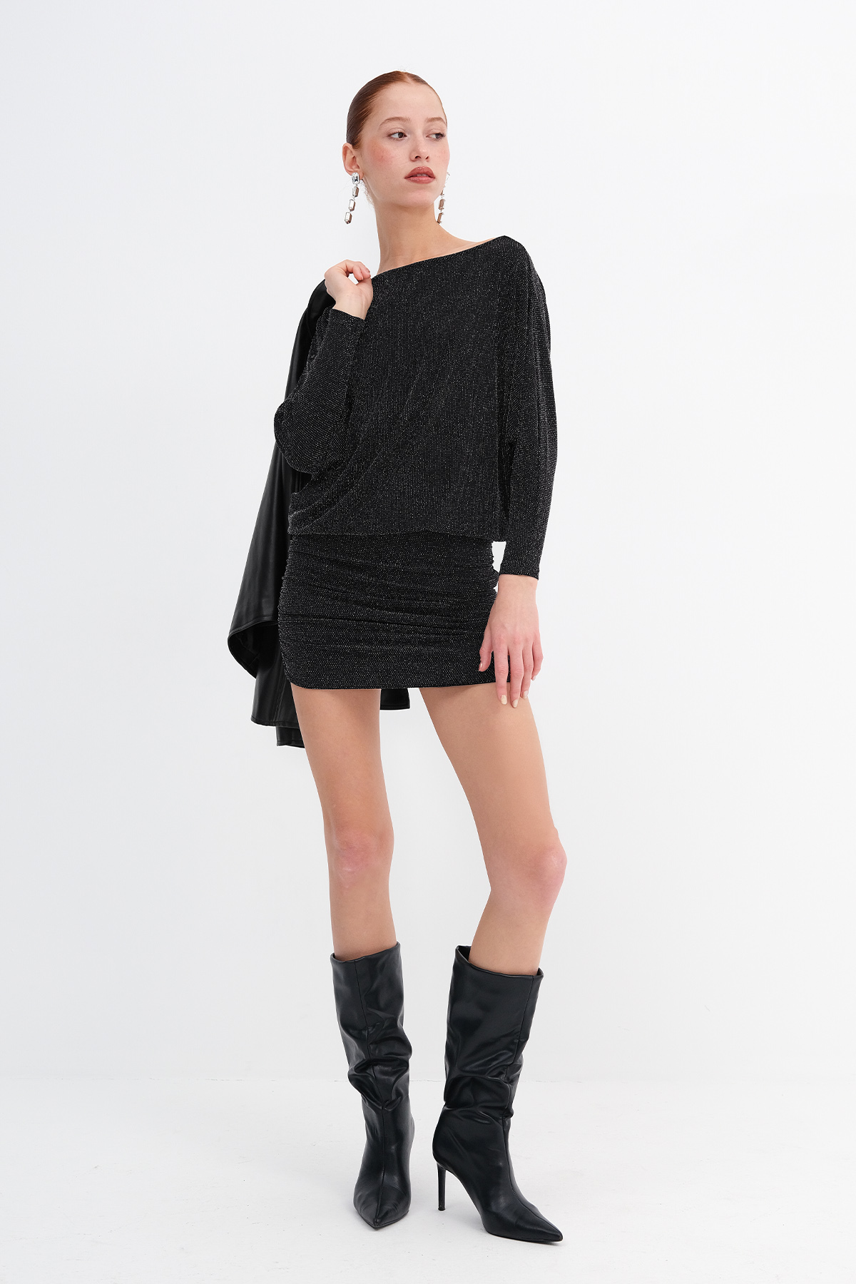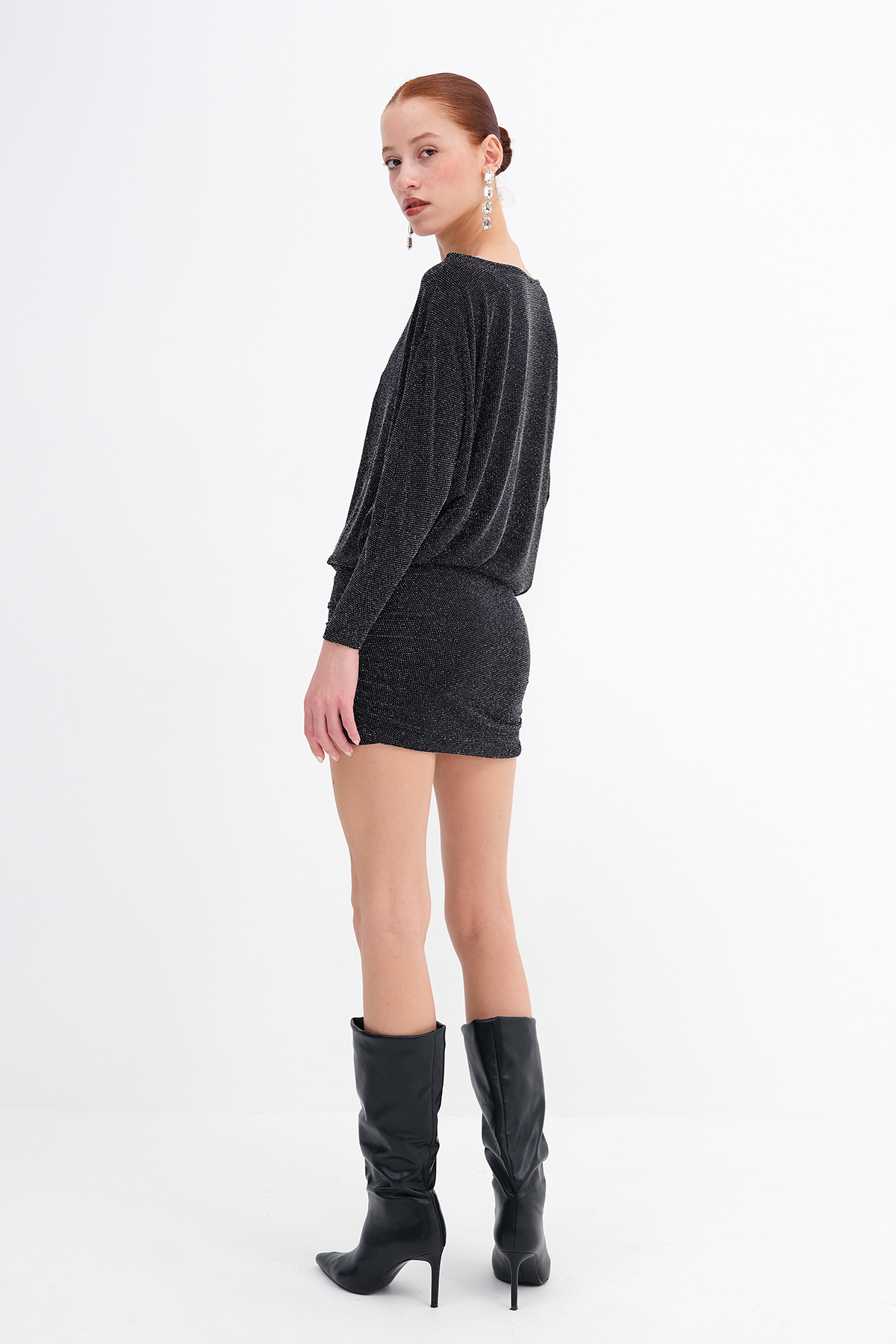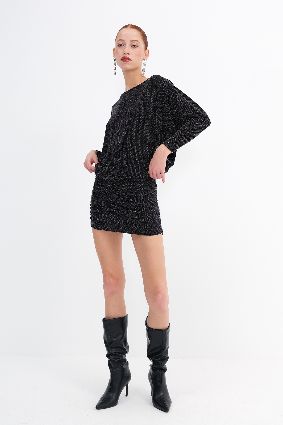 * Vücudu saran, etek kısmı çift katlı, mini elbise,