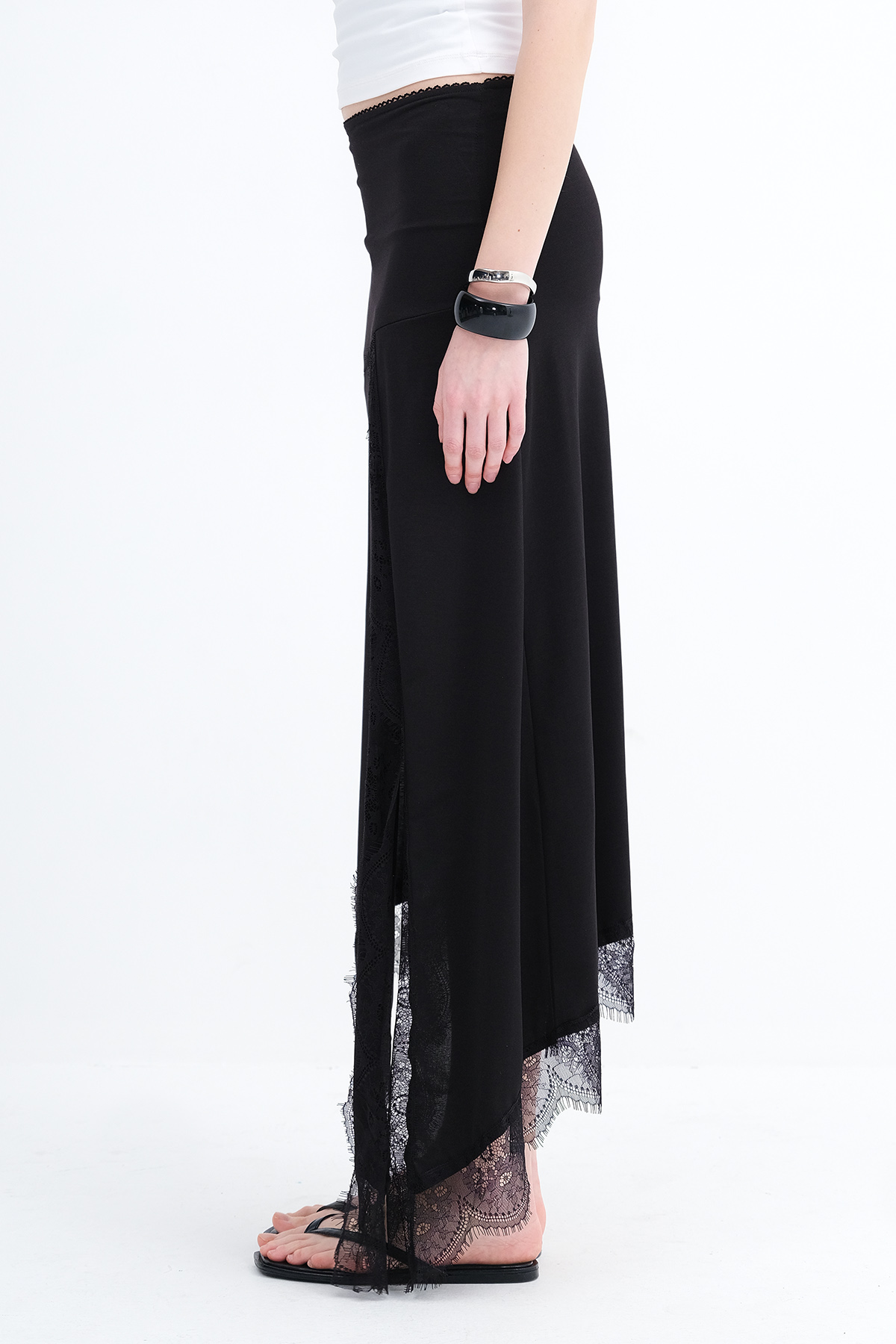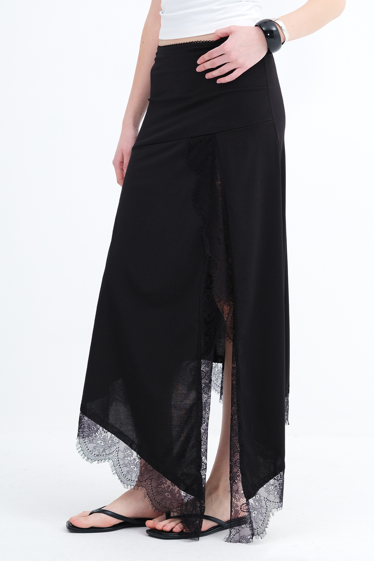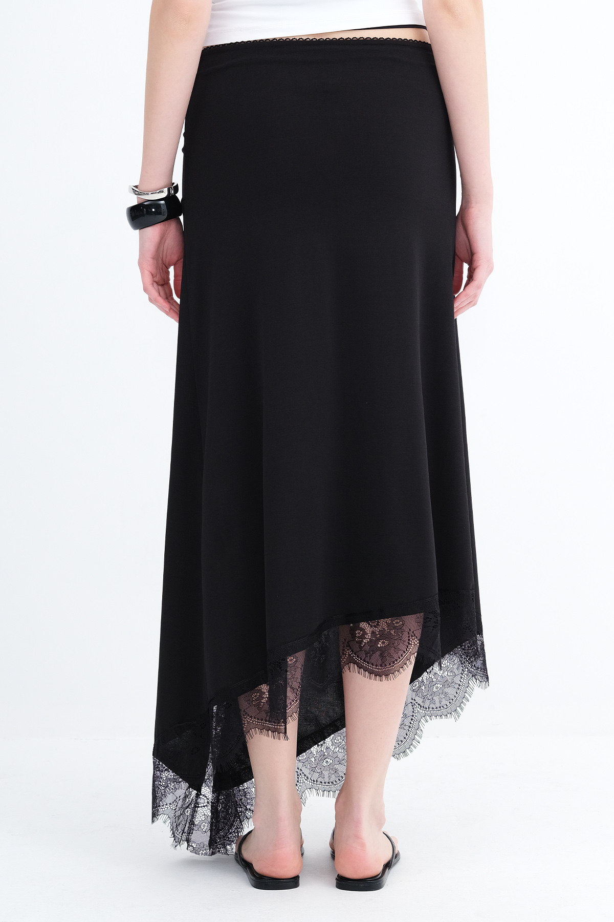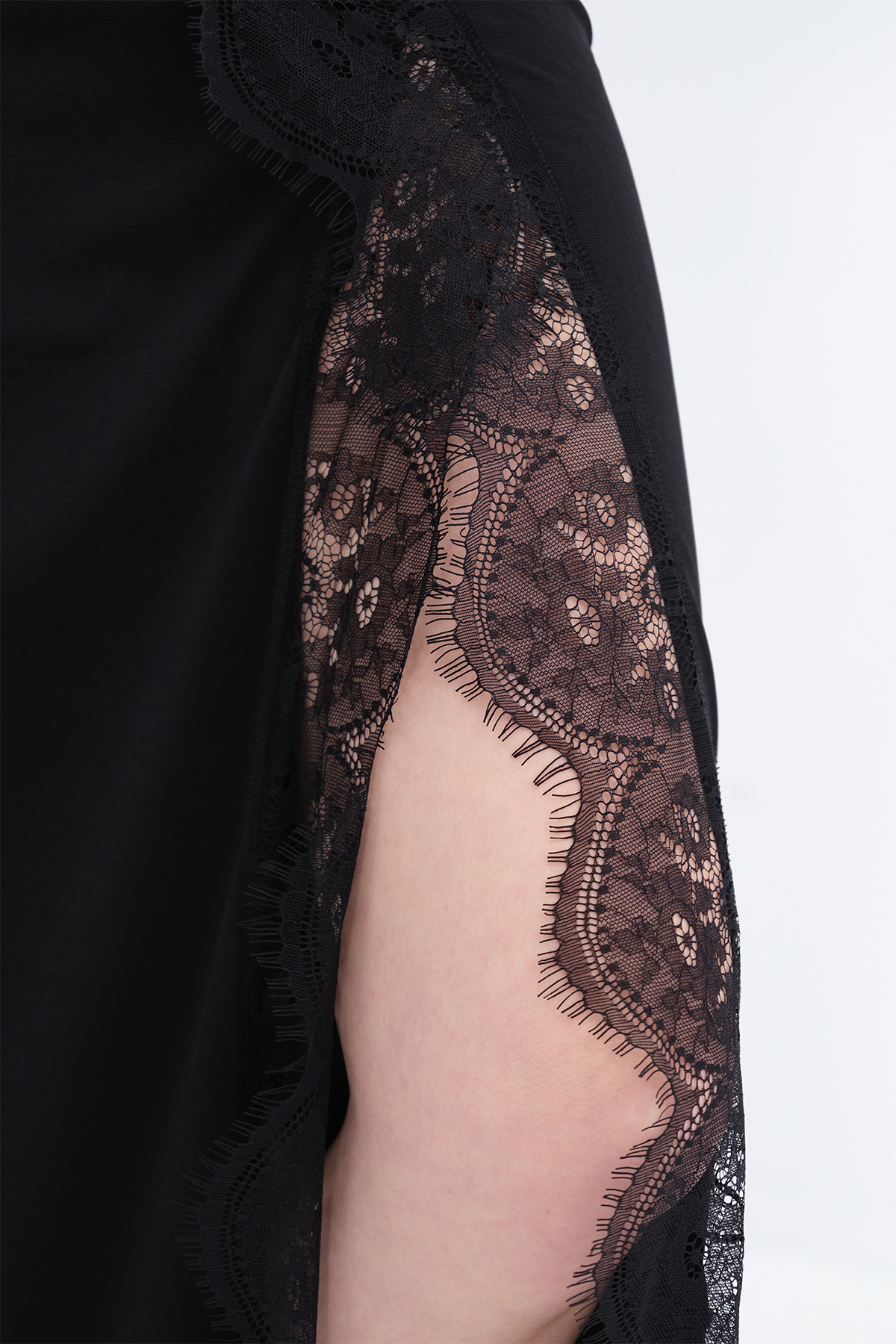 * Asimetrik kesim, dantel detaylı,