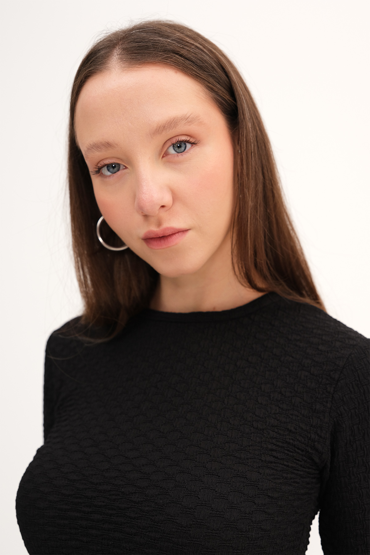* Bisiklet yaka, uzun kollu,* Dokulu, düz renk,* Asimetrik kesim bluz,* Ürün içeriği: %93 Polyester %10 Elastan* Manken üzerindeki ürün 36/S bedendir.* Numune beden ölçüleri: Boy: 51 cm Göğüs: 70 cm Kol boyu: 59 cm (1-3 cm değişiklik gösterebilir)* Ürün çekimlerinde renkler, ışık farklılığından dolayı değişkenlik gösterebilir.