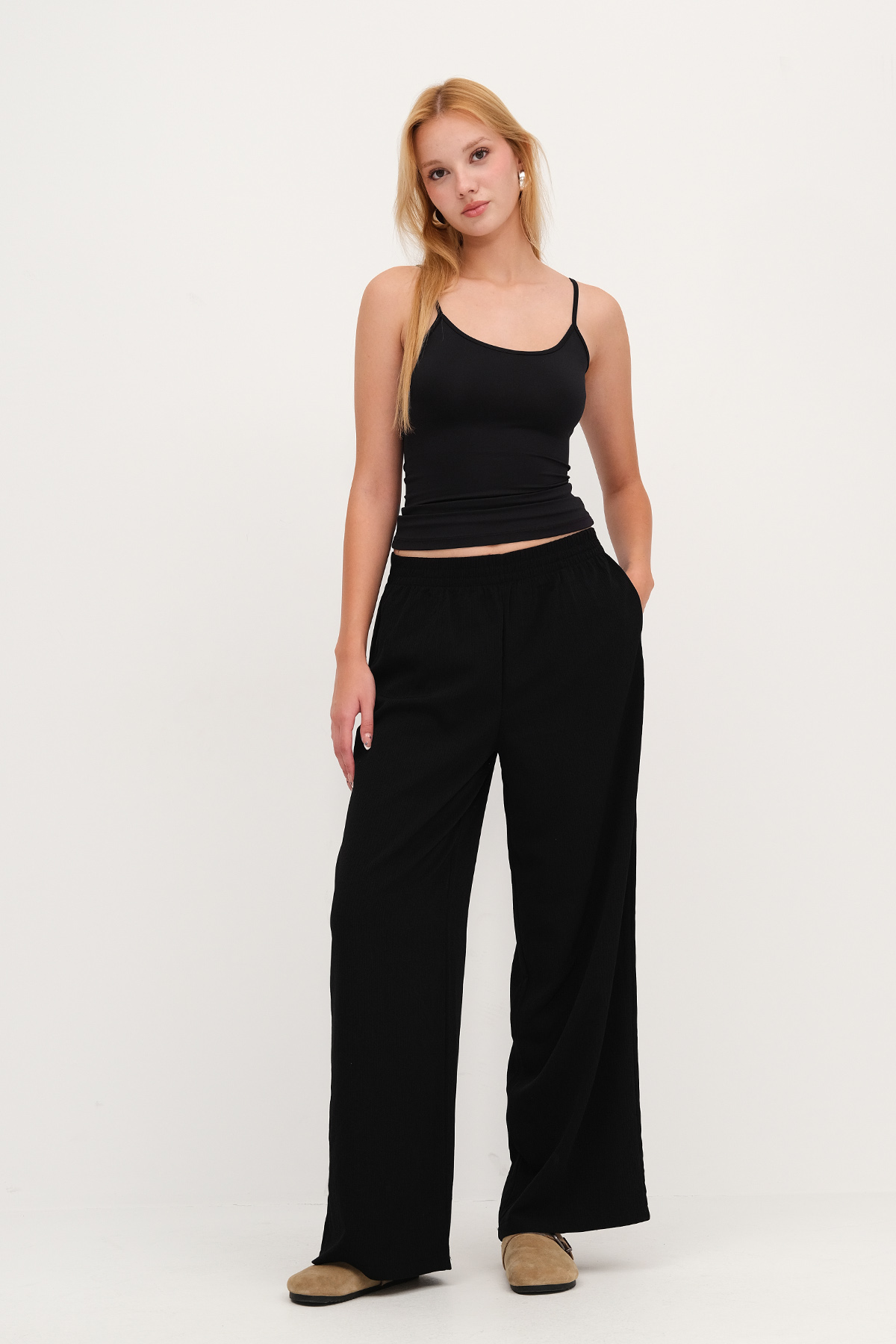 * Düz renk, wide leg pantolon,