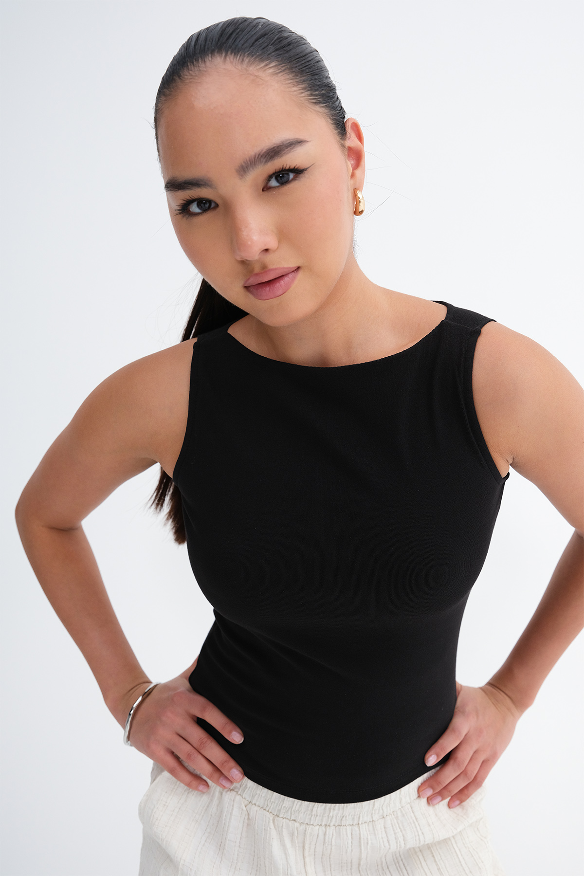 * Bisiklet yaka, kolsuz,