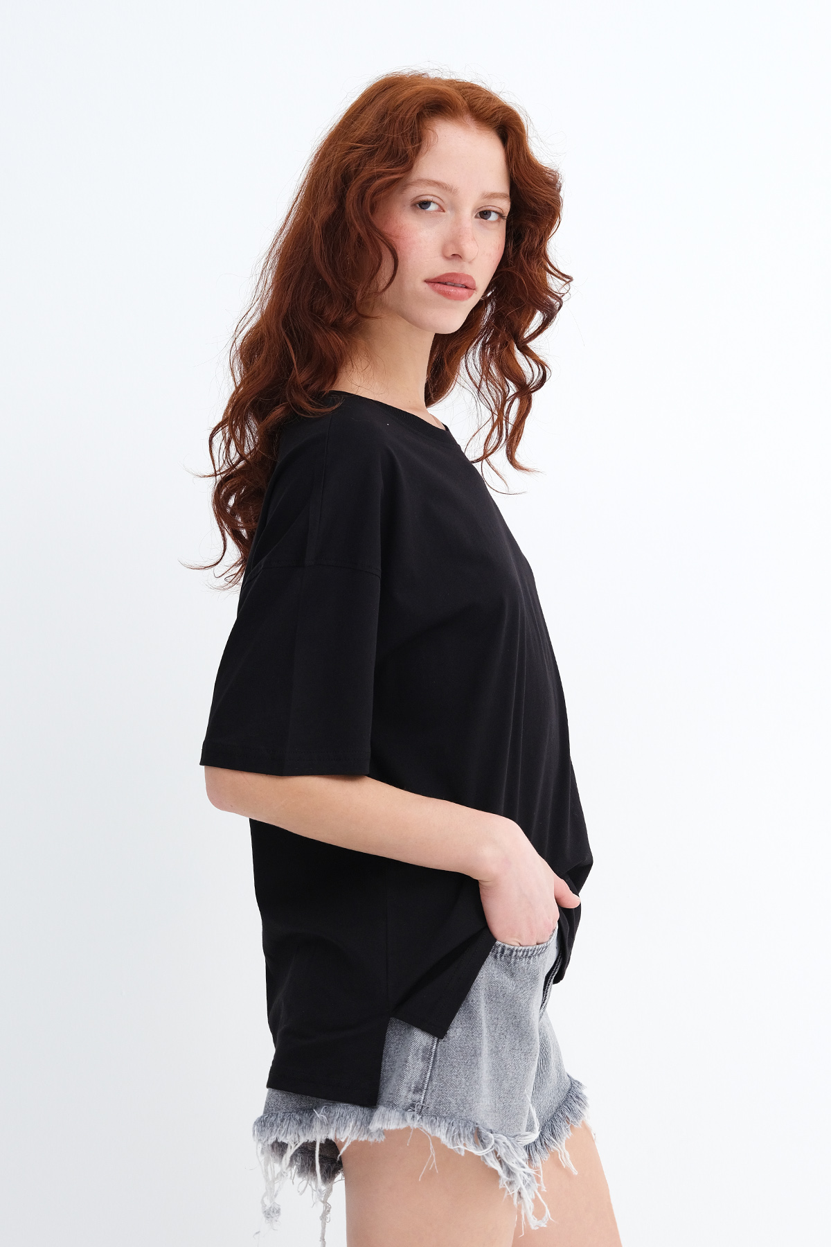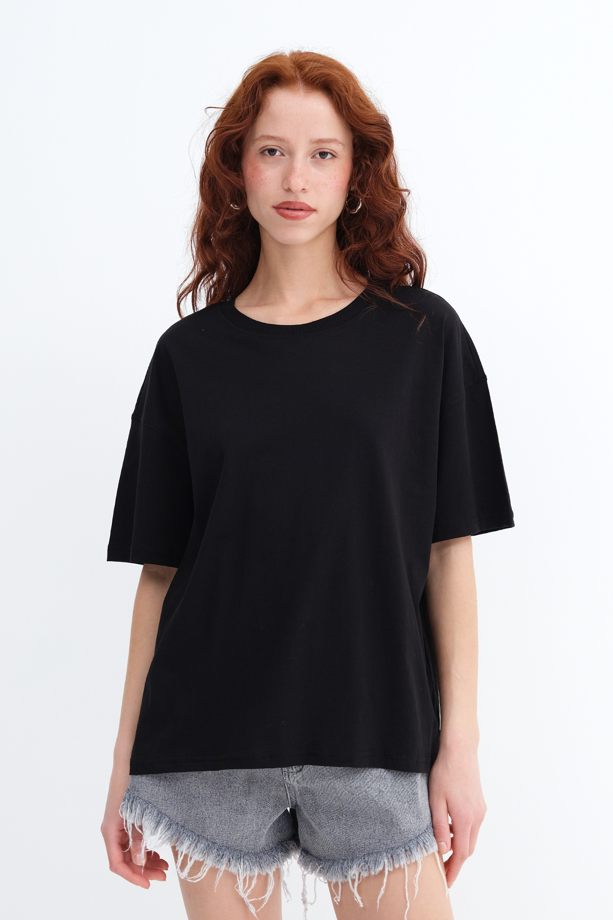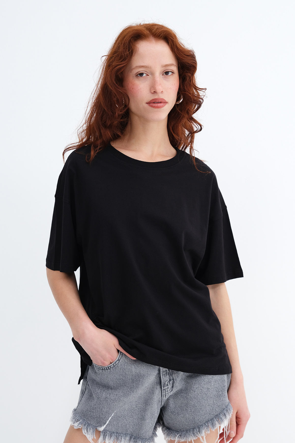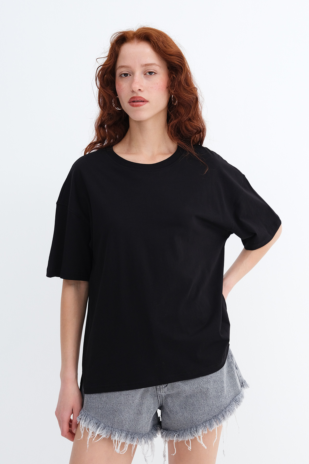 * Düz renk, rahat kalıp t-shirt,