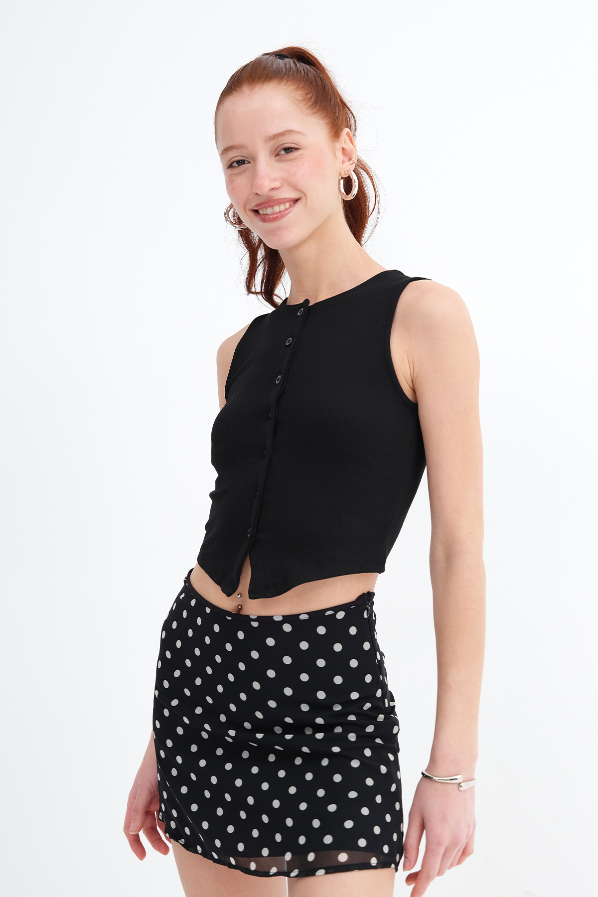 * Düğmeli, vücudu saran yelek,