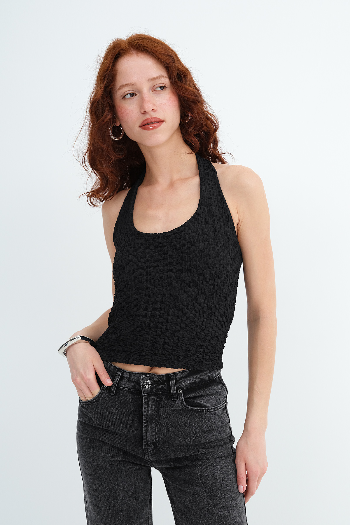 * Boyundan geçmeli, düz renk, dokulu,
