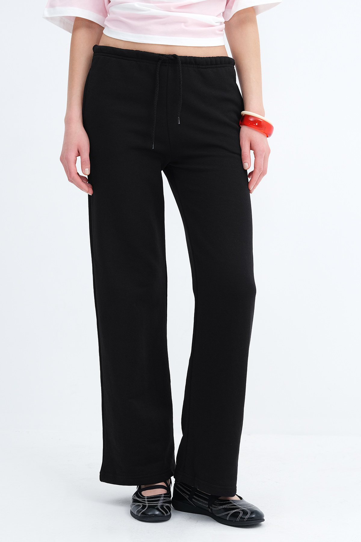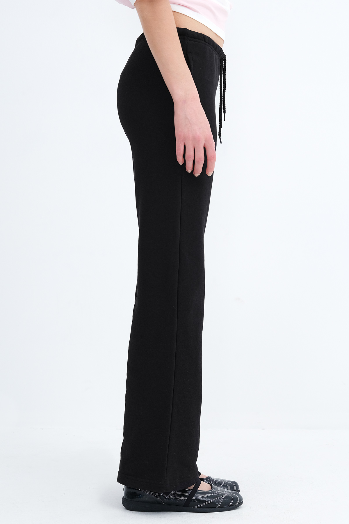 * Yandan cepli, şardonsuz wide leg eşofman,