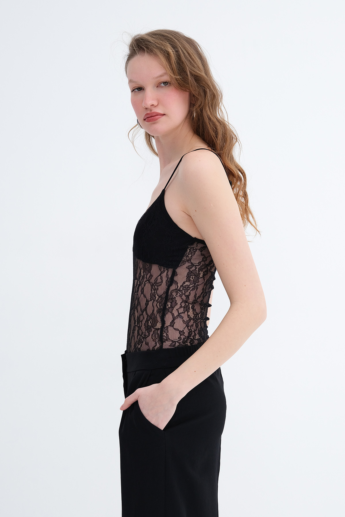 * Vücudu saran, düz renk, dantelli,