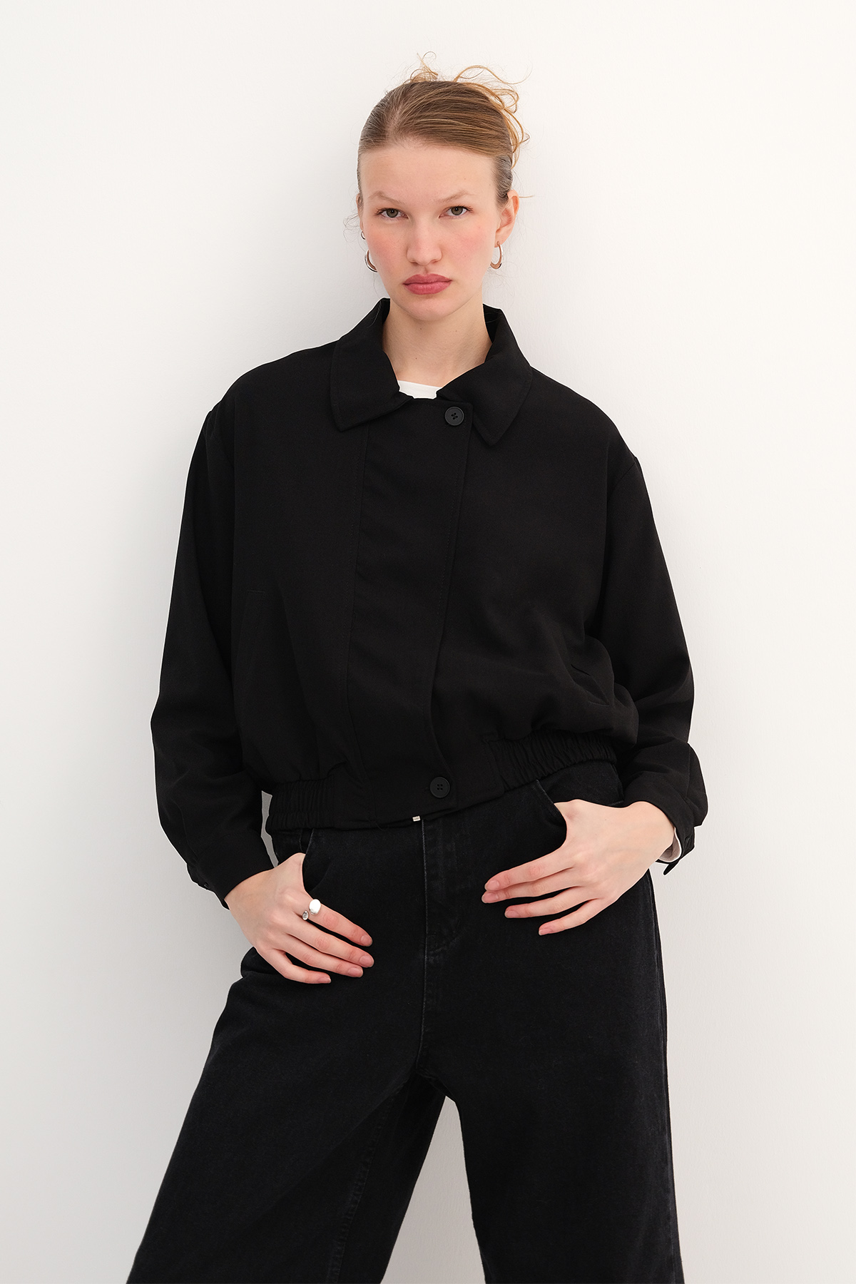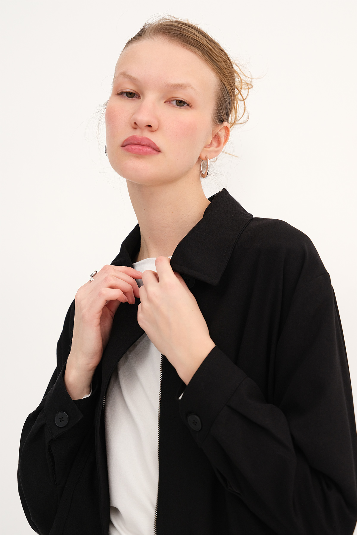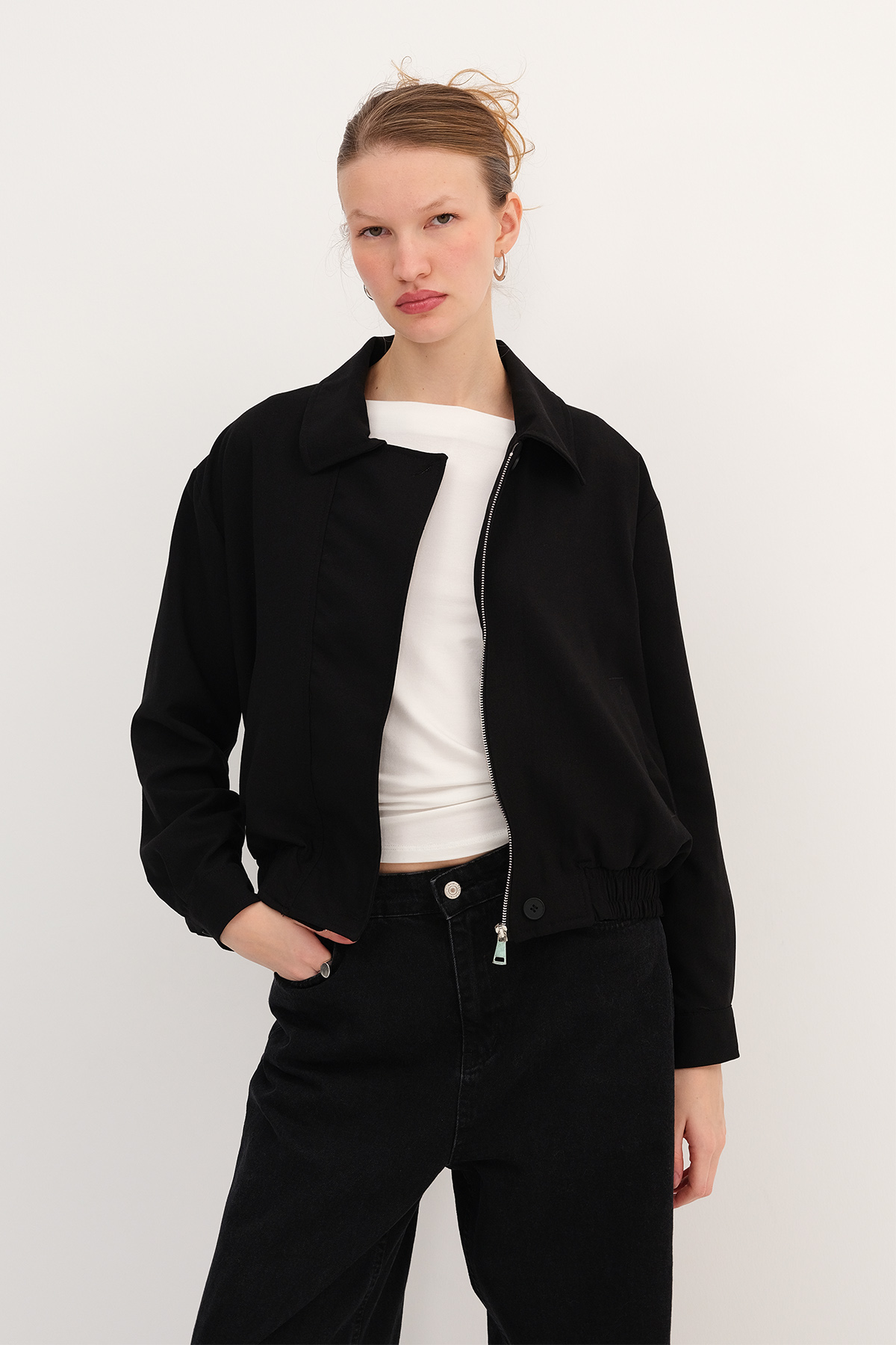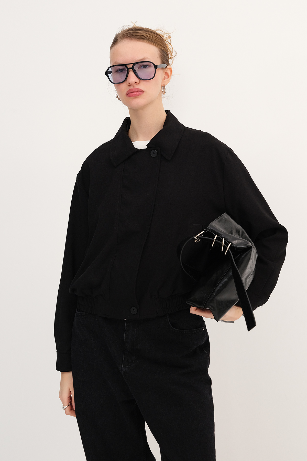 * Polo yaka, uzun kollu,* Düşük omuz, düz renk,* Fermuarlı, cepli,* Manşetleri düğmeli, etek ucu lastikli,* Astarlı, bomber ceket,* Ürün içeriği: %100 Pamuk* Manken üzerindeki ürün 36/S bedendir.* Numune beden ölçüleri: Boy: 55 cm Göğüs: 100 cm Kol boyu: 56 cm (1-3 cm değişiklik gösterebilir)* Ürün çekimlerinde renkler, ışık farklılığından dolayı değişkenlik gösterebilir.