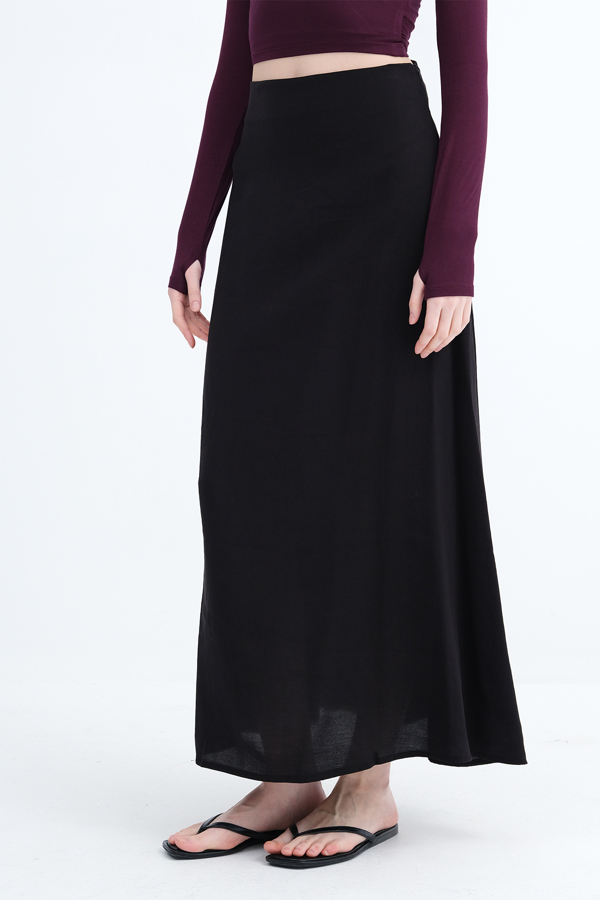 * Astarsız, düz renk, uzun etek,