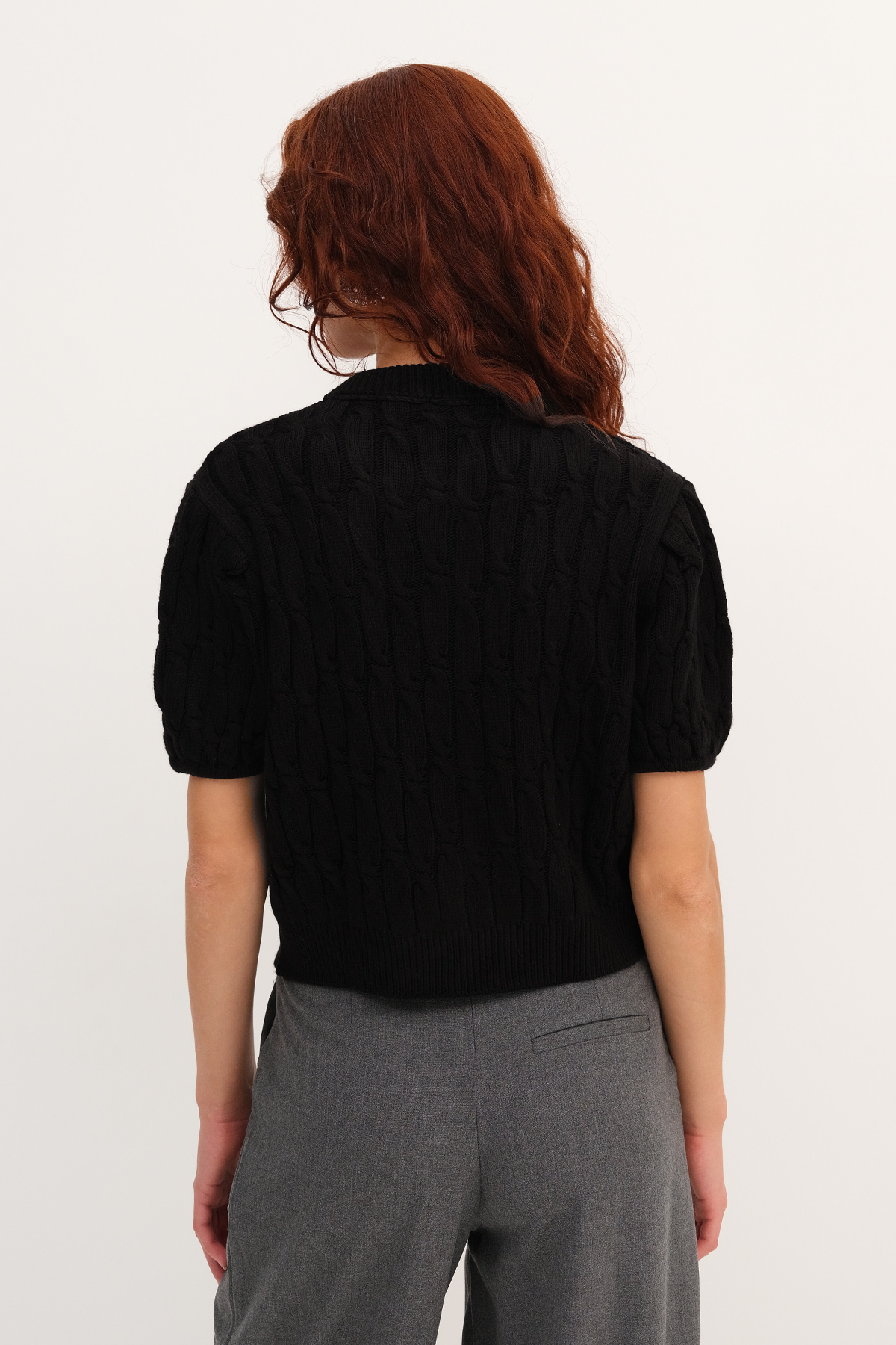 * Bisiklet yaka, balon kollu,* Saç örgülü, kurdelesi boncuklu,* Triko kazak,* Ürün içeriği: %100 Akrilik,* Manken üzerindeki ürün standart bedendir.* Numune beden ölçüleri: Boy: 50 cm Göğüs: 90 cm Kol Boyu: 21 cm (1-3 cm arasında değişiklik gösterebilir)* Ürün çekimlerinde renkler, ışık farklılığından dolayı değişkenlik gösterebilir.