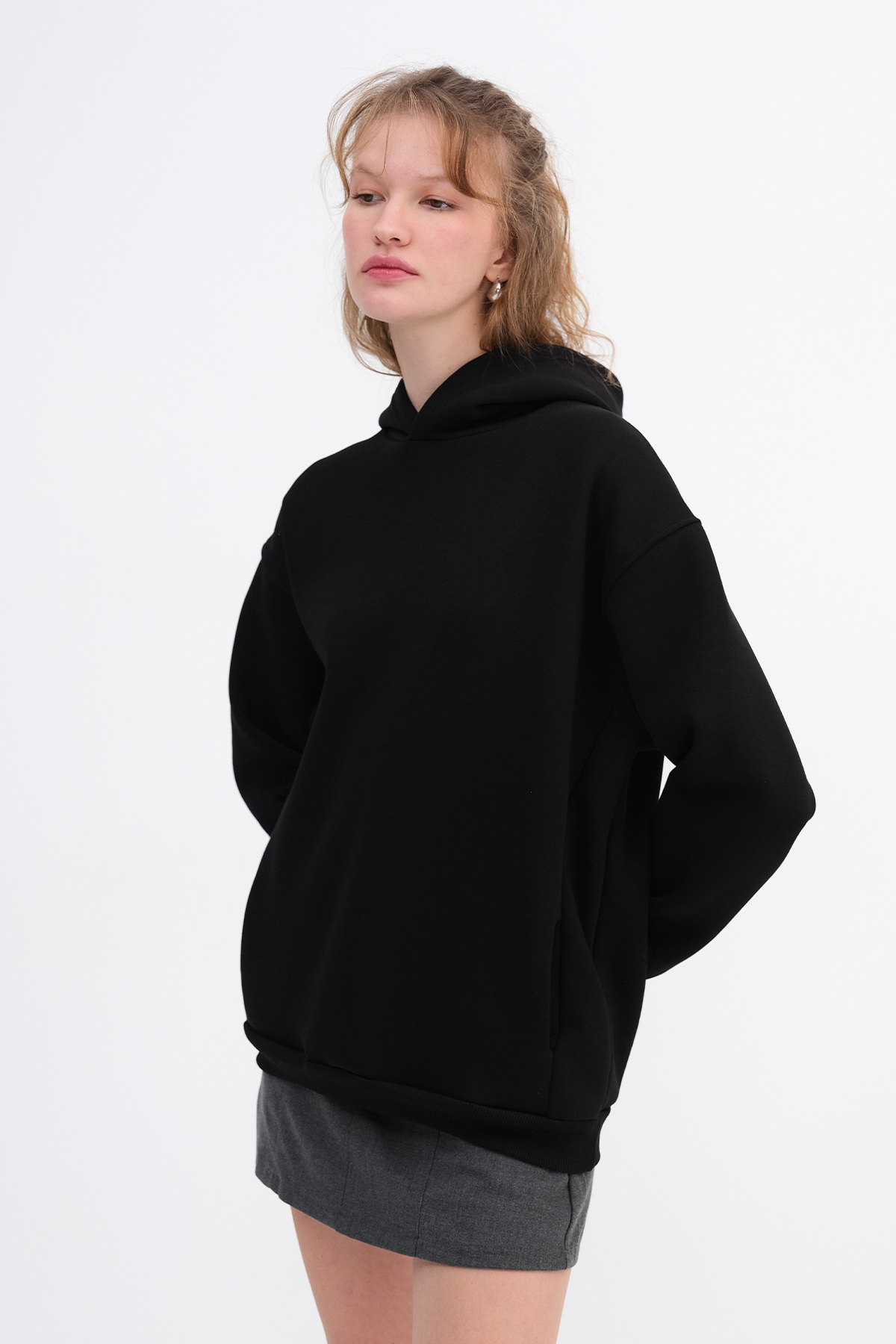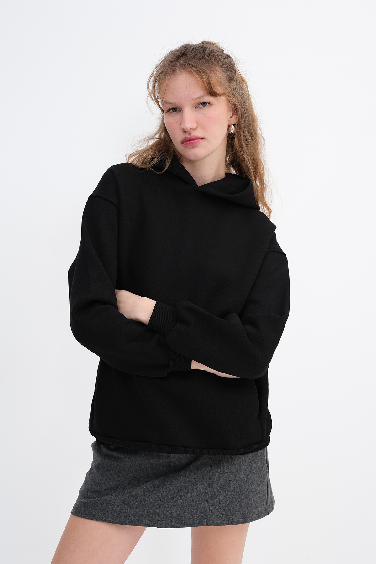 * Kapüşonlu, kapüşonu tek katlı, uzun kollu, düşük omuz,