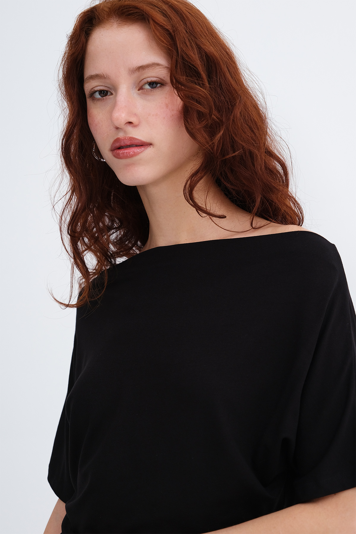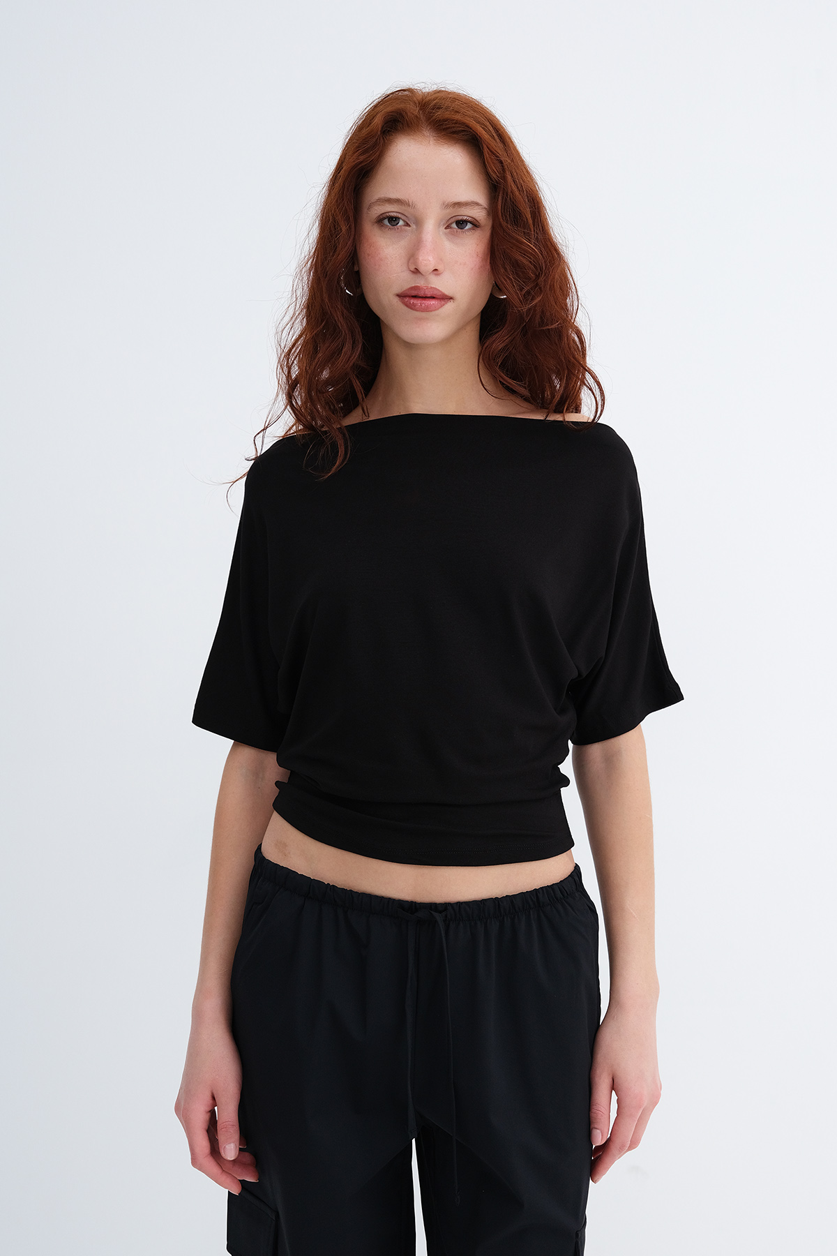 * Kayık yaka, kısa kollu,