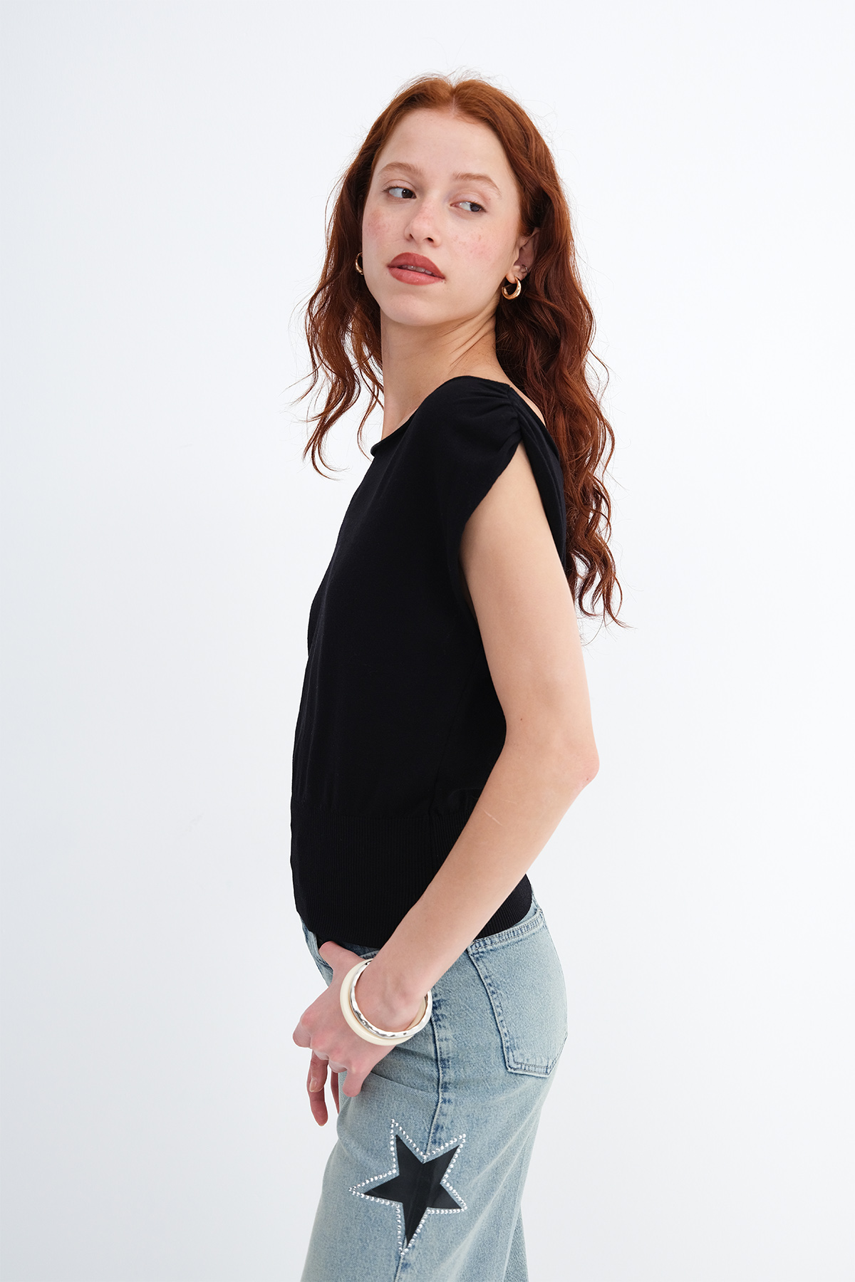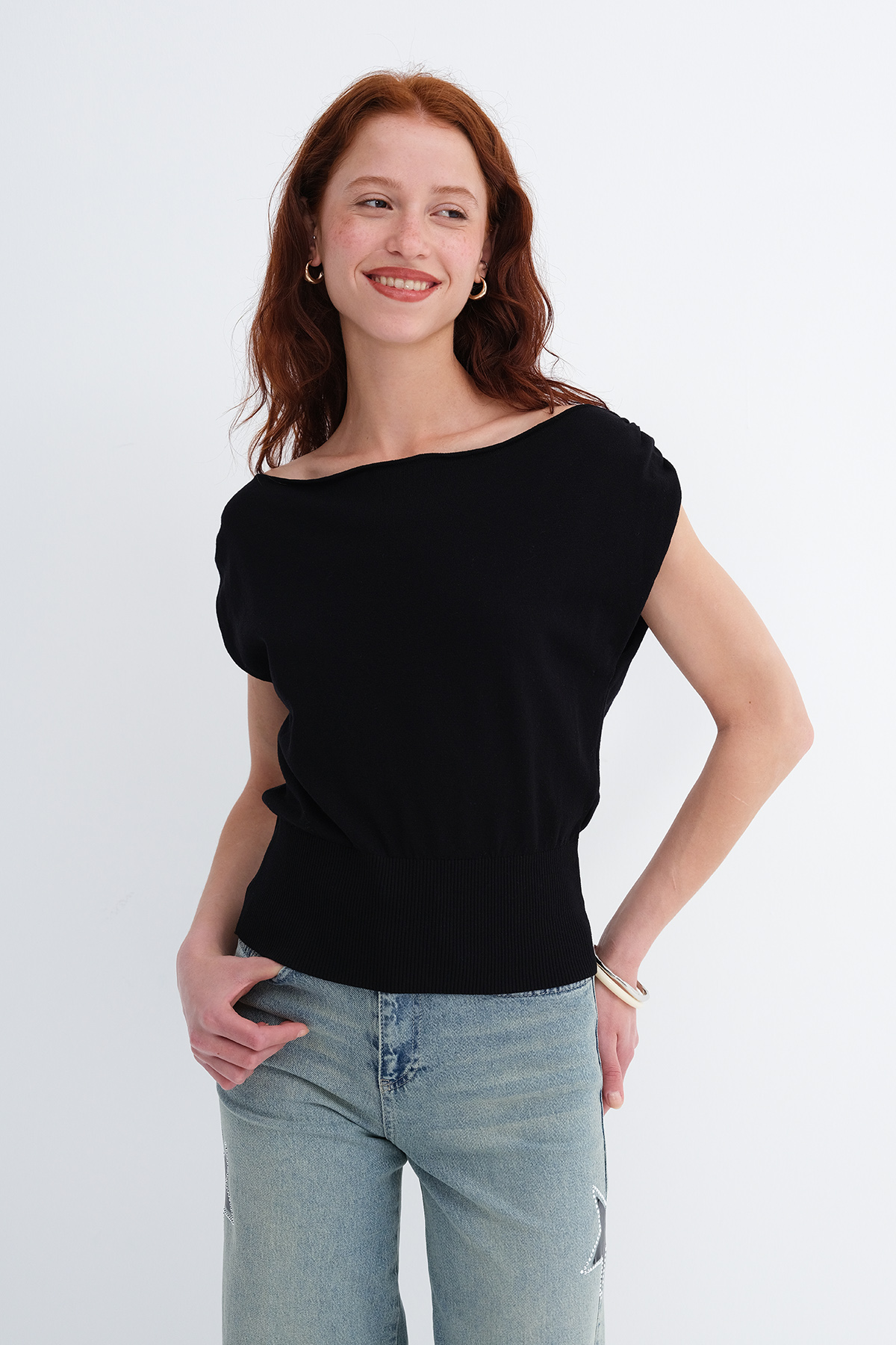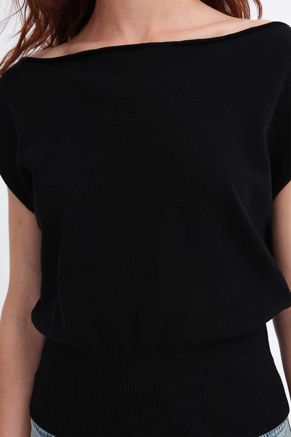 * Düz renk, triko bluz,