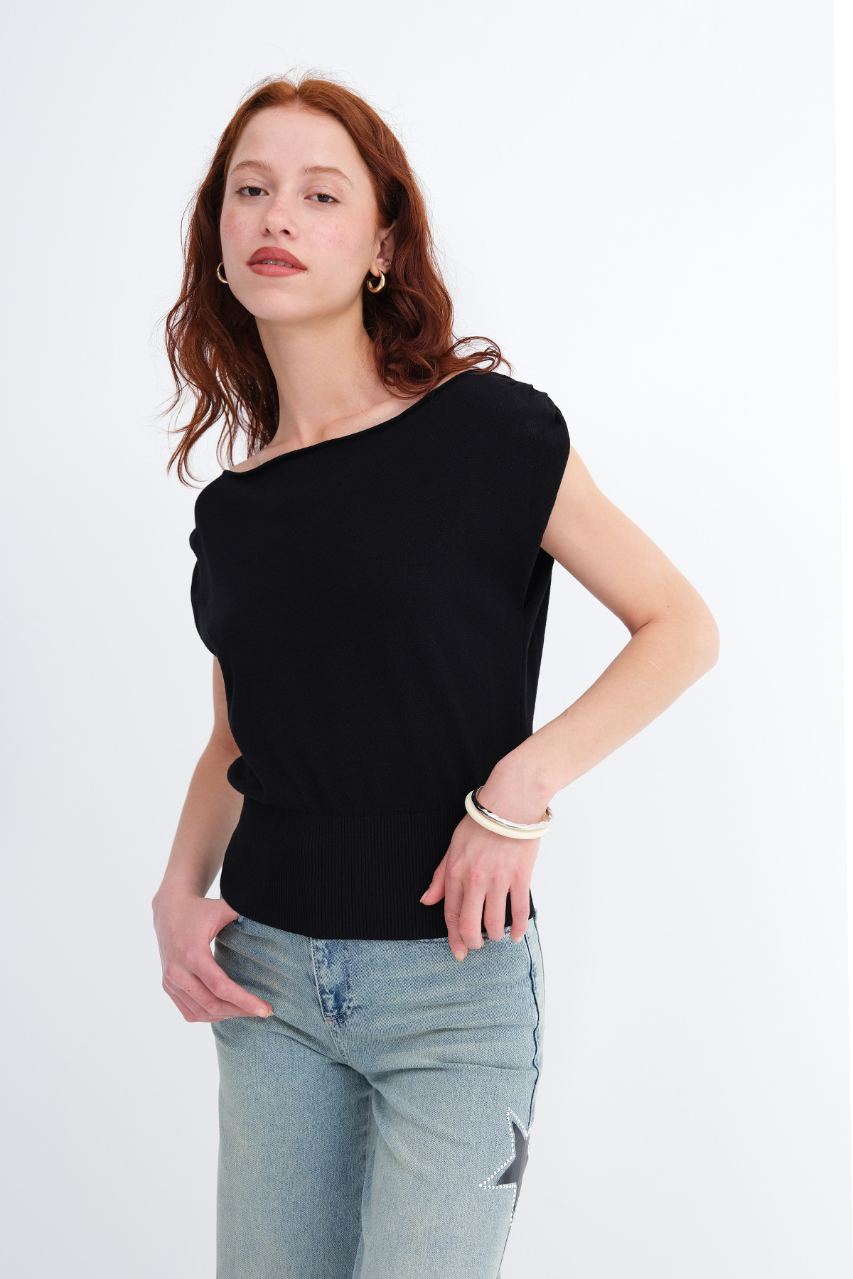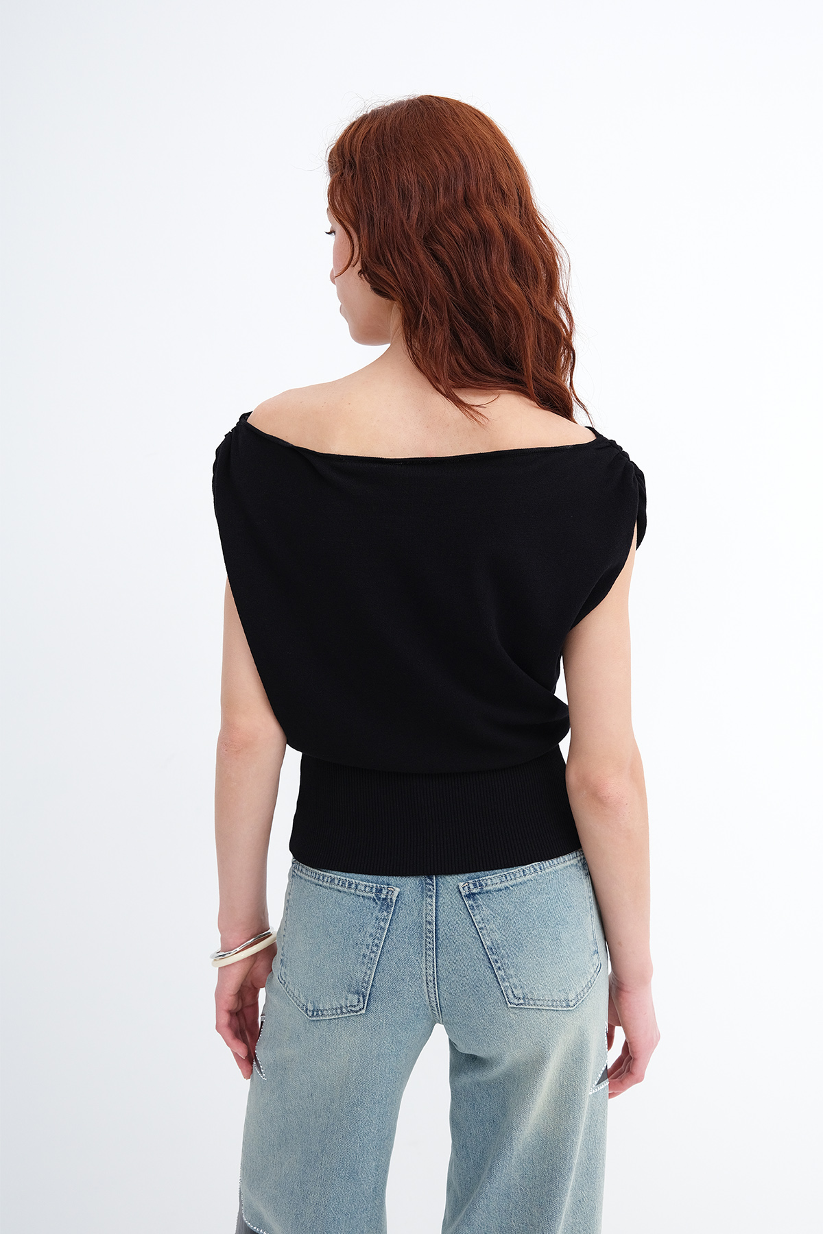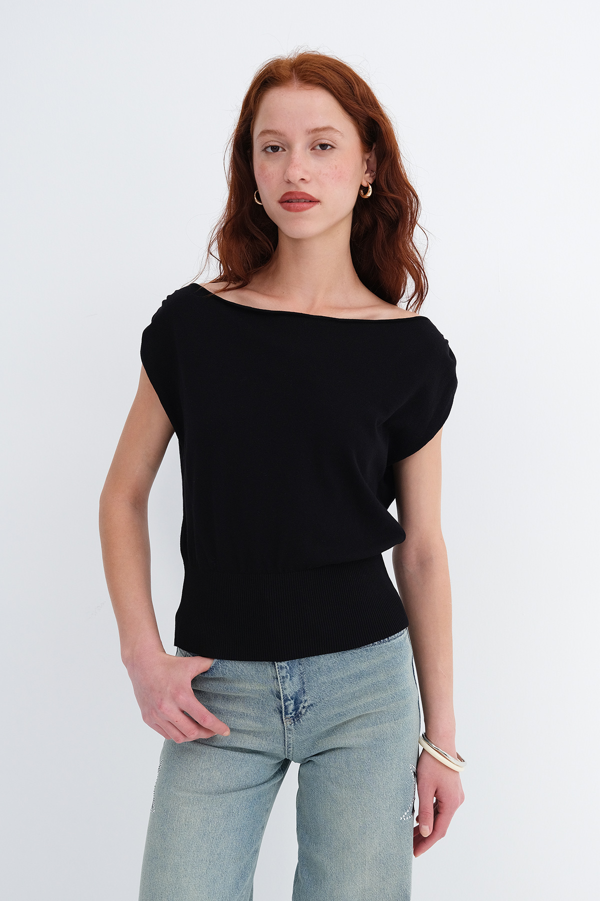* Kayık yaka, kolsuz,