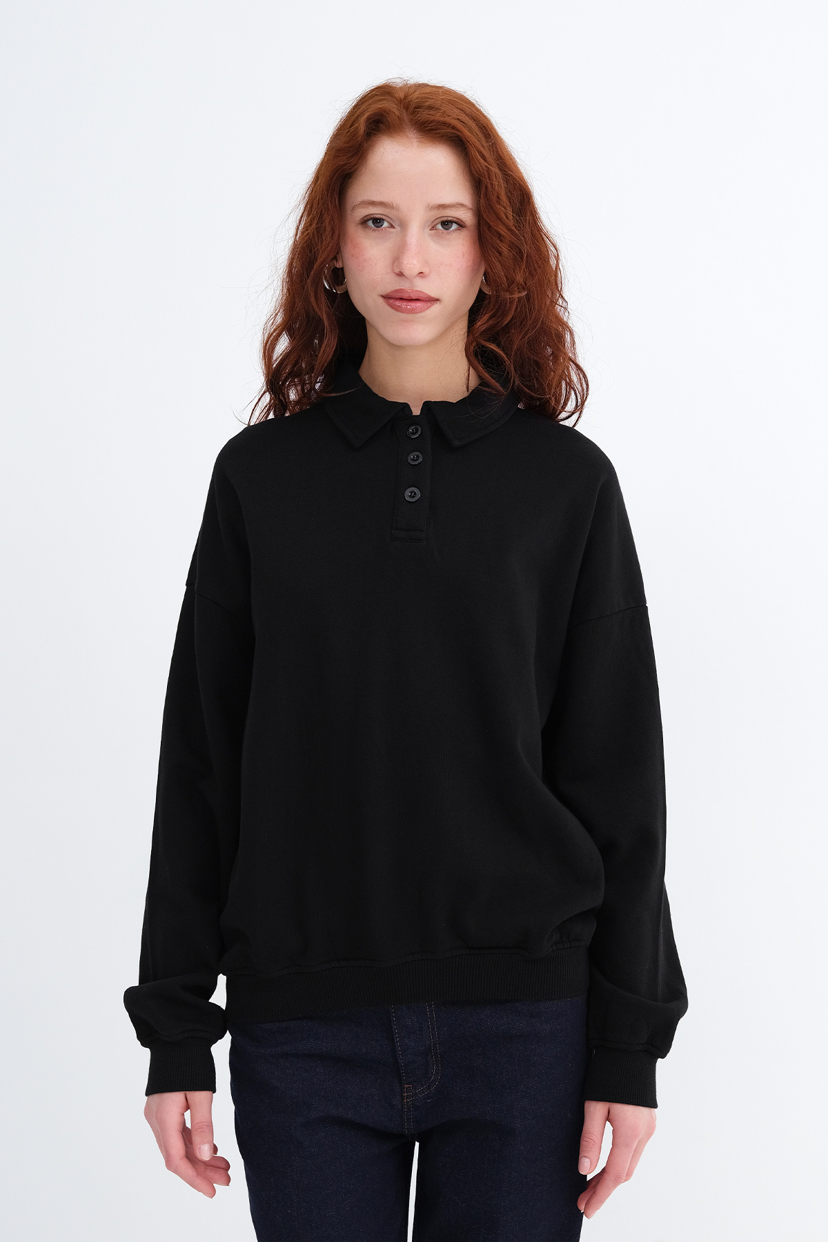 * Yakası düğmeli,şardonlu, içi yumuşak tüylü sweatshirt,