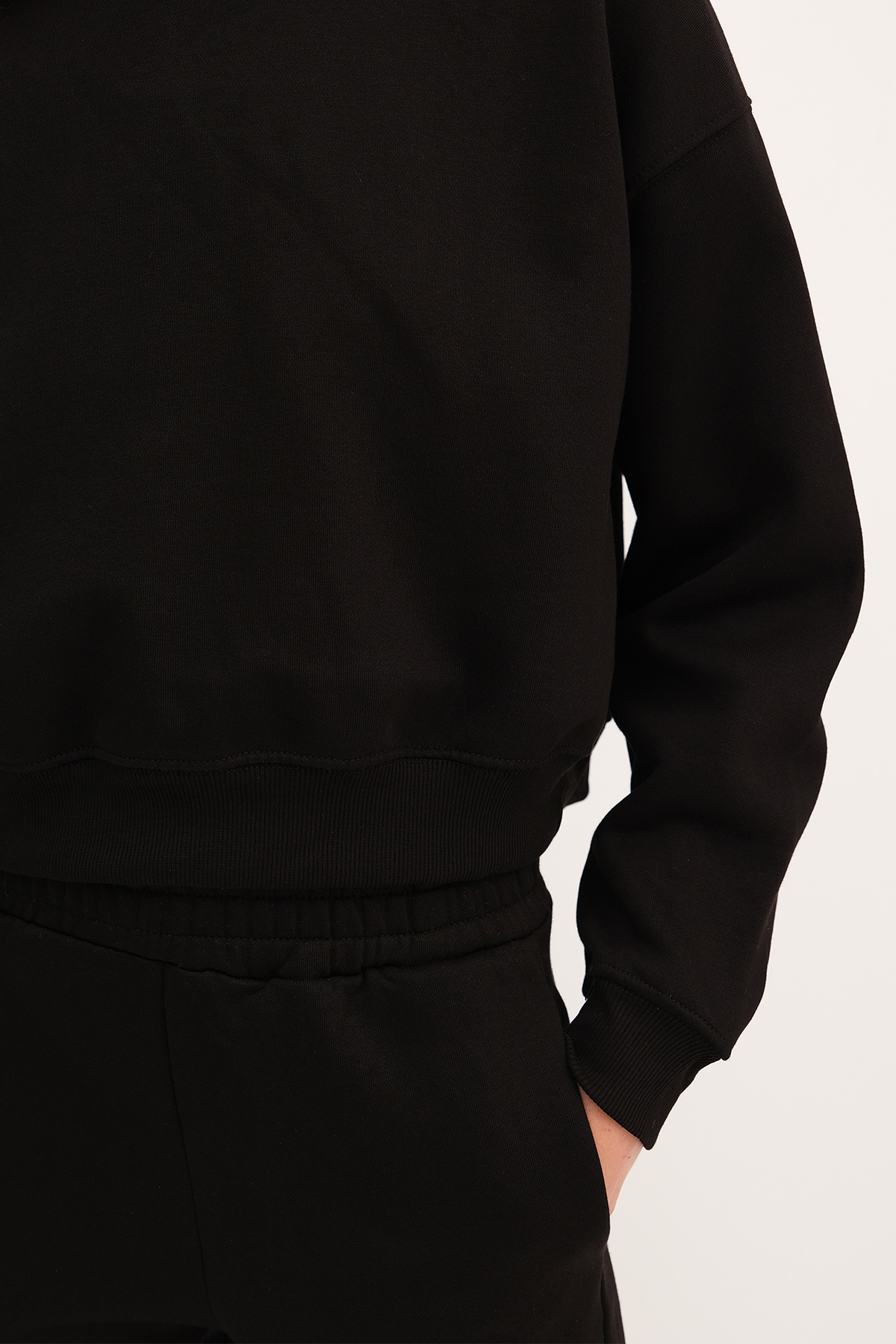 * Bisiklet yaka, uzun kollu,* Düşük omuz, düz renk,* Yakası, manşetleri ve etek ucu ribanalı,* Normal bel, beli lastikli, yandan cepli,* Wide leg, paçası lazer kesim,* Şardonlu, içi yumuşak tüylü alt-üst takım,* Ürün içeriği: %55 Pamuk %45 Polyester* Manken üzerindeki ürün 36/S bedendir.* Numune beden ölçüleri: Üst boy: 50 cm Göğüs: 100 cm Kol boyu: 52 cm* Alt boy: 105 cm Bel: 60 cm* Basen: 100 cm İç bacak boyu: 76 cm (1-3 cm değişiklik gösterebilir)* Ürün çekimlerinde renkler, ışık farklılığından dolayı değişkenlik gösterebilir.