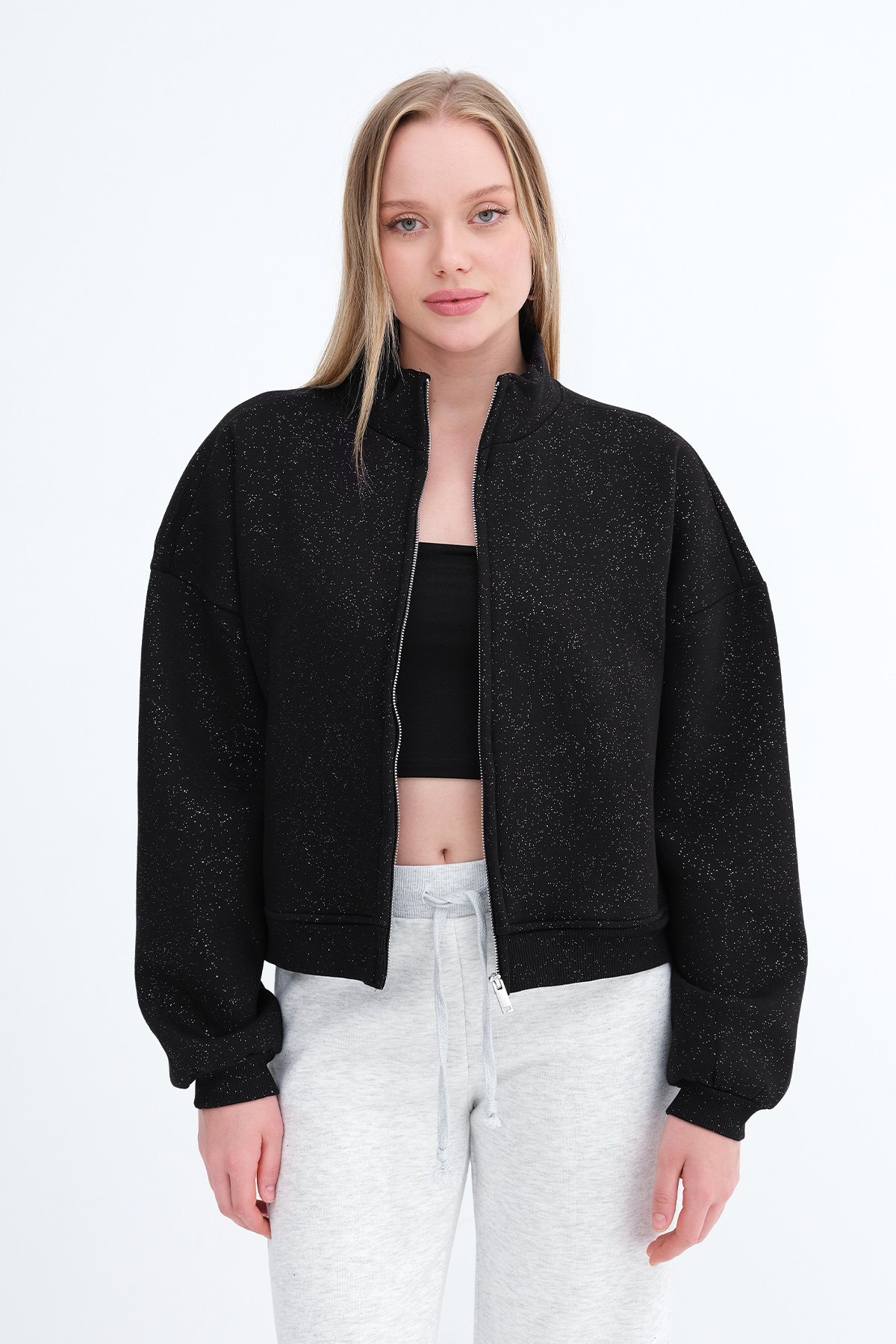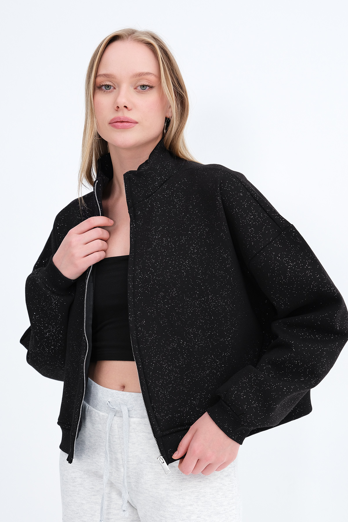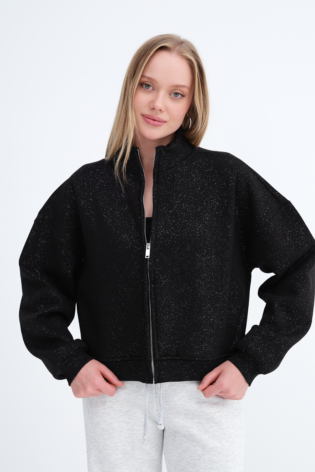 * Şardonlu, fermuarlı sweatshirt,