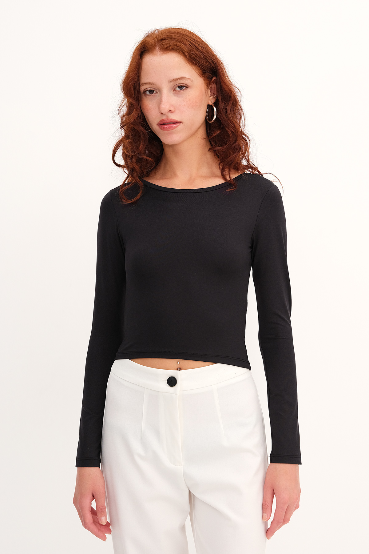 * Bisiklet yaka, uzun kollu,* Düz renk, sırt dekolteli,* Crop bluz,* Ürün içeriği: %94 polyamide %6 Elastan* Manken üzerindeki ürün 36/S bedendir.* Numune beden ölçüleri: Boy: 40 cm Göğüs: 64 cm Kol boyu: 59 cm (1-3 cm değişiklik gösterebilir)* Ürün çekimlerinde renkler, ışık farklılığından dolayı değişkenlik gösterebilir.