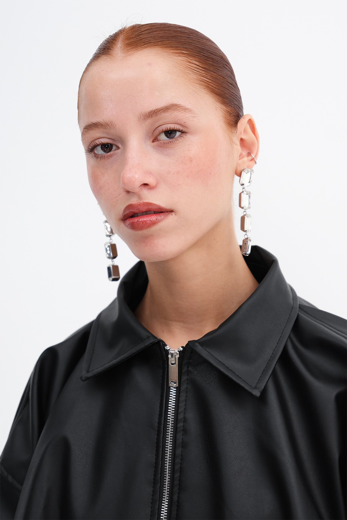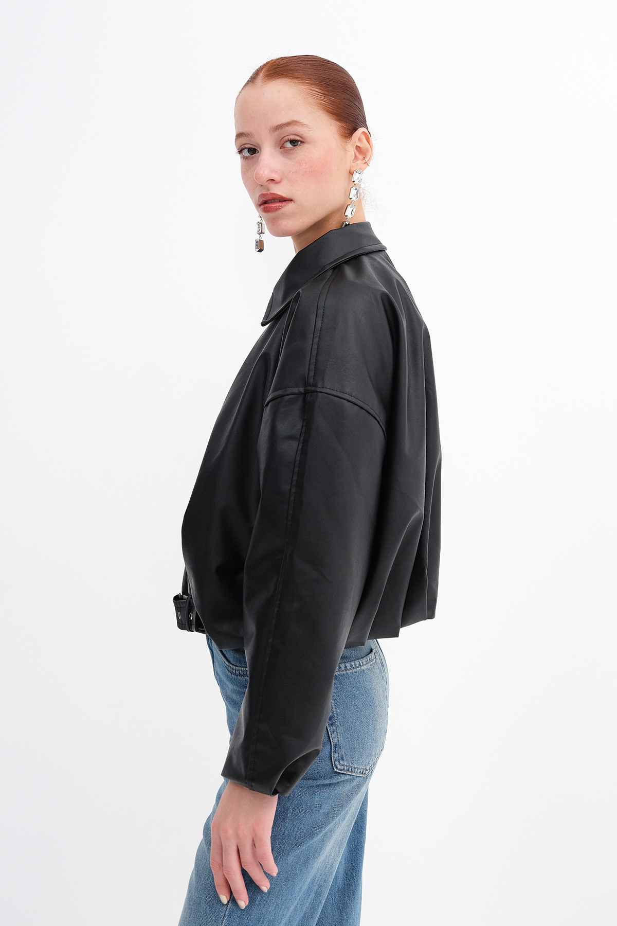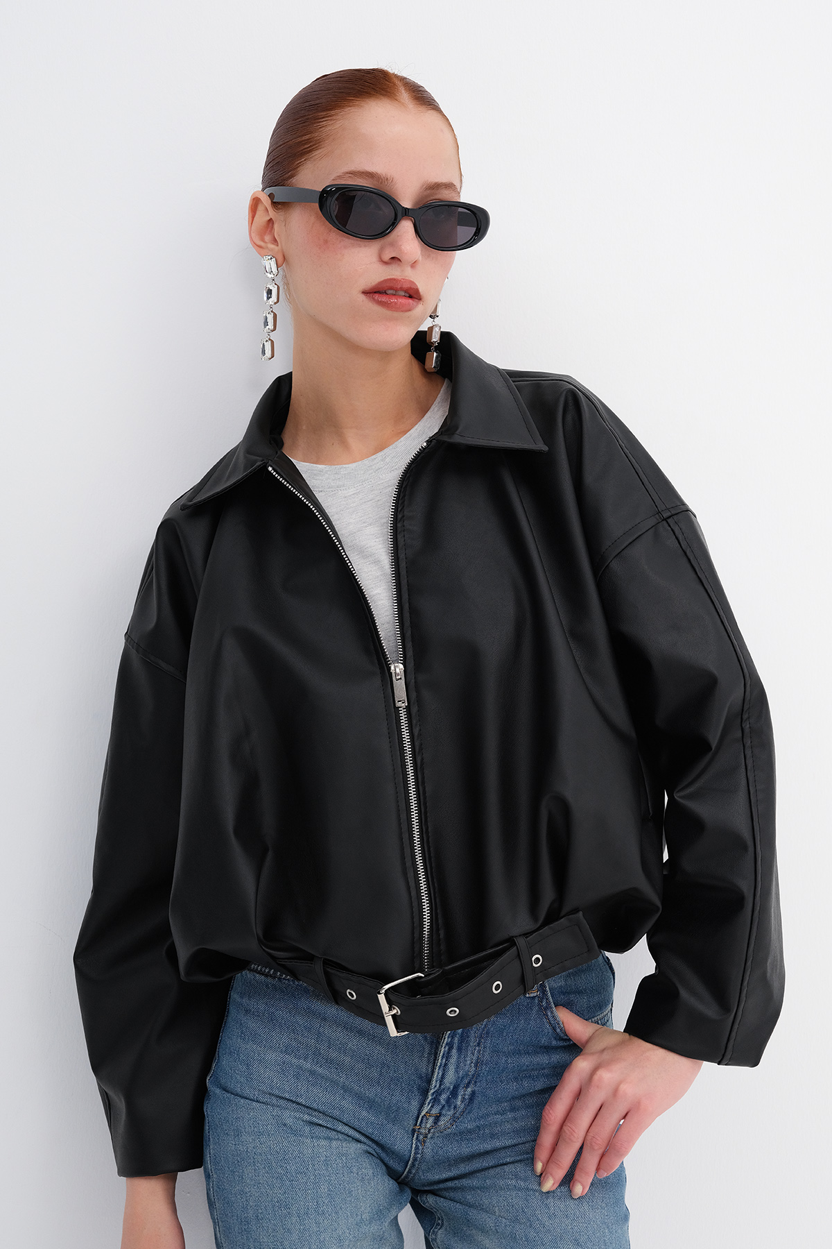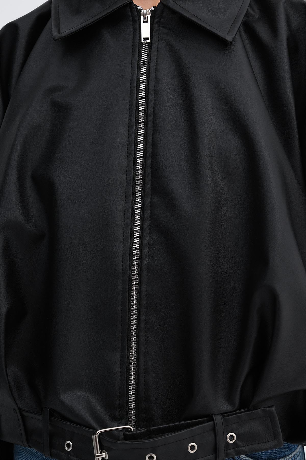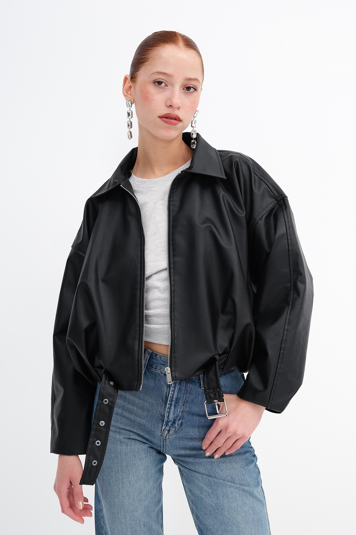 * Fermuarlı, beli kemerli, uzun kollu, düşük omuz,