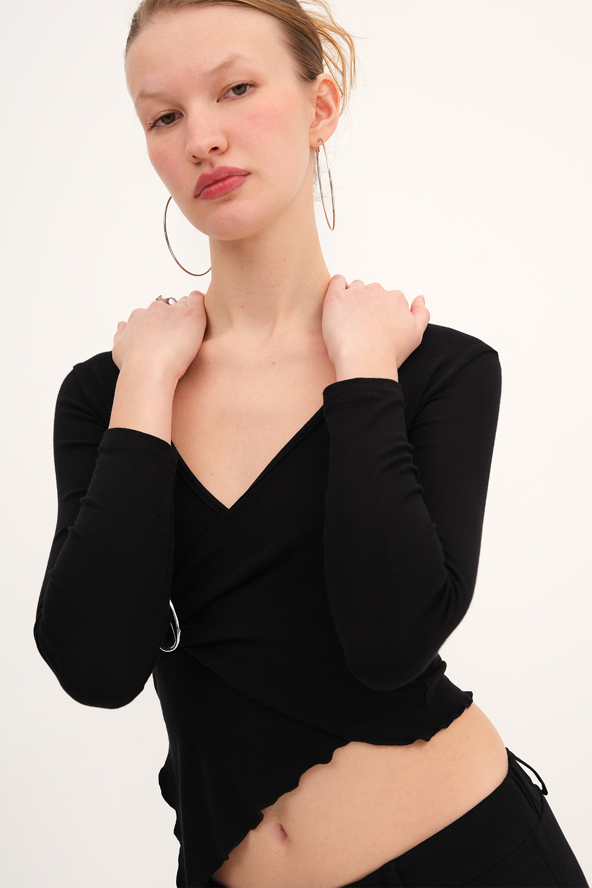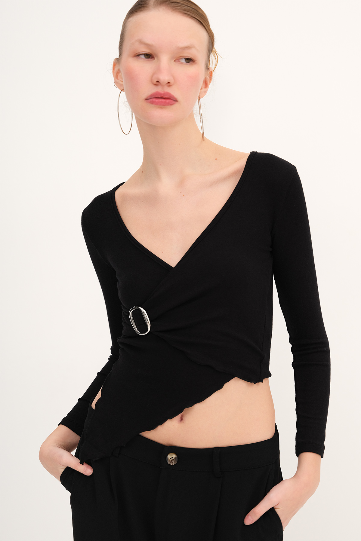* V yaka, uzun kollu,* Toka detaylı, düz renk,* Vücudu saran, crop bluz,* Ürün içeriği:%96 Viskon %4 Elastan,* Manken üzerindeki ürün 36/S bedendir.* Numune Beden Ölçüleri: Boy: 40 cm Göğüs: 70 cm Kol Boyu: 50 cm (1-3 cm arasında değişiklik gösterebilir)* Ürün çekimlerinde renkler, ışık farklılığından dolayı değişkenlik gösterebilir.