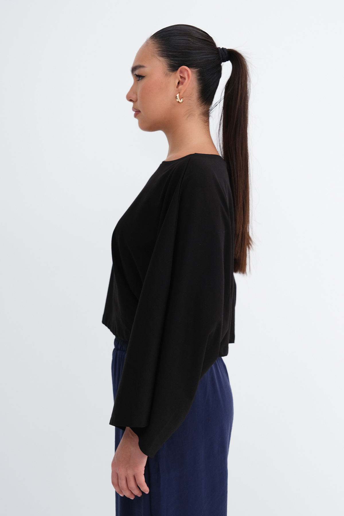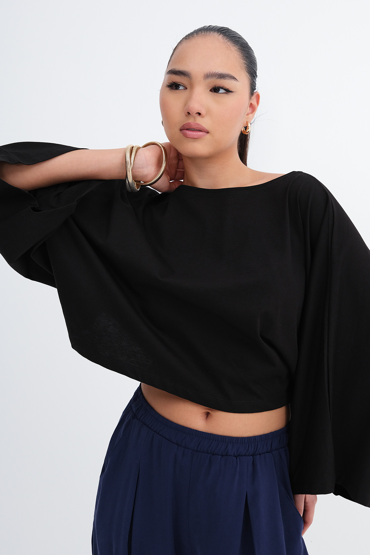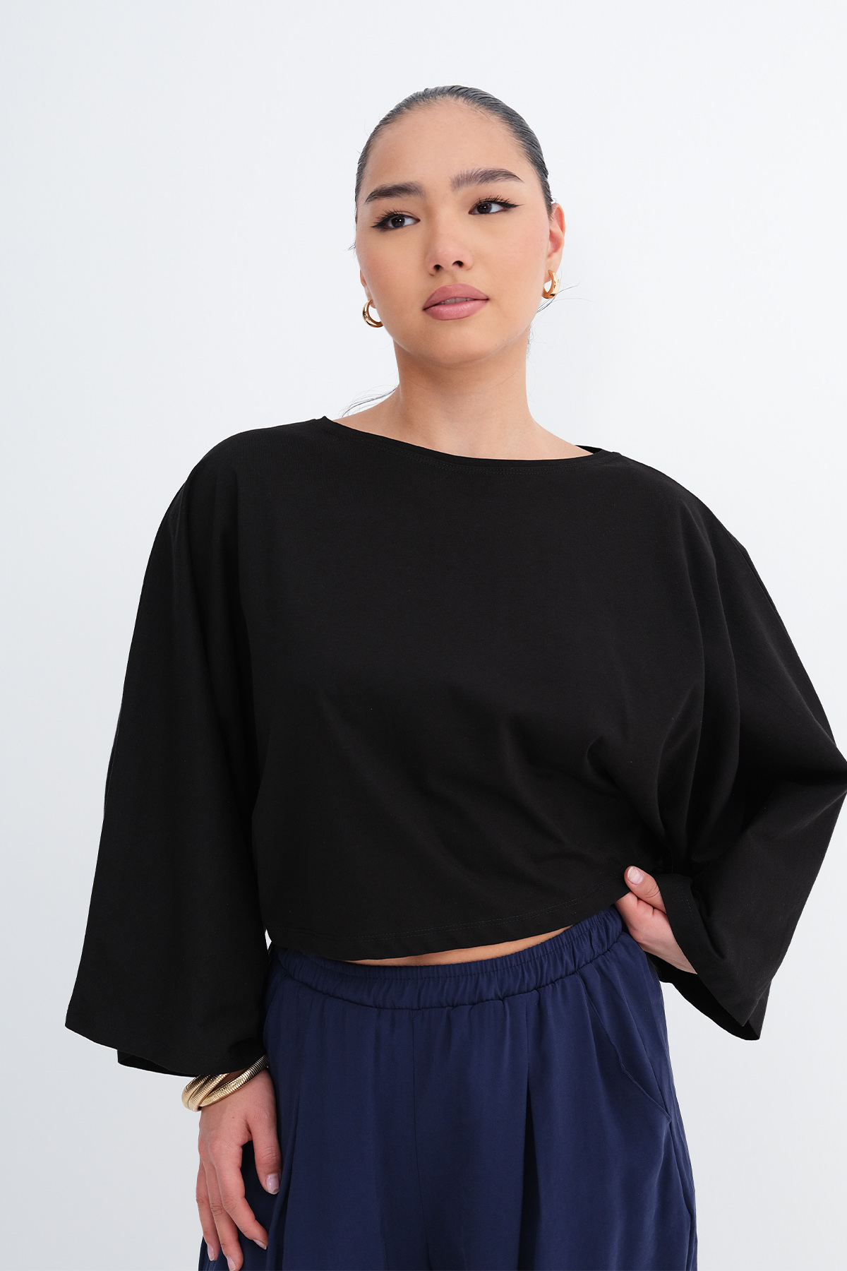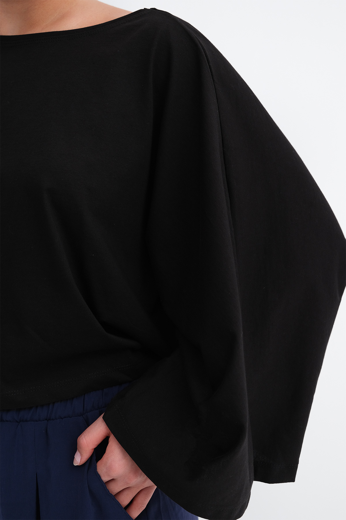 * Bisiklet yaka, uzun kollu, düşük omuz,
