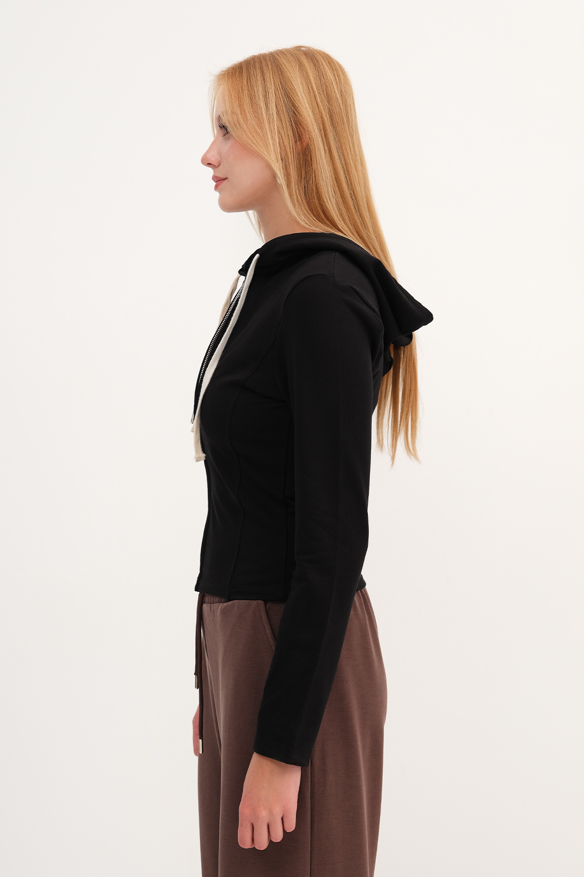 * Kapüşonlu, ayarlanabilir büzgü ipli,* Fermuarlı, uzun kollu, düz renk,* Cepsiz, vücudu saran hırka,* Ürün içeriği: %96 pamuk %4 Elastan* Manken üzerindeki ürün 36/S bedendir.* Numune beden ölçüleri: Boy: 47 cm Göğüs: 70 cm Kol boyu: 58 cm (1-3 cm değişiklik gösterebilir)* Ürün çekimlerinde renkler, ışık farklılığından dolayı değişkenlik gösterebilir.