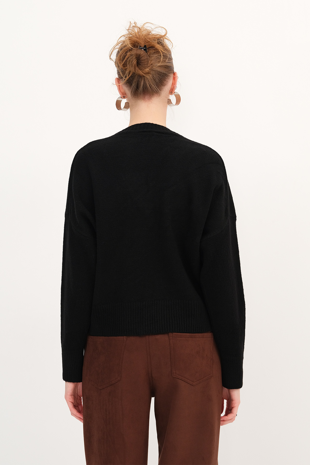 * V yaka, uzun kollu,* Manşetleri ve etek ucu lastik örgülü,* Düz renk, triko kazak,* Ürün içeriği: %49 Akrilik %32 Polyester %16 Naylon %3 Elastan* Manken üzerindeki ürün standart bedendir.* Numune Beden Ölçüleri: Boy: 55 cm Göğüs: 120 cm Kol Boyu: 43 cm (1-3 cm arasında değişiklik gösterebilir)* Ürün çekimlerinde renkler, ışık farklılığından dolayı değişkenlik gösterebilir.