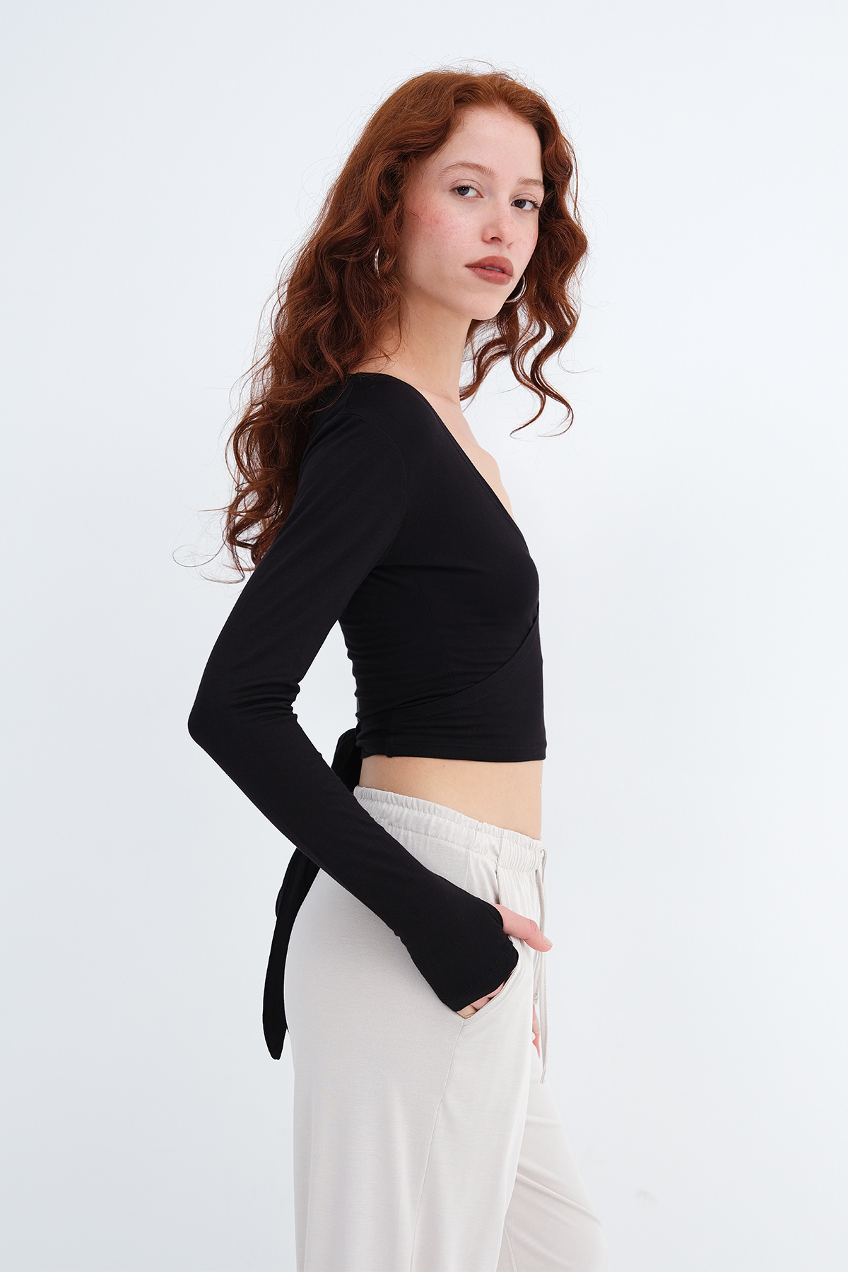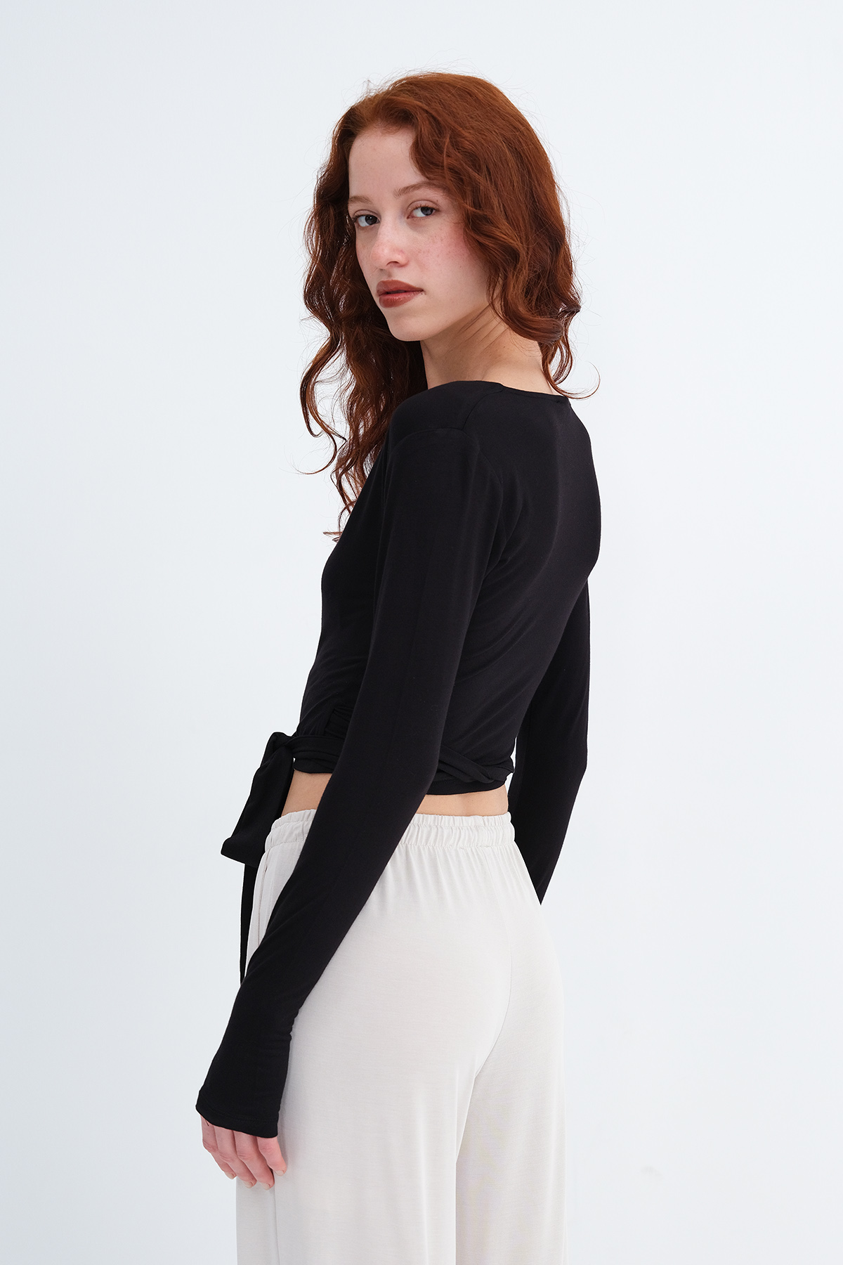 * Düz renk, yandan bağlamalı bluz,