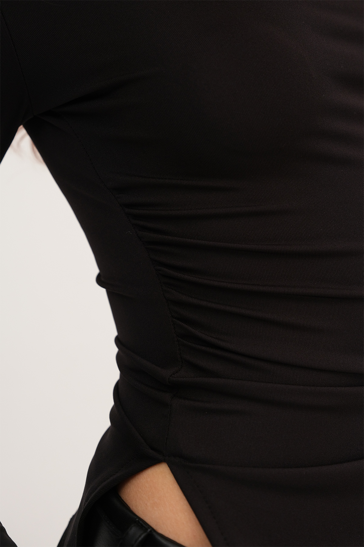 * Kayık yaka, uzun kollu,* Yanı büzgülü, asimetrik kesim,* Düz renk, vücudu saran bluz,* Ürün içeriği: %94 Polyester %6 Elastan,* Manken üzerindeki ürün 36/S bedendir.* Numune Beden Ölçüleri: Boy: 55 cm Göğüs: 56 cm Kol Boyu: 55 cm (1-3 cm arasında değişiklik gösterebilir)* Ürün çekimlerinde renkler, ışık farklılığından dolayı değişkenlik gösterebilir.
